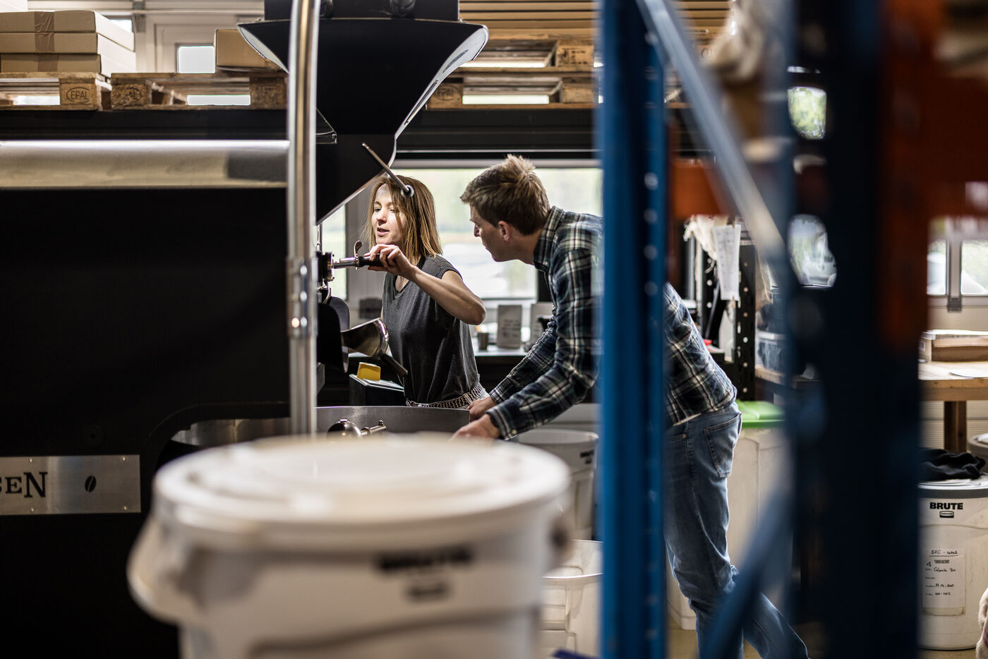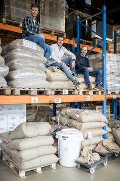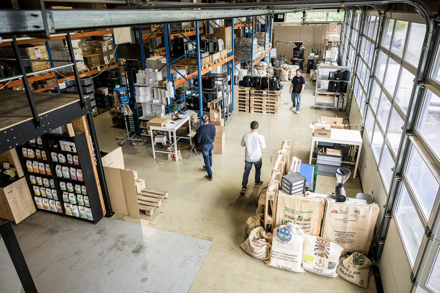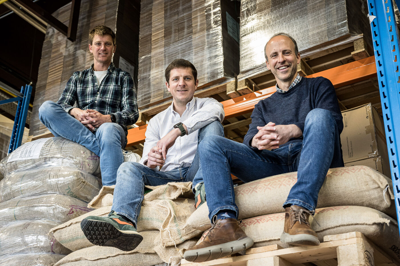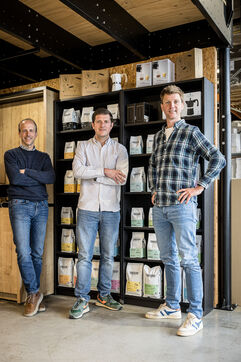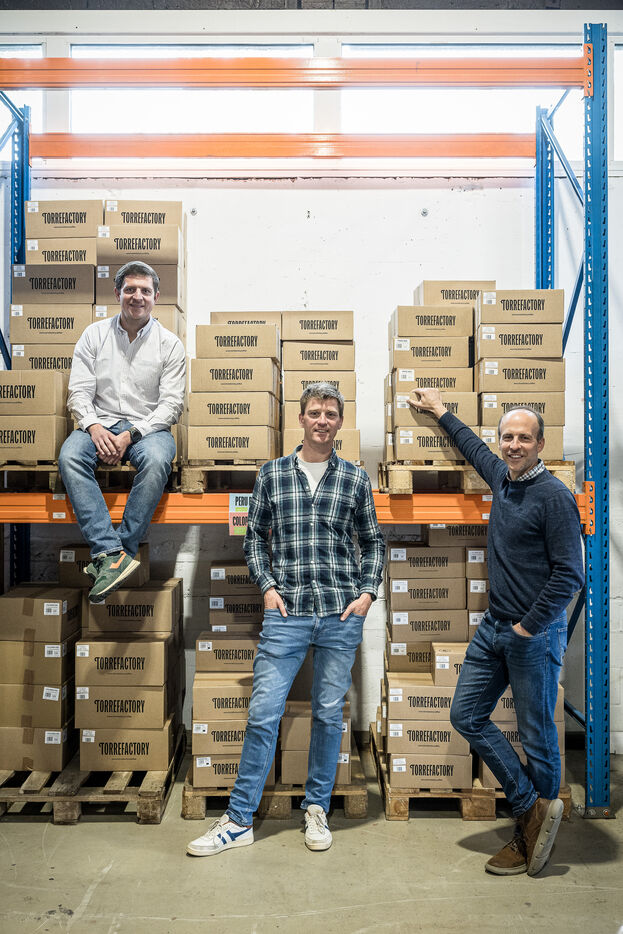 Portrait de Florent Henry, Arthur Lhoist et Laurent-Emmanuel Dubuc de l entreprise Torrefactory a Mont-Saint-Guibert, Belgique, 23 Avril 2025.
