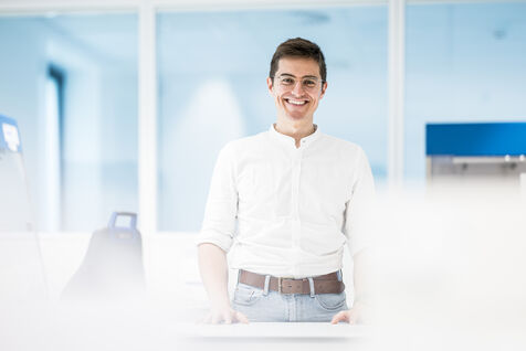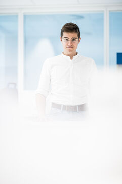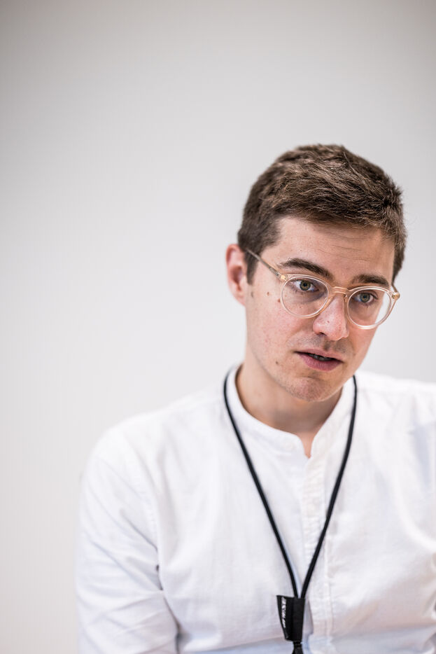 Portrait de Celestin De Wergifosse dans les laboratoires de l entreprise Signatur BioSciences dont il est le CEO, a Liege, Belgium, 21 Mai, 2025.