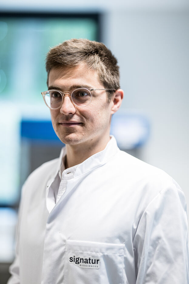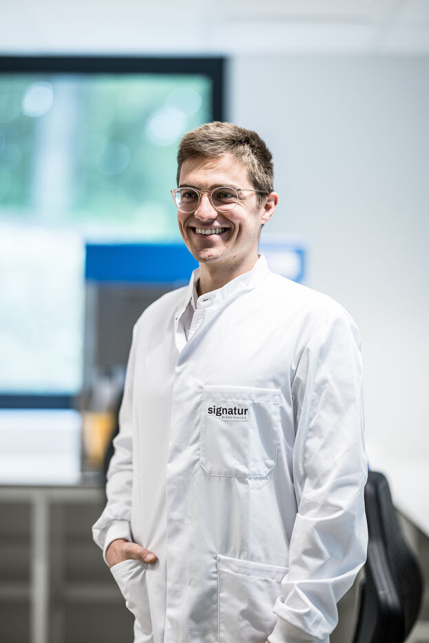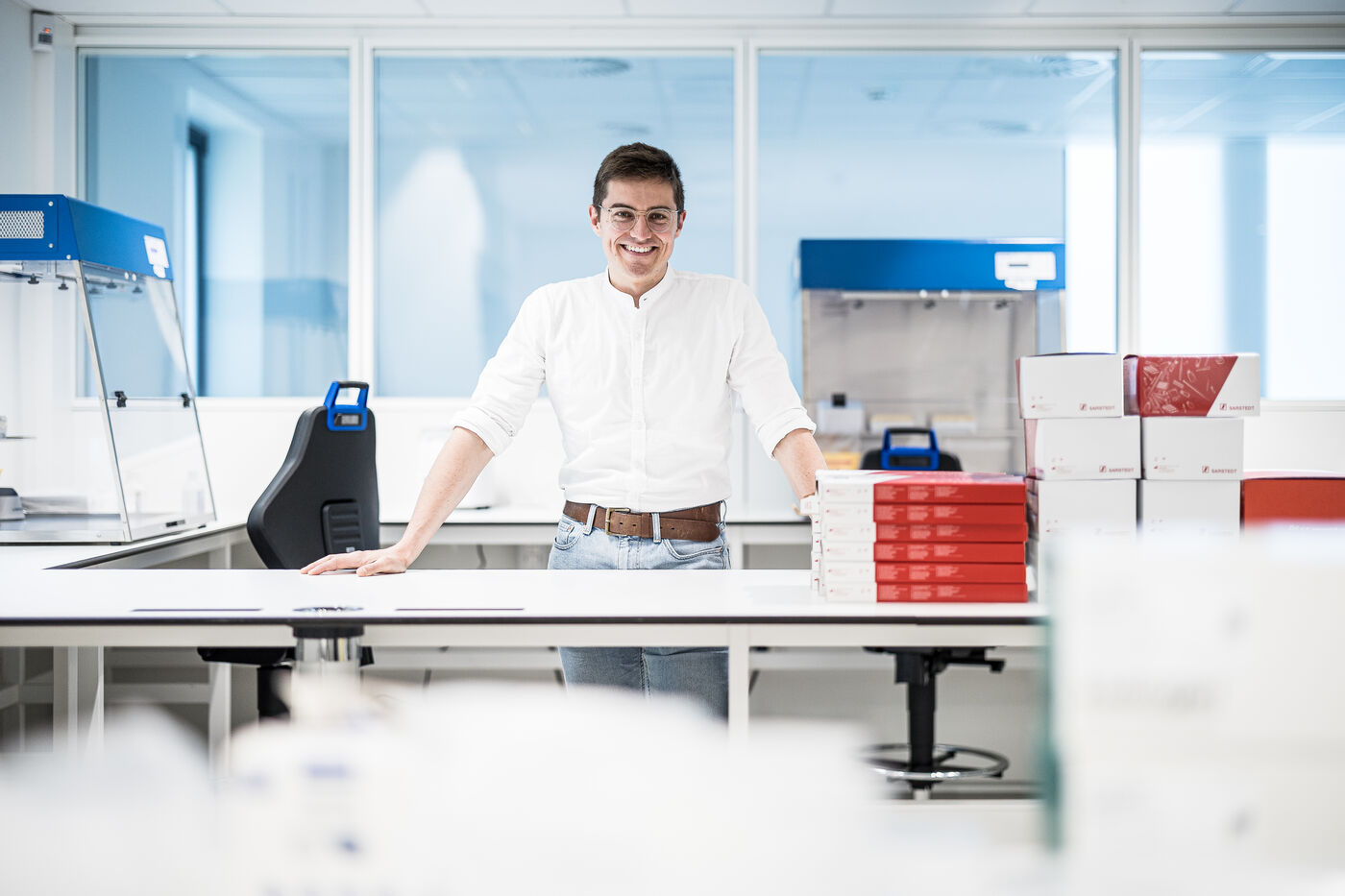Portrait of Celestin De Wergifosse in the laboratories of Signatur BioSciences, the company of which he is CEO, in Liege, Belgium, May 21, 2025.