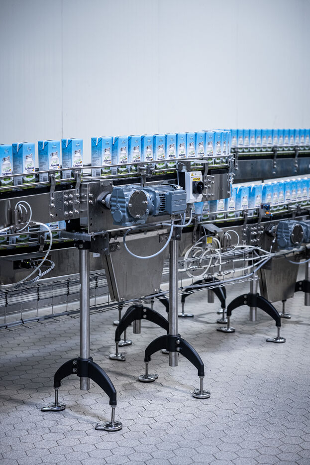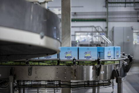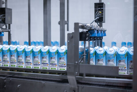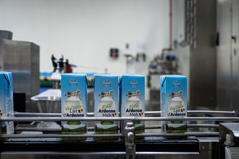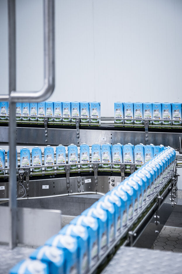 L entreprise Solarec, specialisee dans la production de lait et de beurre, utilise uniquement du lait provenant de Wallonie a Recogne, Belgique, 9 Juillet 2025.