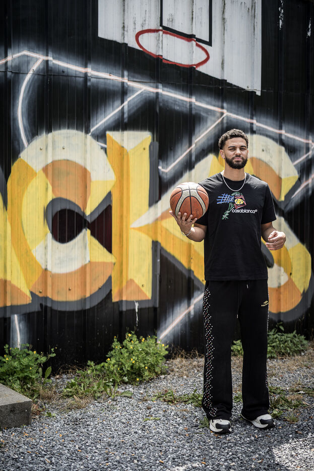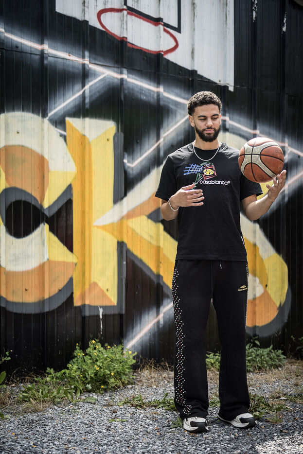 Portrait d Ajay Mitchell, basketteur belge de l equipe NBA des Oklahoma City Thunder, a Ans, Belgique, 30 Juillet 2025.