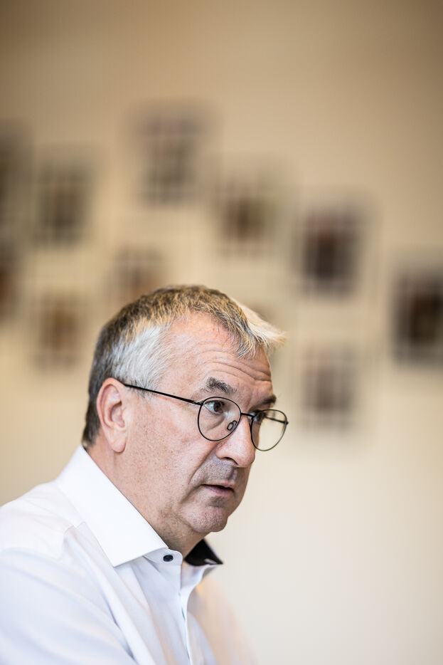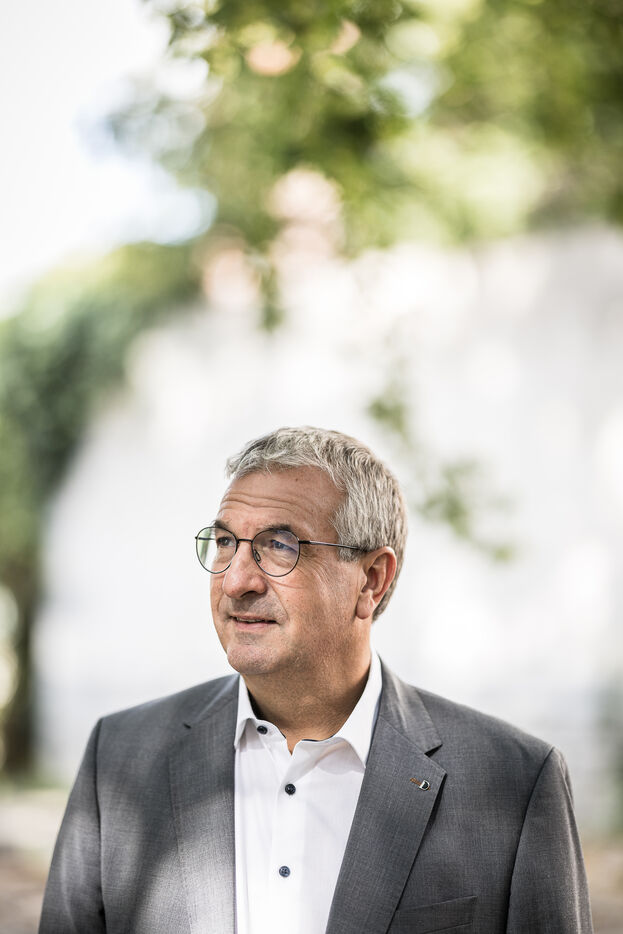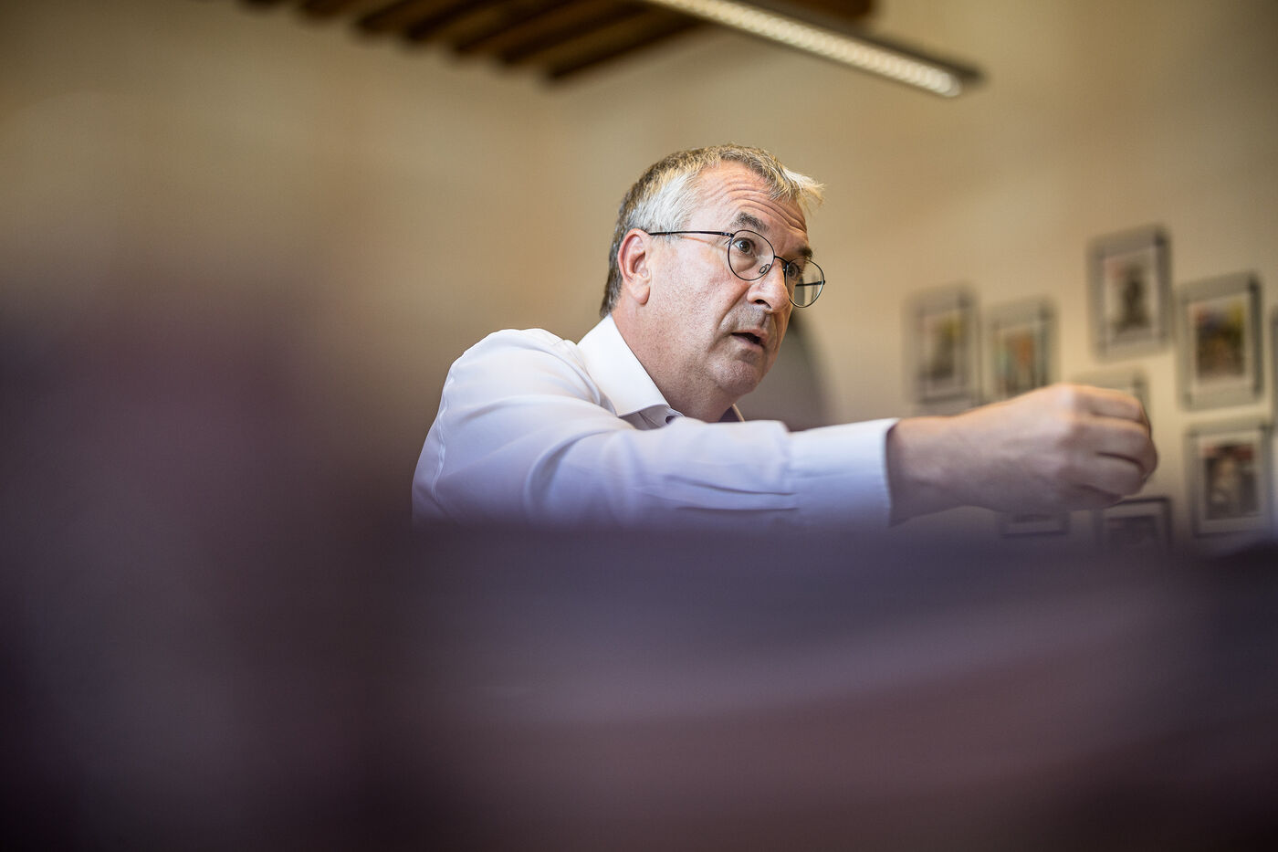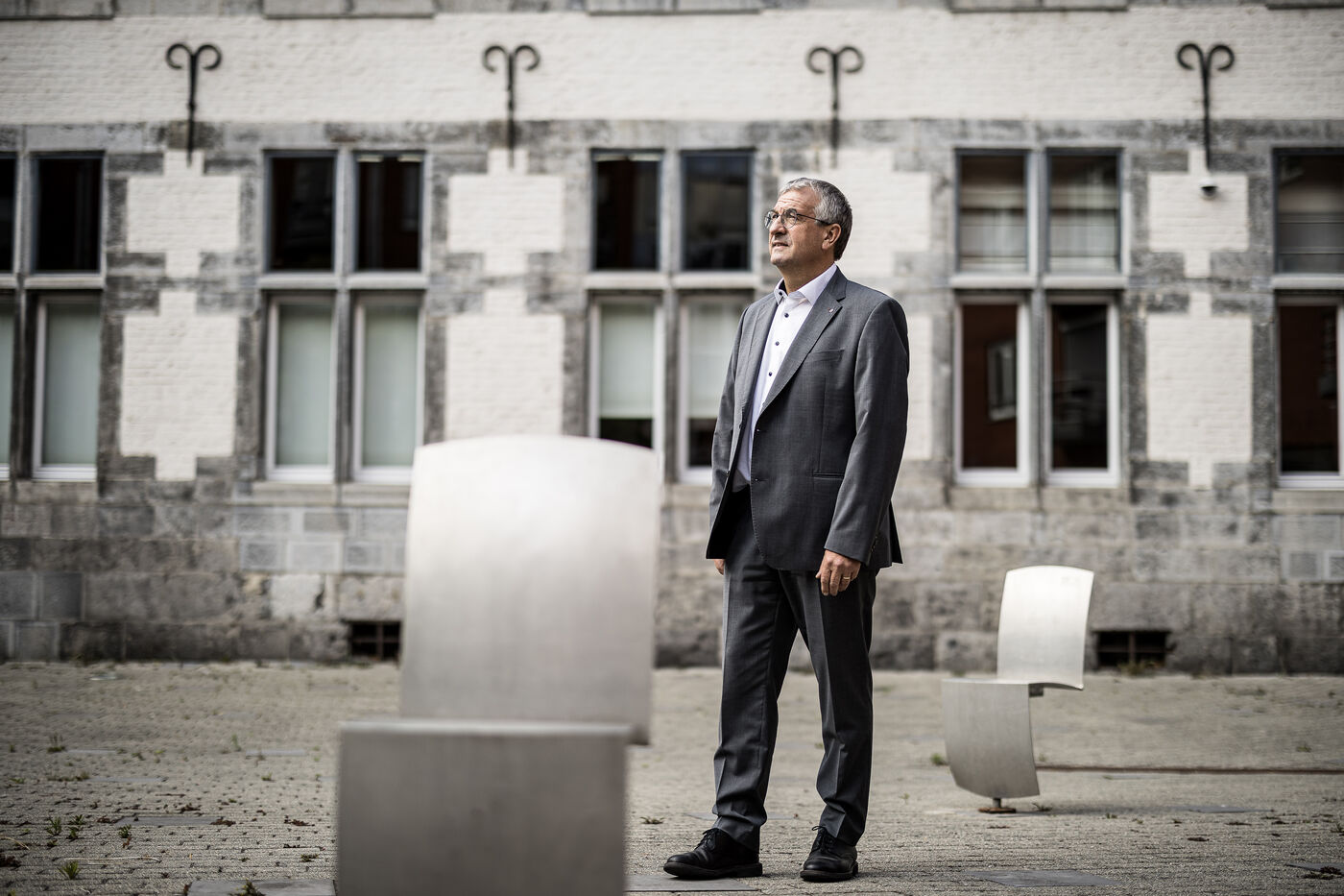 Portrait of Pierre-Yves Jeholet, Vice President and Minister of Economy, Industry, Digital Technology, Employment, and Training in Namur, Belgium, July 16, 2025.
