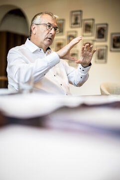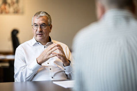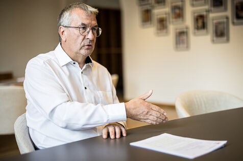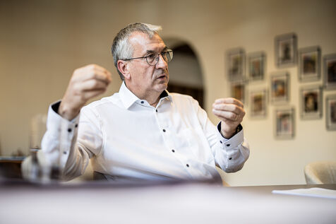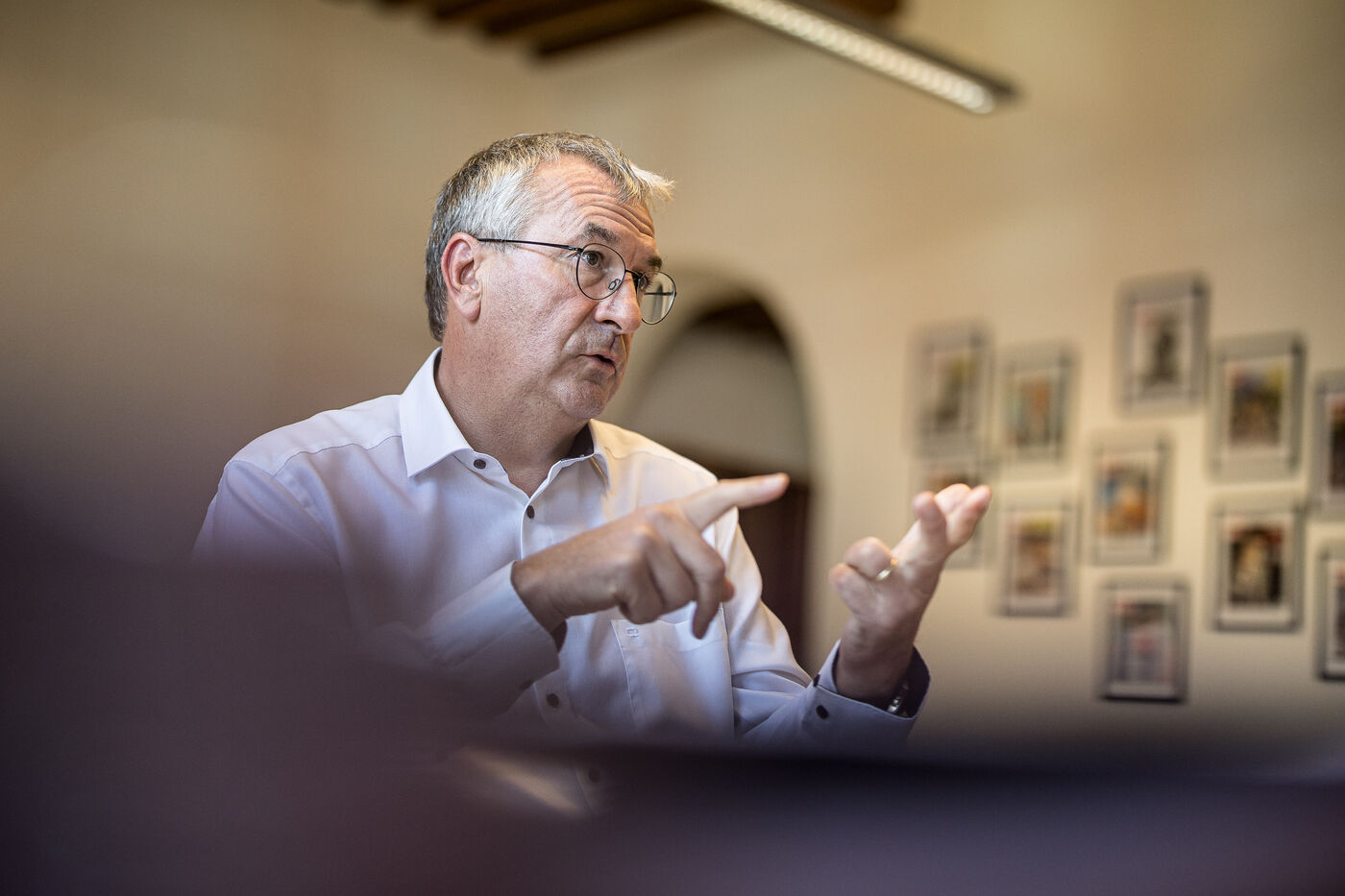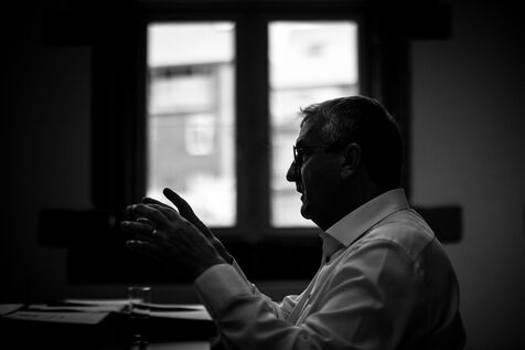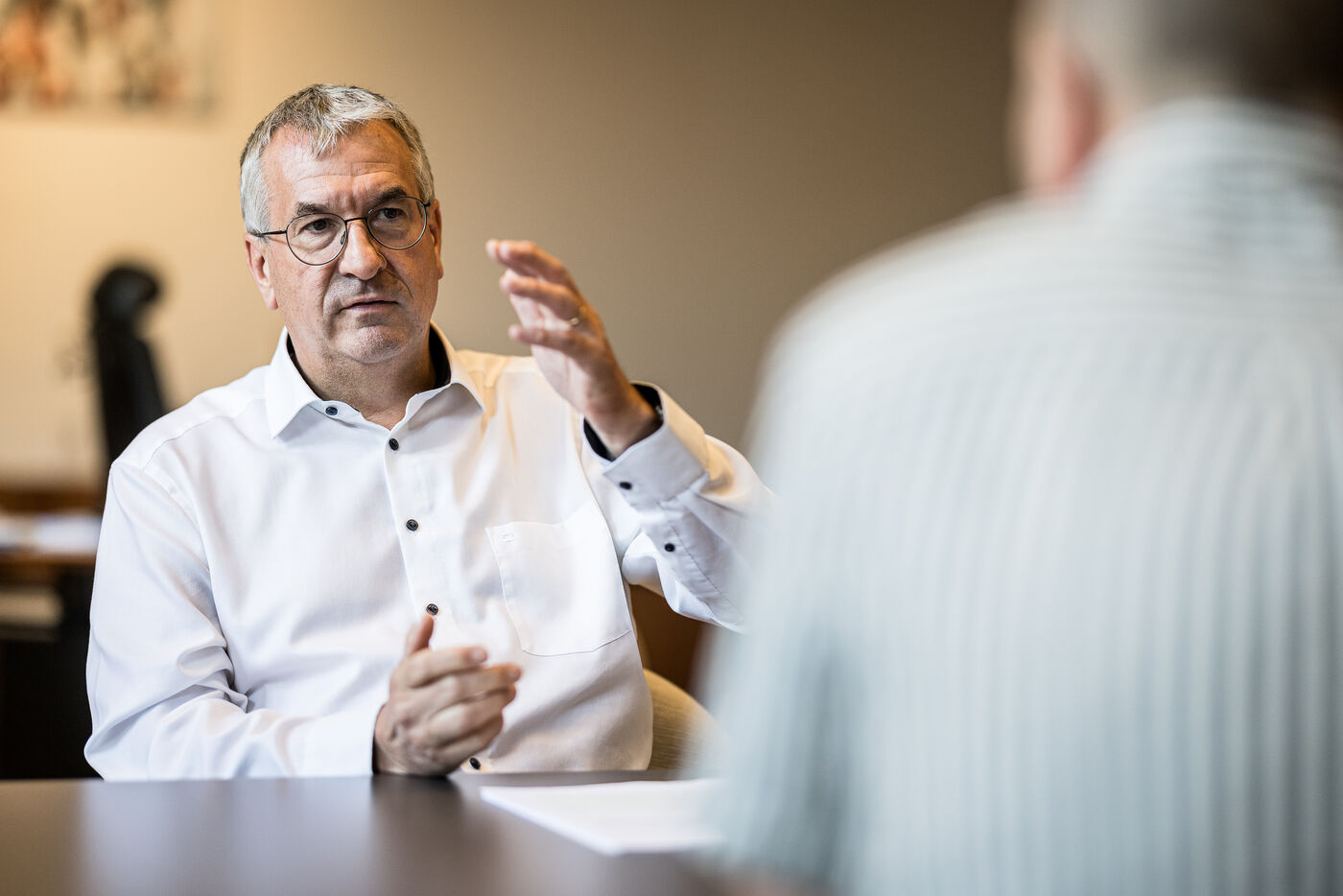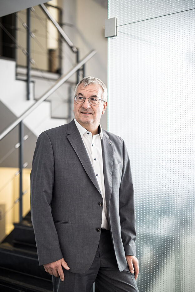 Portrait of Pierre-Yves Jeholet, Vice President and Minister of Economy, Industry, Digital Technology, Employment, and Training in Namur, Belgium, July 16, 2025.