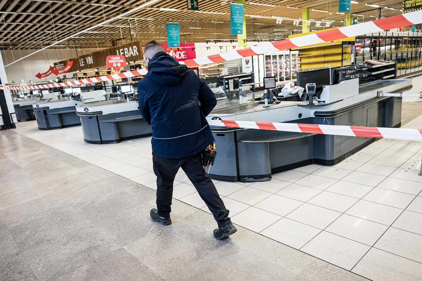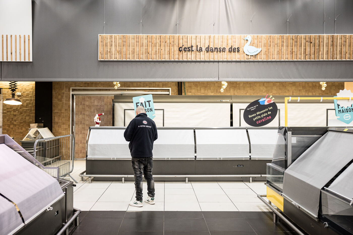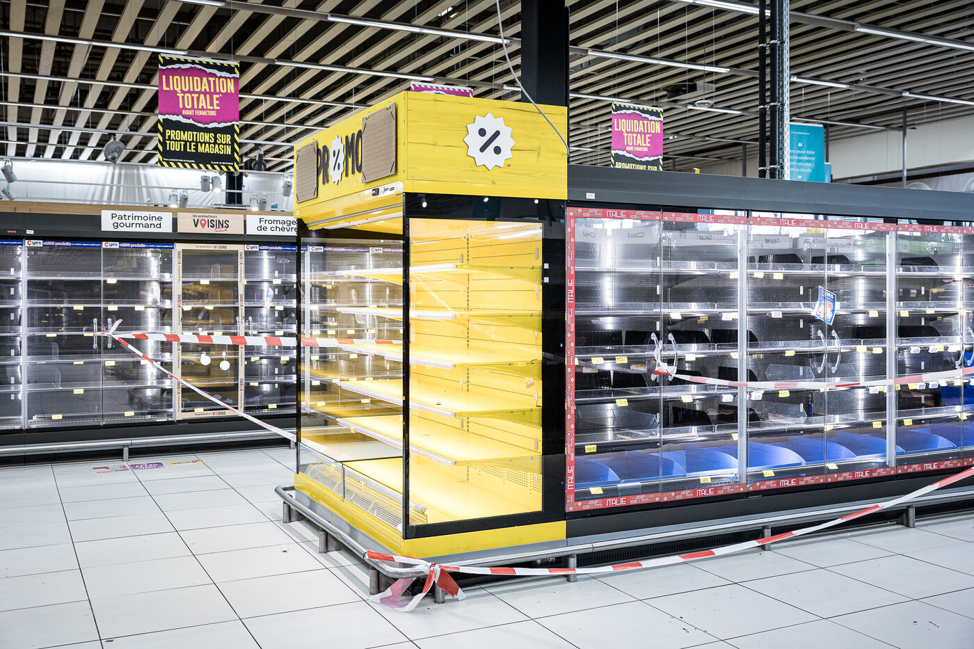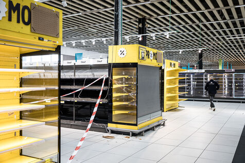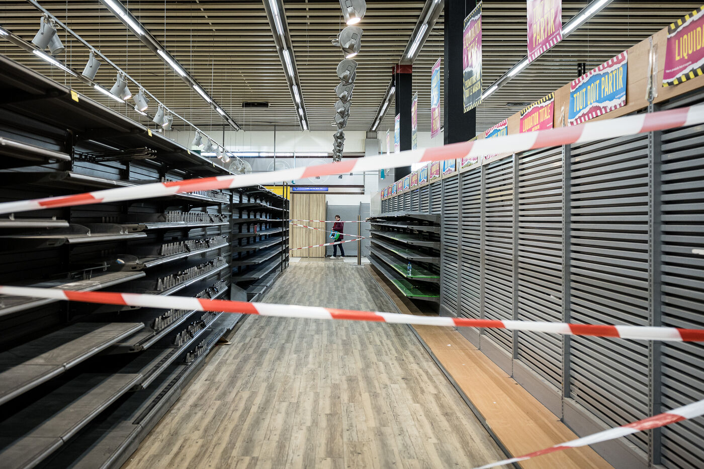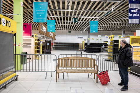 After more than 50 years, the Cora hypermarket is closing its doors for good. A few customers come to clear out what remains on the shelves, while only a handful of employees are still present before the announcement of the closure in Rocourt, Belgium, January 30, 2026.