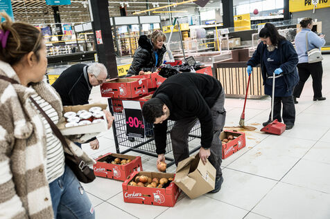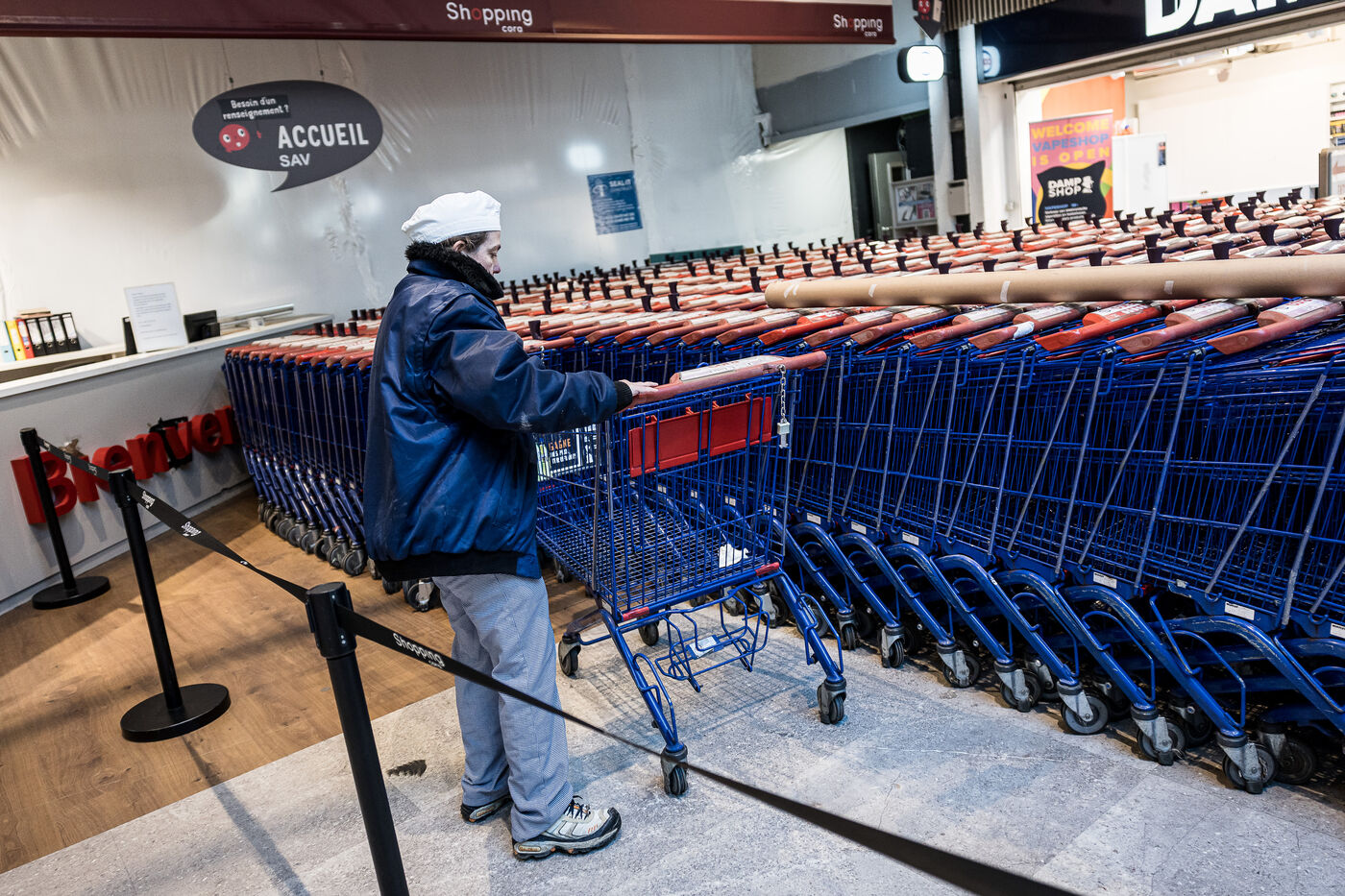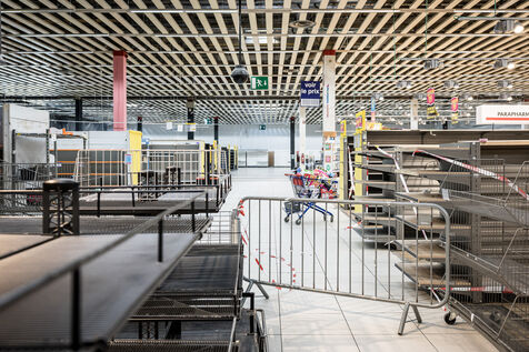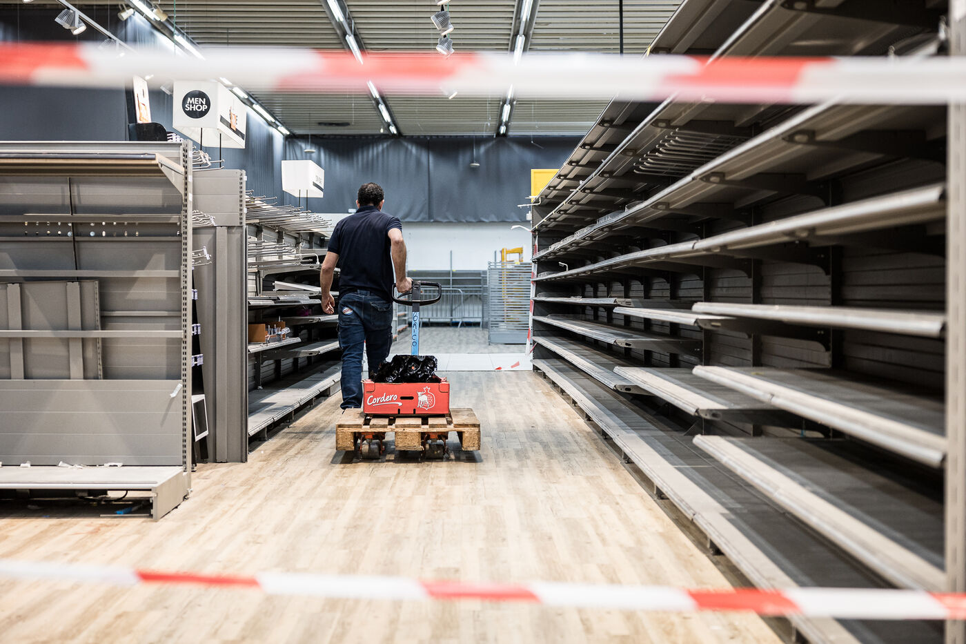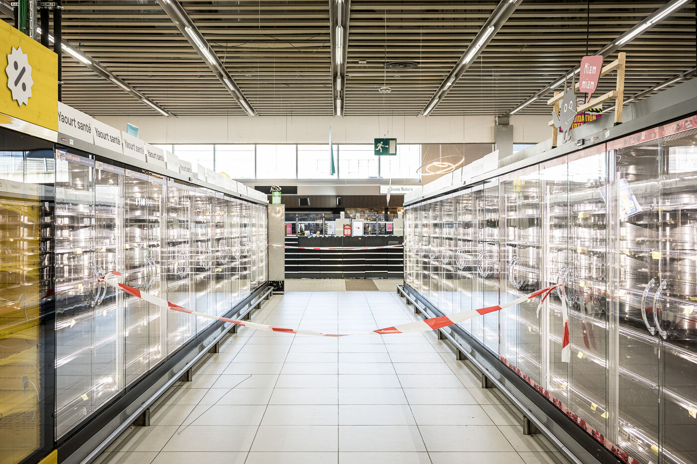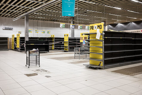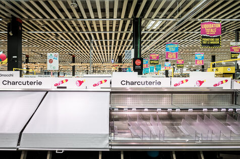 After more than 50 years, the Cora hypermarket is closing its doors for good. A few customers come to clear out what remains on the shelves, while only a handful of employees are still present before the announcement of the closure in Rocourt, Belgium, January 30, 2026.