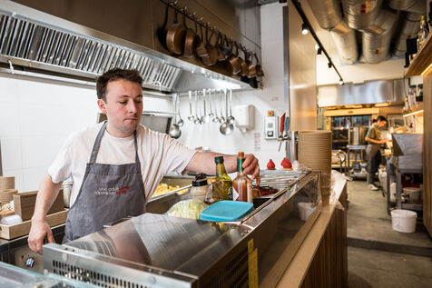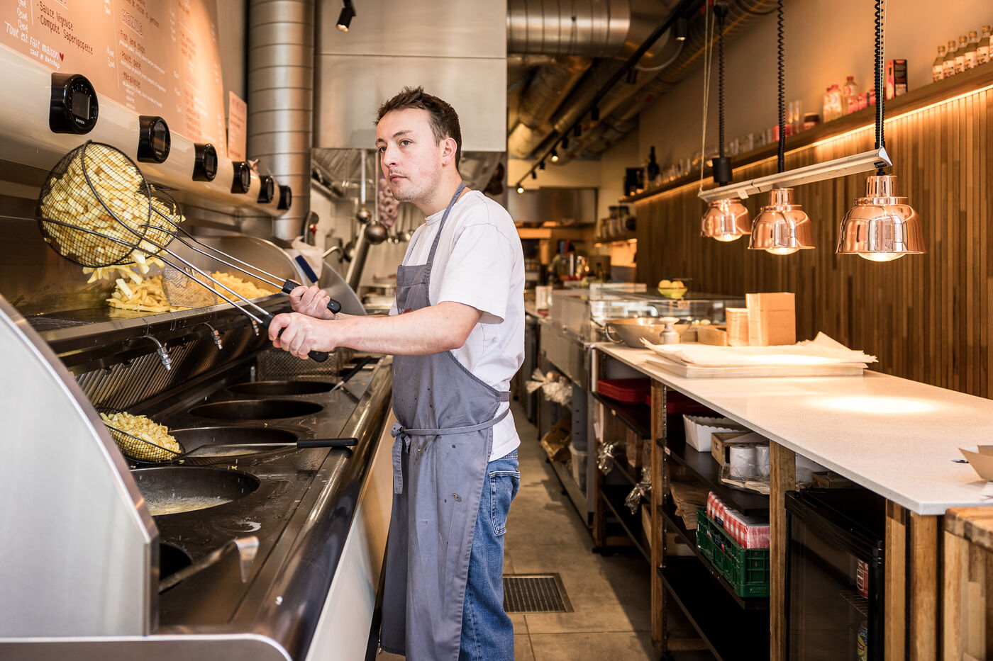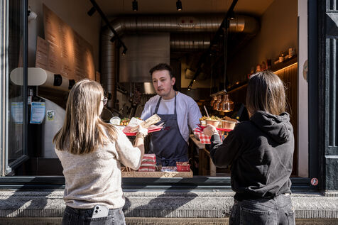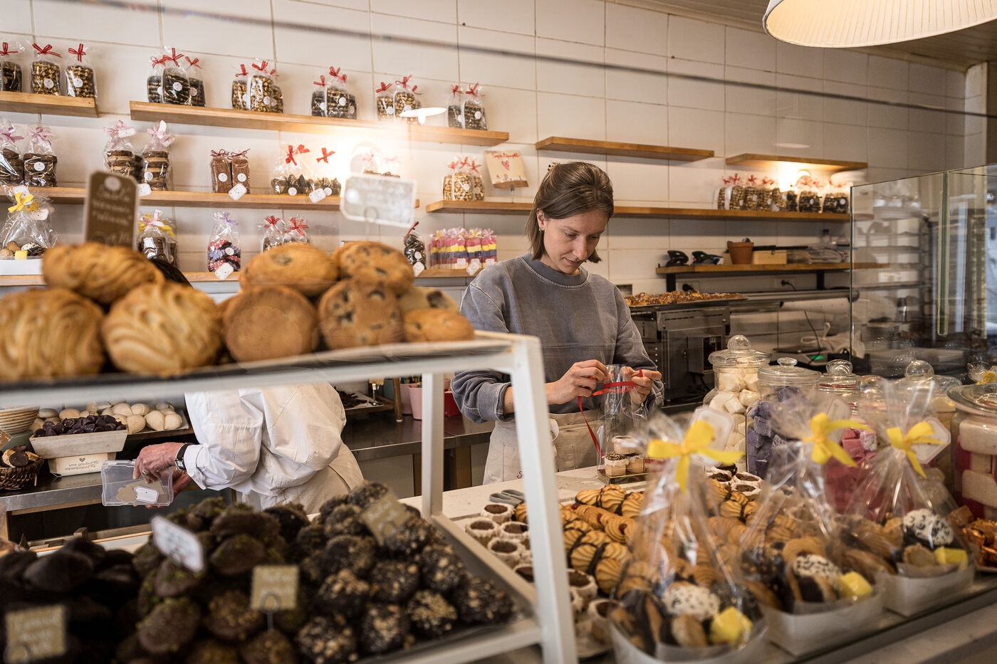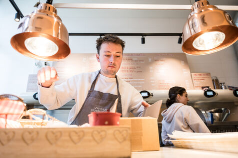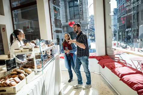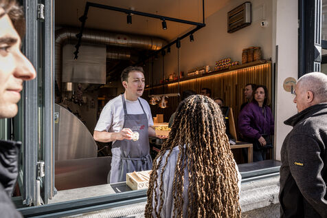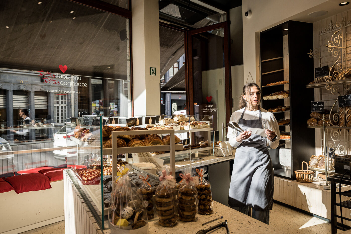 La famille Michaux, composee de Benedicte, Eric, Emile et Augustin ont cree l entreprise La Gaufrette Saperlipopette a Liege, Belgique, 5 Mars 2026.