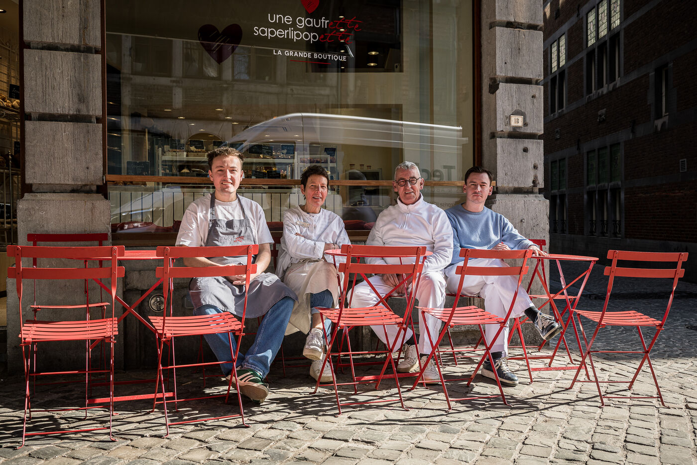 The Michaux family, composed of Benedicte, Eric, Emile, and Augustin, founded the company La Gaufrette Saperlipopette in Liege, Belgium, on March 5, 2026.