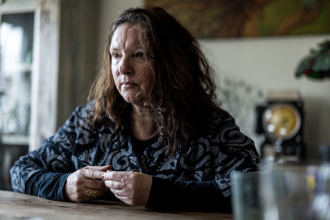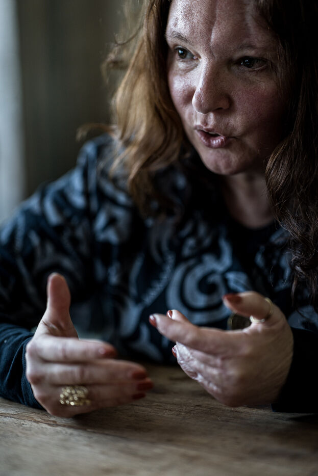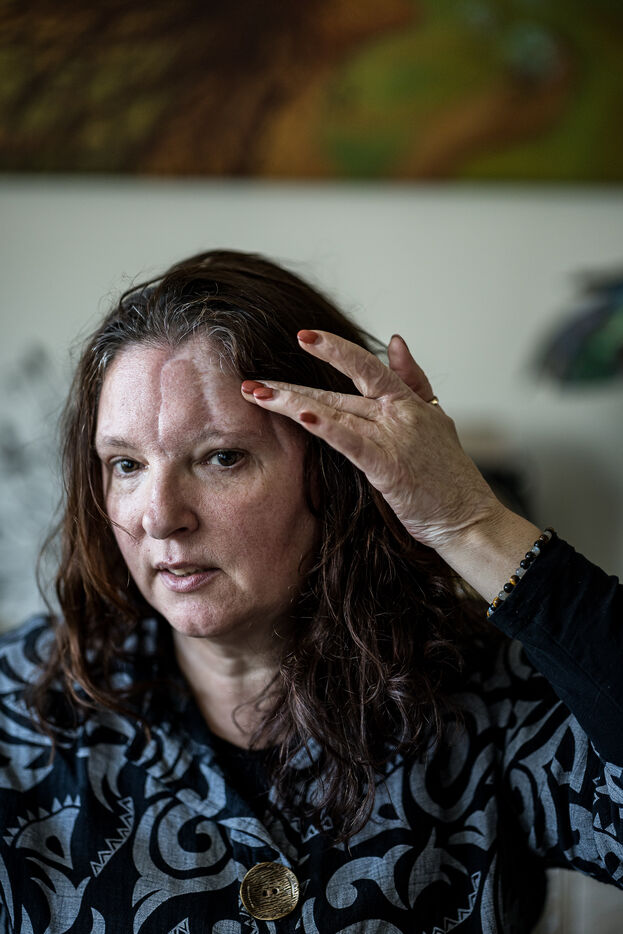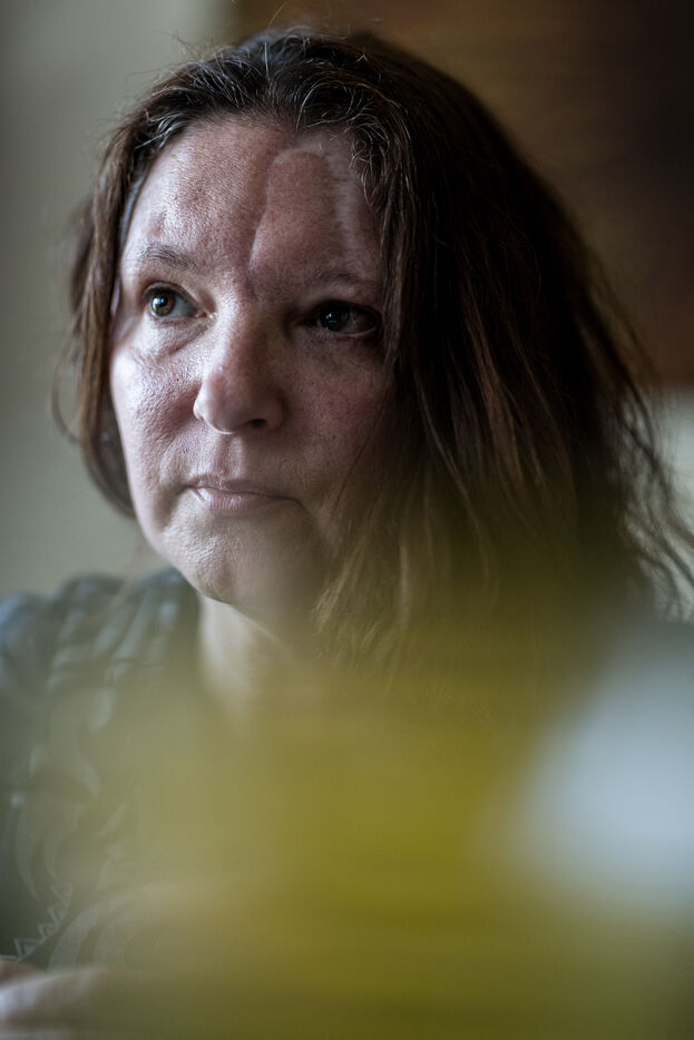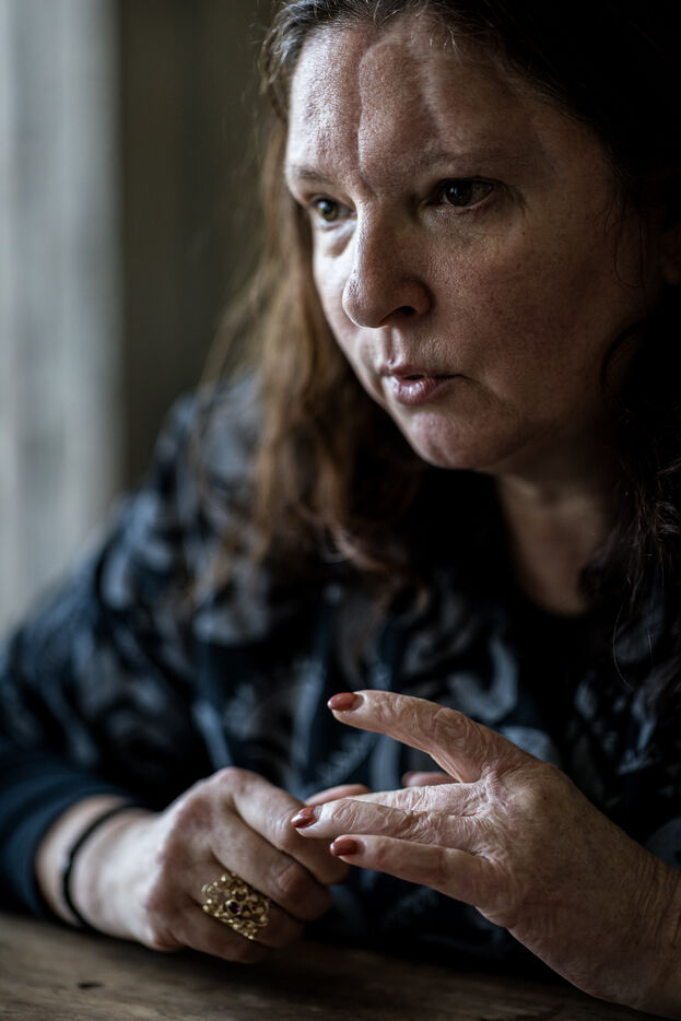 Portrait of Sabine Borgignons, a survivor of the 2016 terrorist attacks in Limal, Belgium, March 12, 2026.
