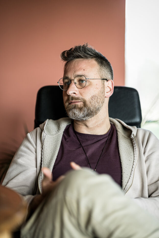 Portrait of Mathias Gilles, a survivor of the 2016 terrorist attacks in Silly, Belgium, March 16, 2026.