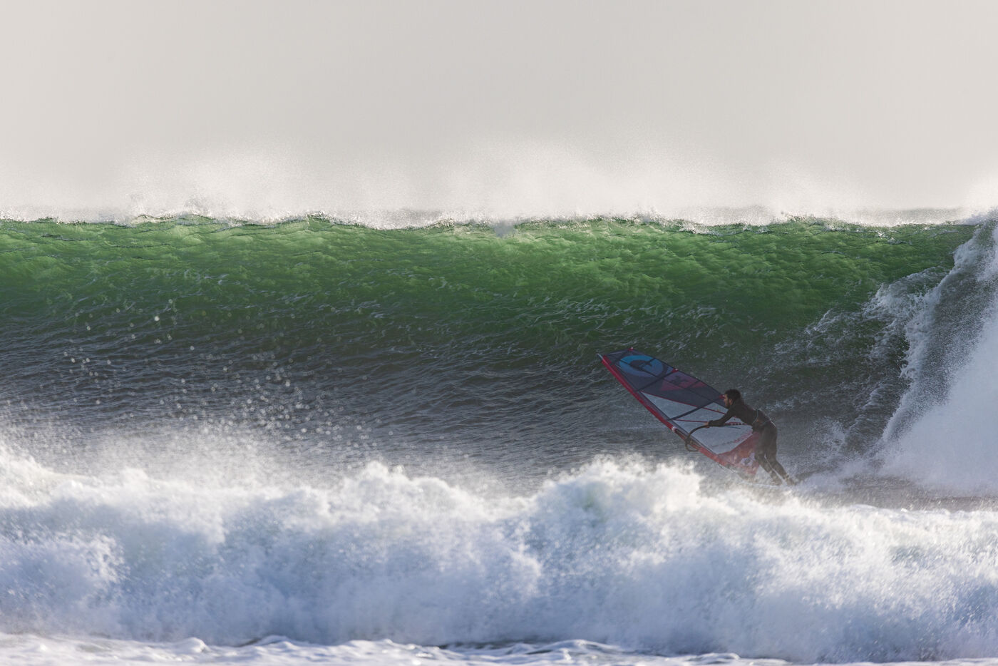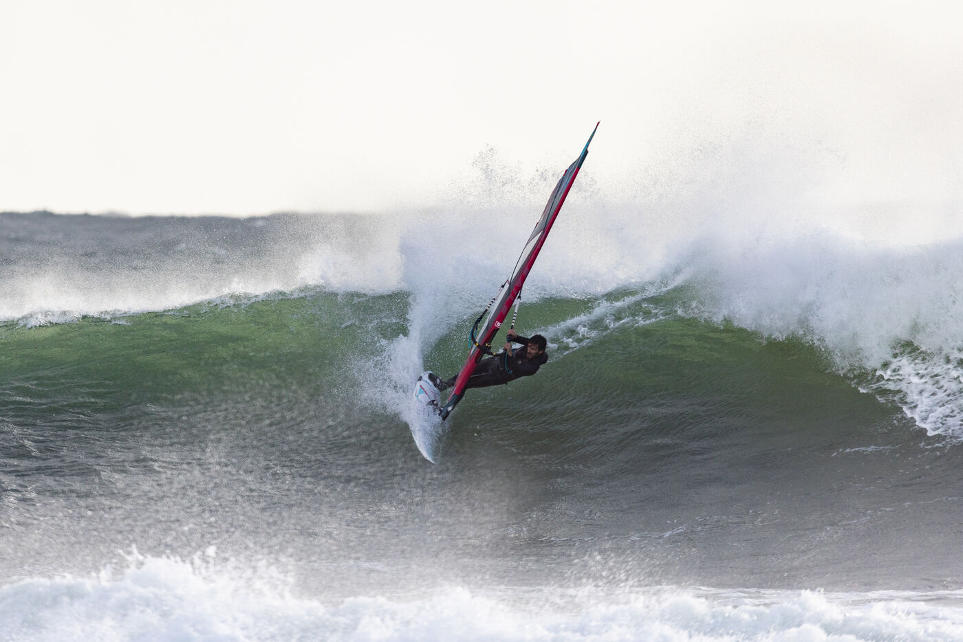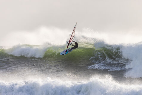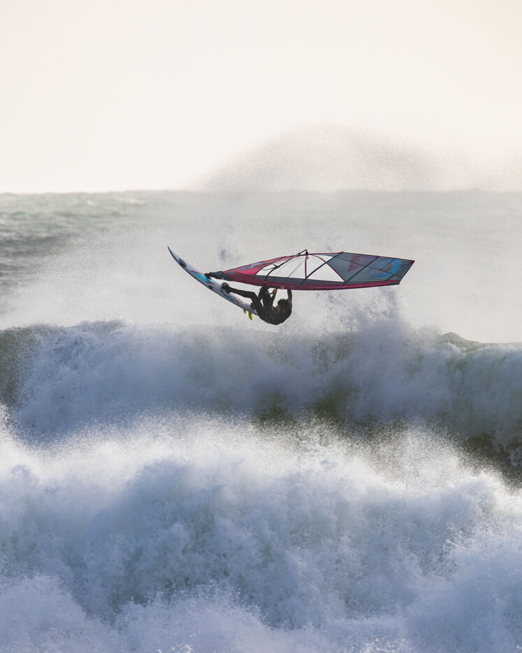 French professional windsurfer Thomas Traversa came to Brittany to put on a show and play with the wind and waves of Storm Goretti. A 6-metre swell swept across the coast of Finistere.