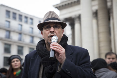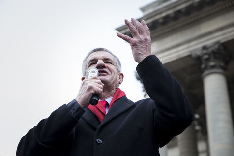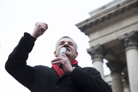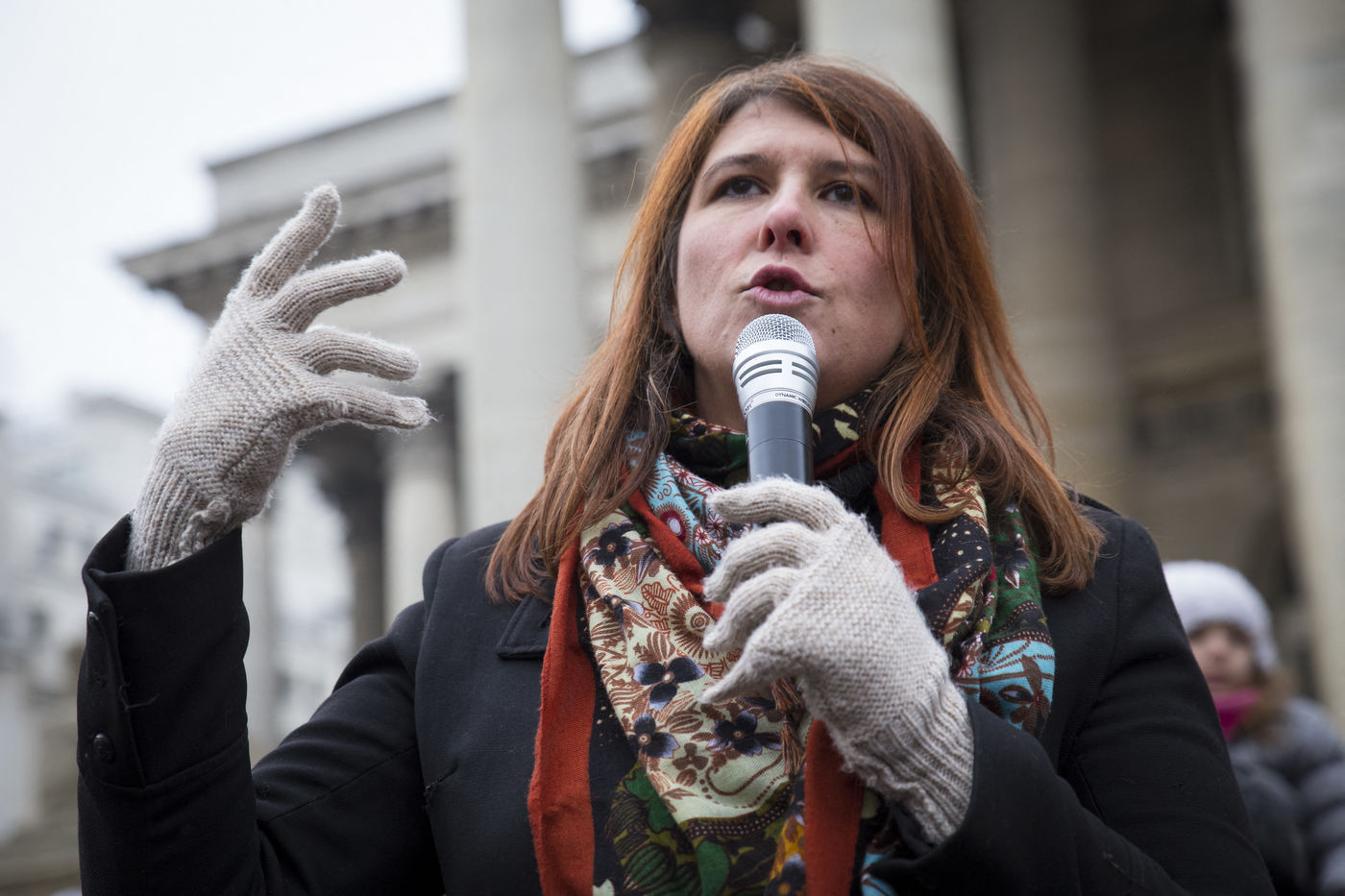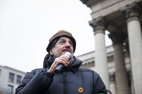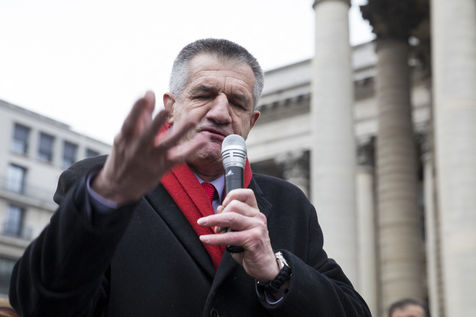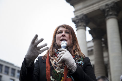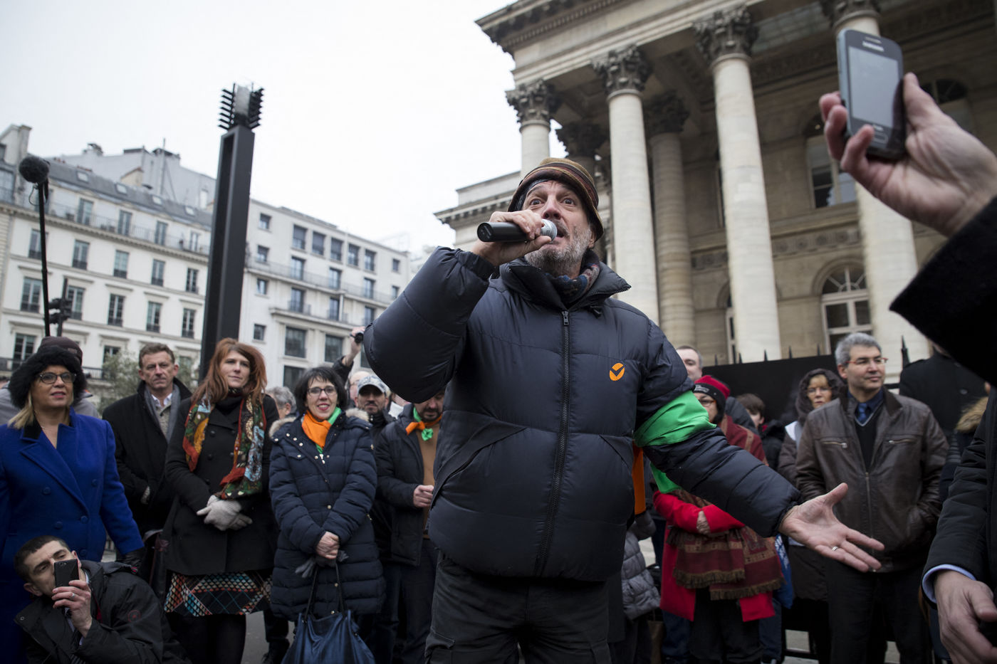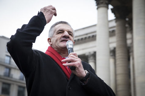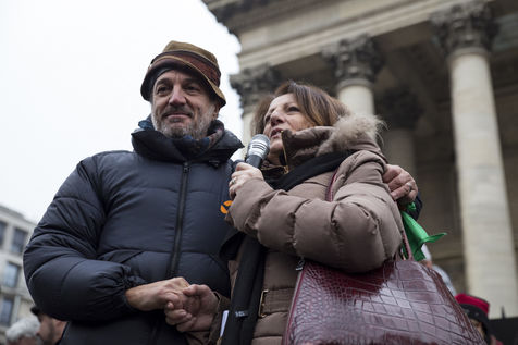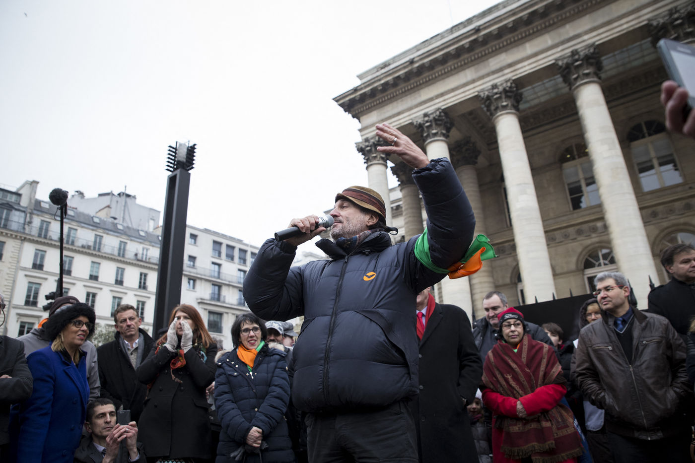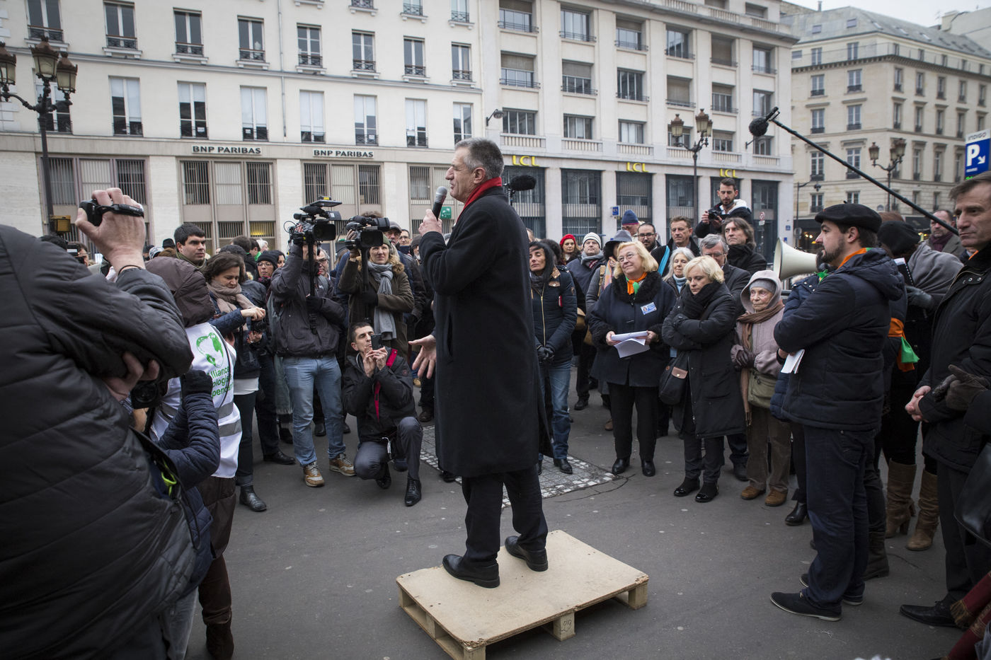 France, Paris, February 11, 2017. The alternative movement 100% is preparing for the next electoral events. After the designation of a presidential candidate, by means of an open primary on the internet, the eco-citizen movement "100%" was officially launched this Saturday during a gathering at Place de la Bourse in Paris. In the presence of the singer Francis Lalanne, co-president of the movement, the deputy of the Pyrénées-Atlantiques Jean Lassalle and the presidential candidate Charlotte Marchandise. 28 citizen and environmentalist political movements have decided to join forces to propose an alternative to outdated parties and extremes.