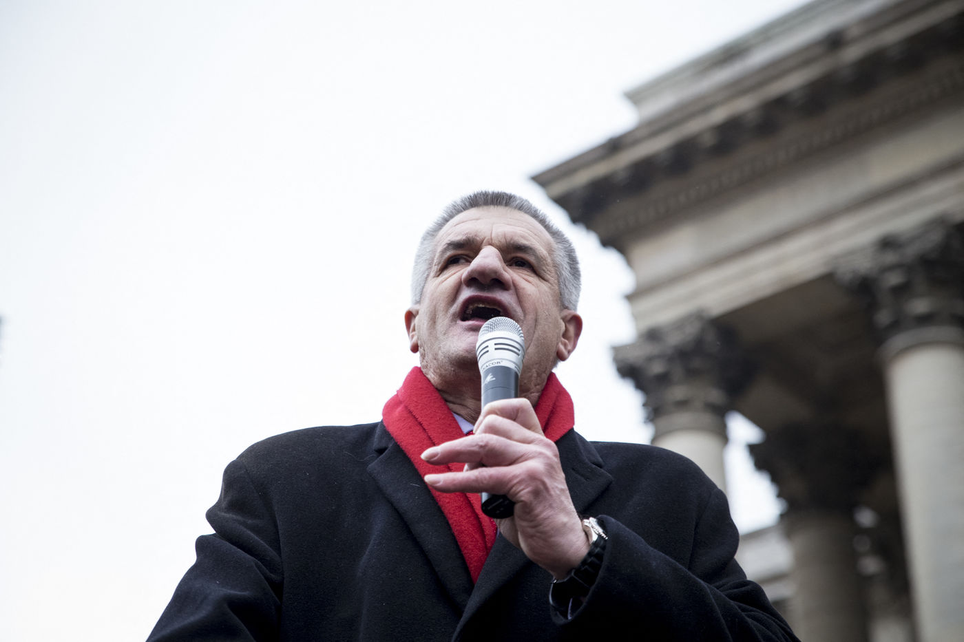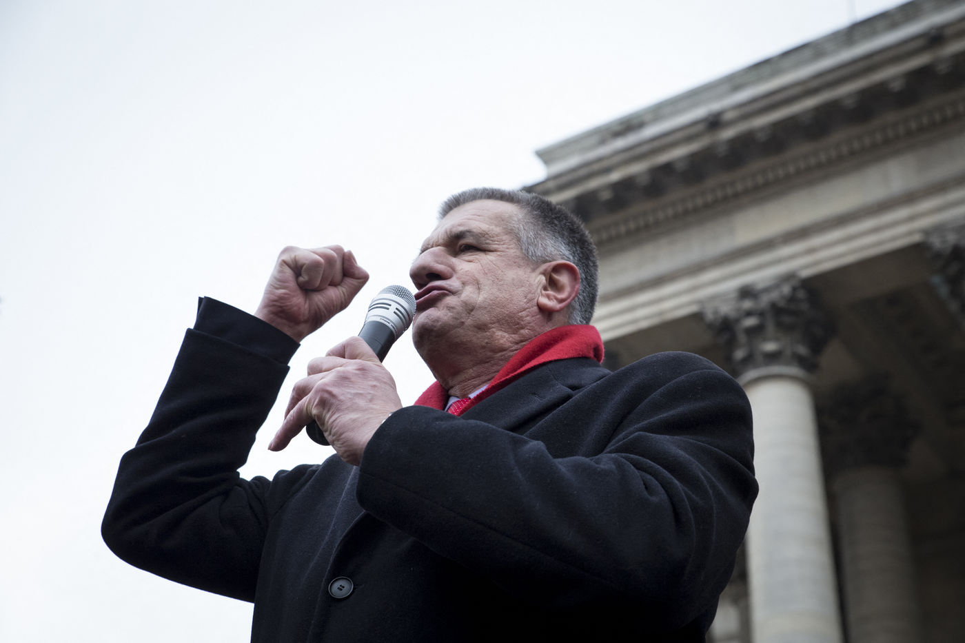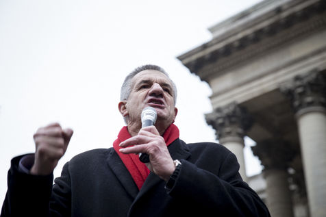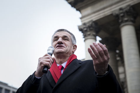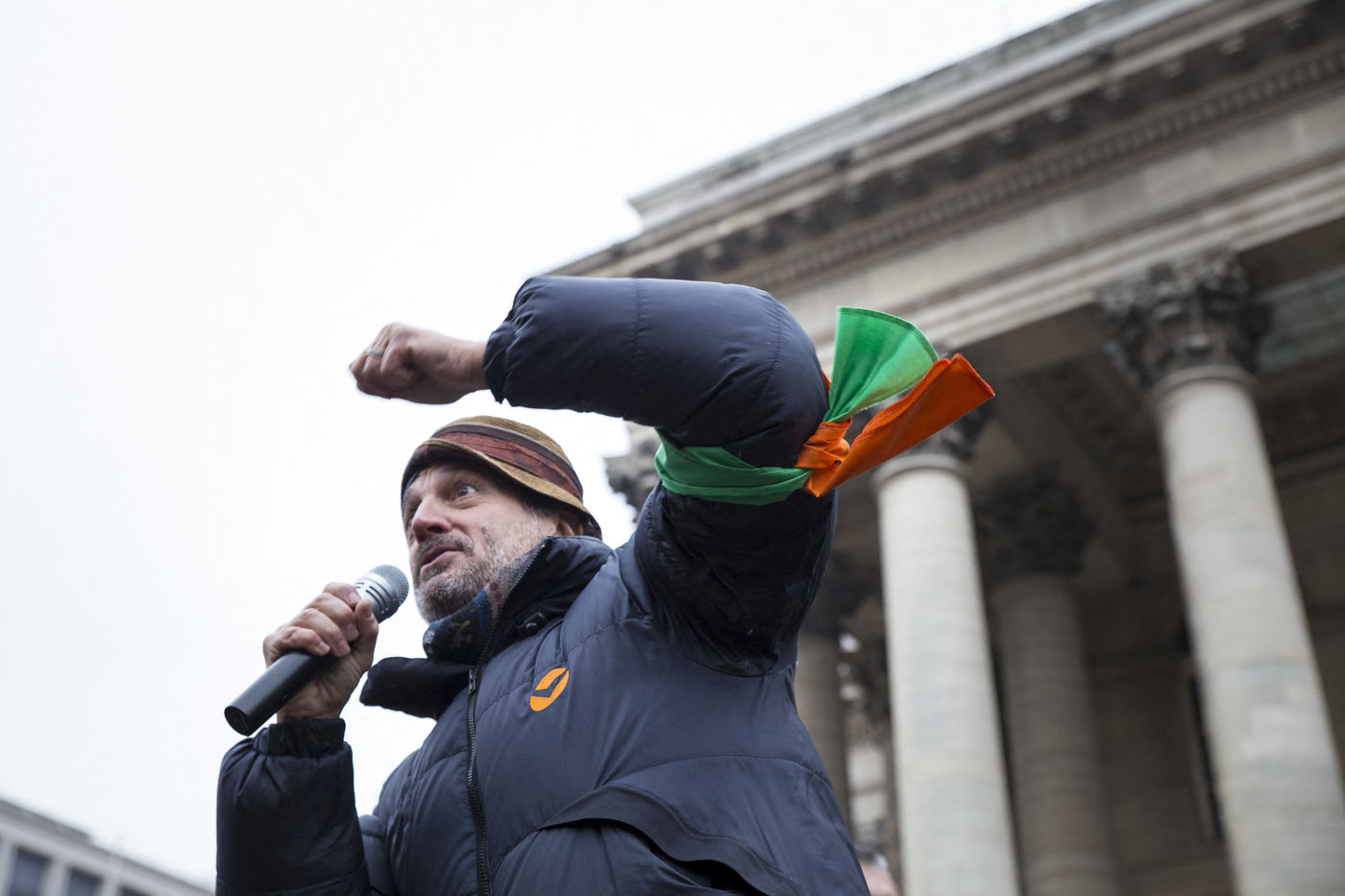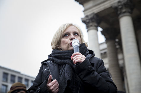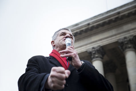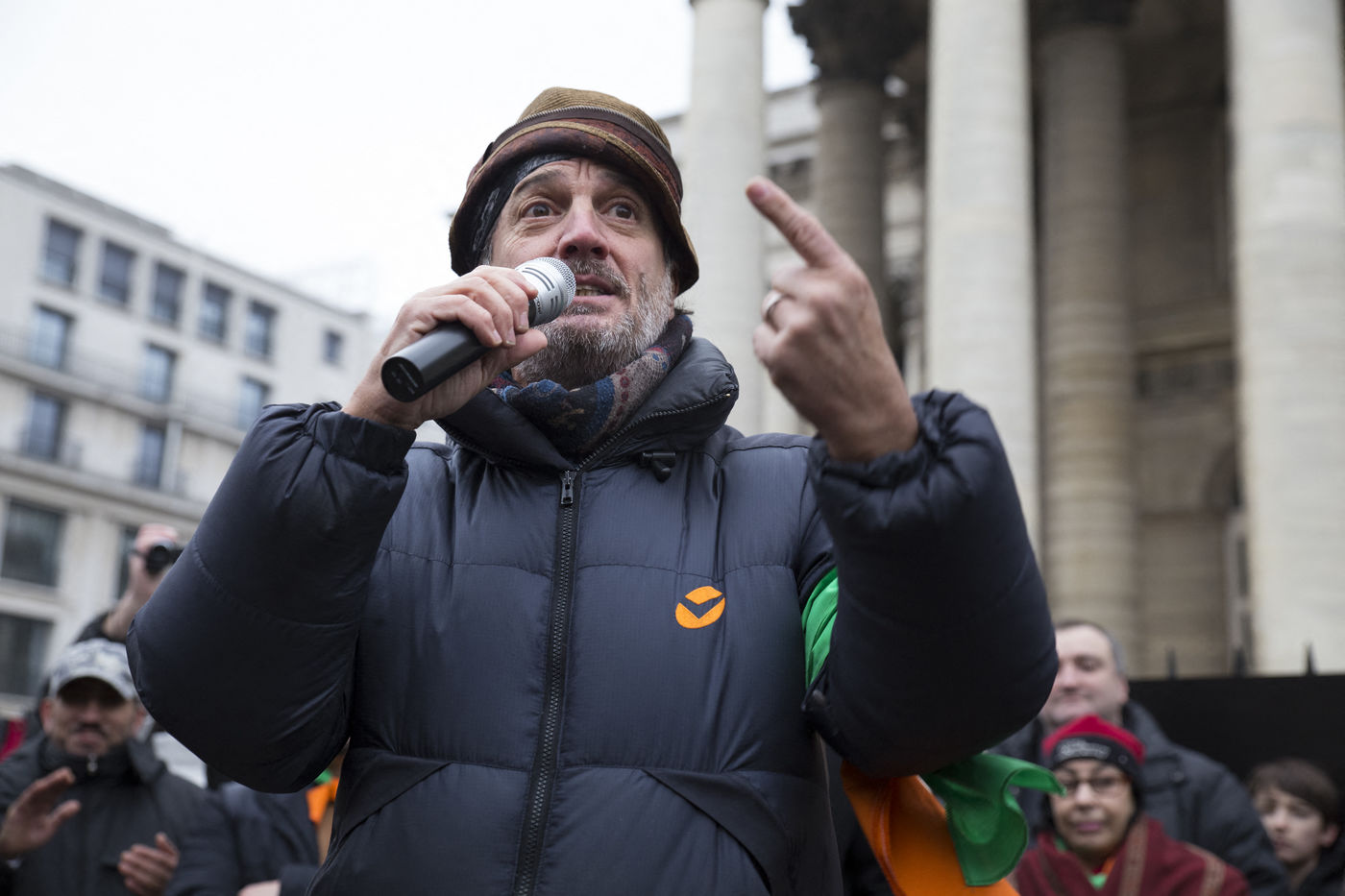 France, Paris, February 11, 2017. The alternative movement 100% is preparing for the next electoral events. After the designation of a presidential candidate, by means of an open primary on the internet, the eco-citizen movement "100%" was officially launched this Saturday during a gathering at Place de la Bourse in Paris. In the presence of the singer Francis Lalanne, co-president of the movement, the deputy of the Pyrénées-Atlantiques Jean Lassalle and the presidential candidate Charlotte Marchandise. 28 citizen and environmentalist political movements have decided to join forces to propose an alternative to outdated parties and extremes.