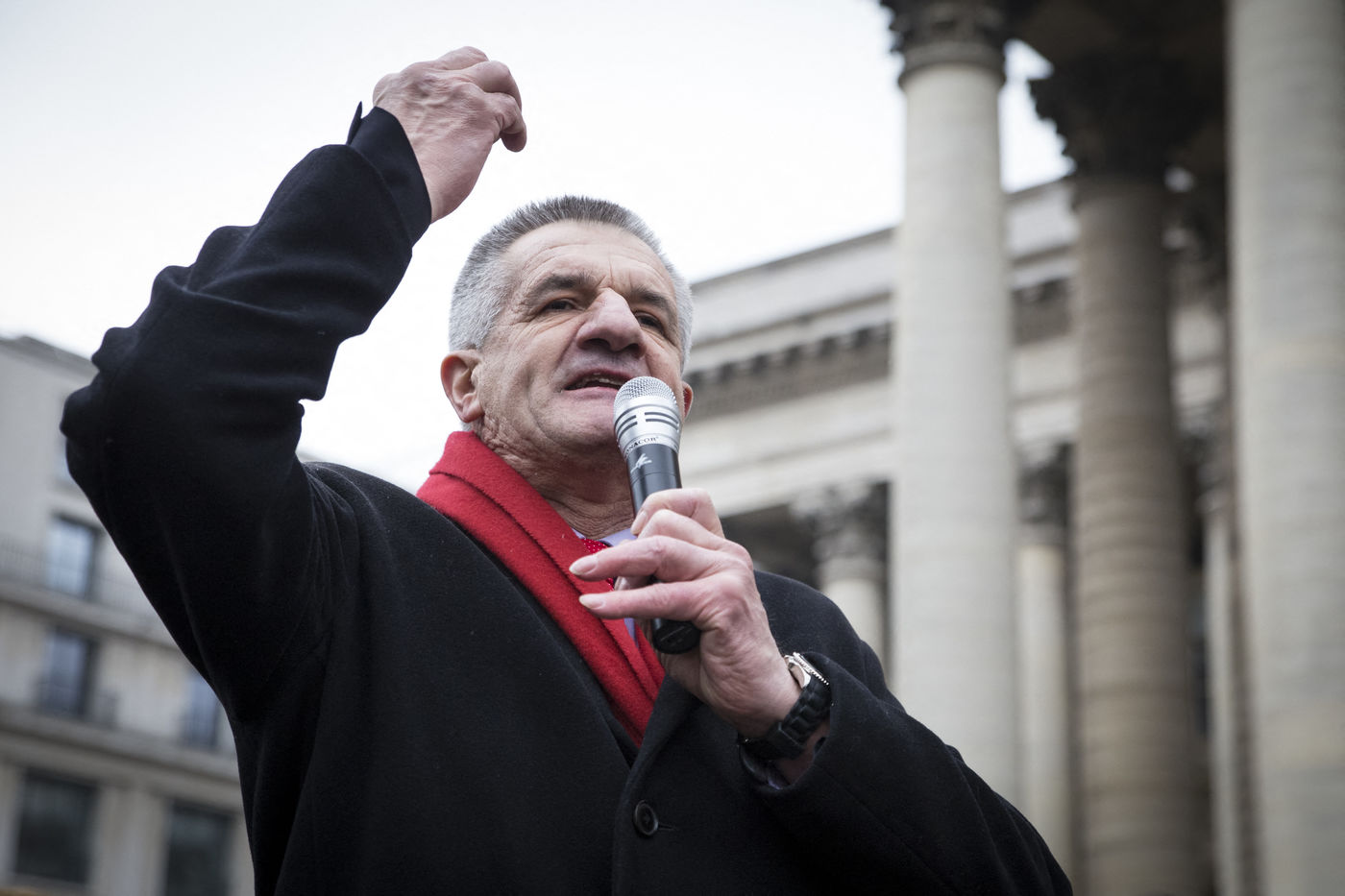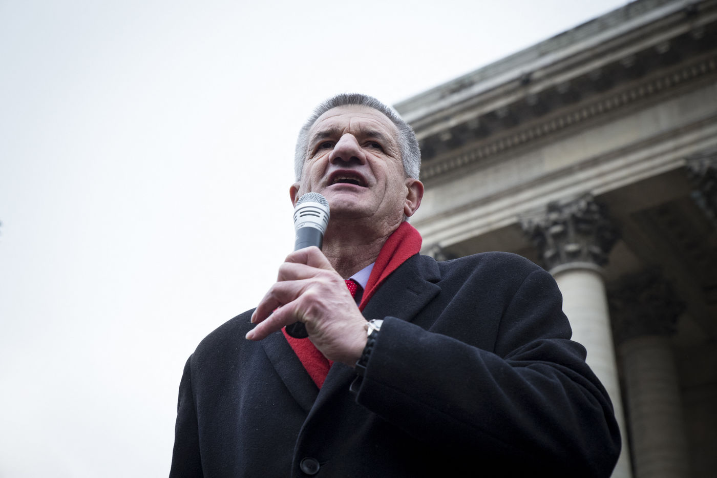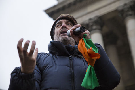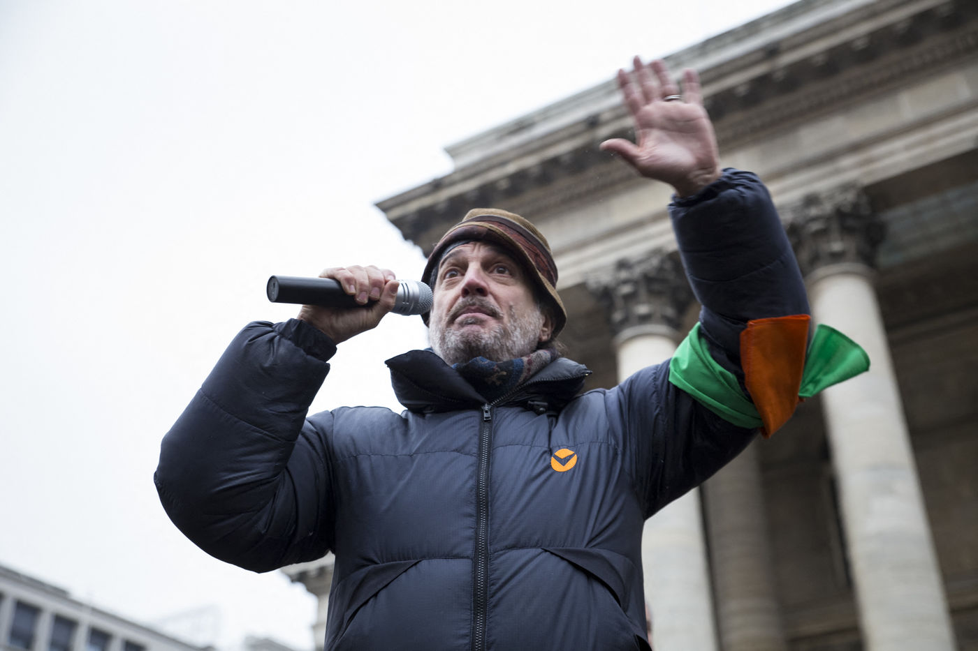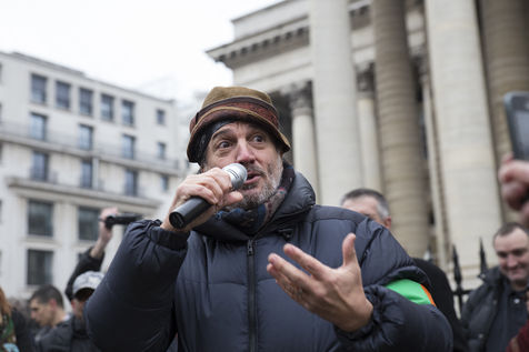 France, Paris, le 11 février 2017. Le mouvement alternatif 100% se préprare pour les prochaines échéances électorales. Après la désignation d'une candidate à la présidentielle, au moyen d'une primaire ouverte sur internet, le mouvement éco-citoyen "100%" s'est officiellement lancé ce samedi au cours d'un rassemblement place de la Bourse à Paris. En présence du chanteur Francis Lalanne, co-président du mouvement, du député des Pyrénées-Atlantiques Jean Lassalle et de la candidate à la présidentielle Charlotte Marchandise. 28 mouvements politiques citoyens et écologistes ont décidé d'unir leurs forces afin de proposer une alternative aux partis dépassés et aux extrêmes.