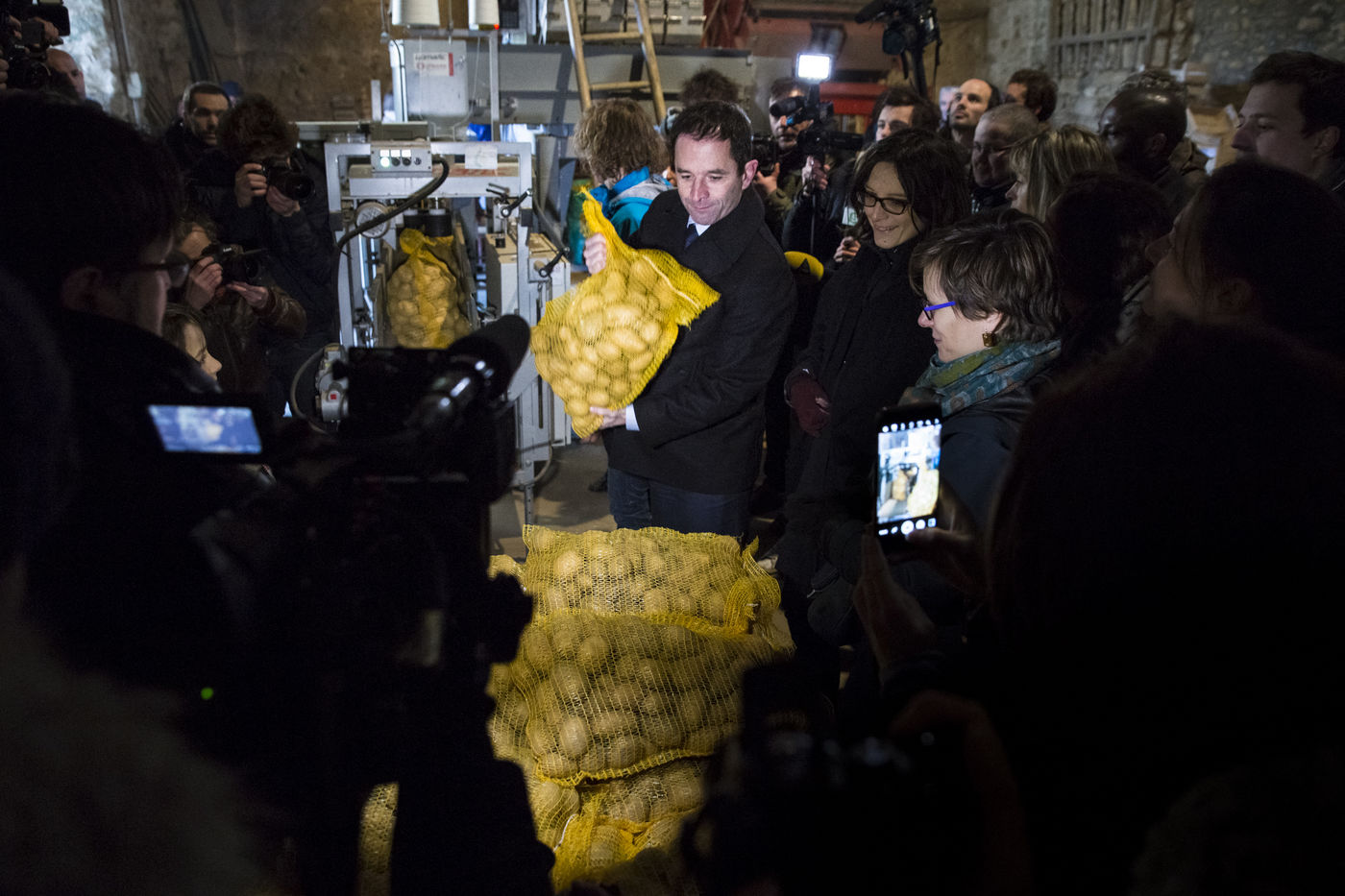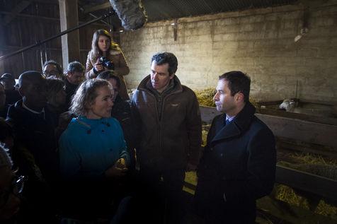 Benoit HAMON (French presidential candidate), in Seine-et-Marne, to visit the autonomous organic farm of two farmers, Carine and Simon THIERRY. Next the candidate delivers his 10 proposals for food at a press conference. Chatenoy (77), France, February 13, 2017.