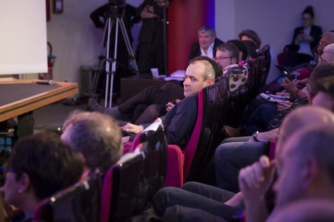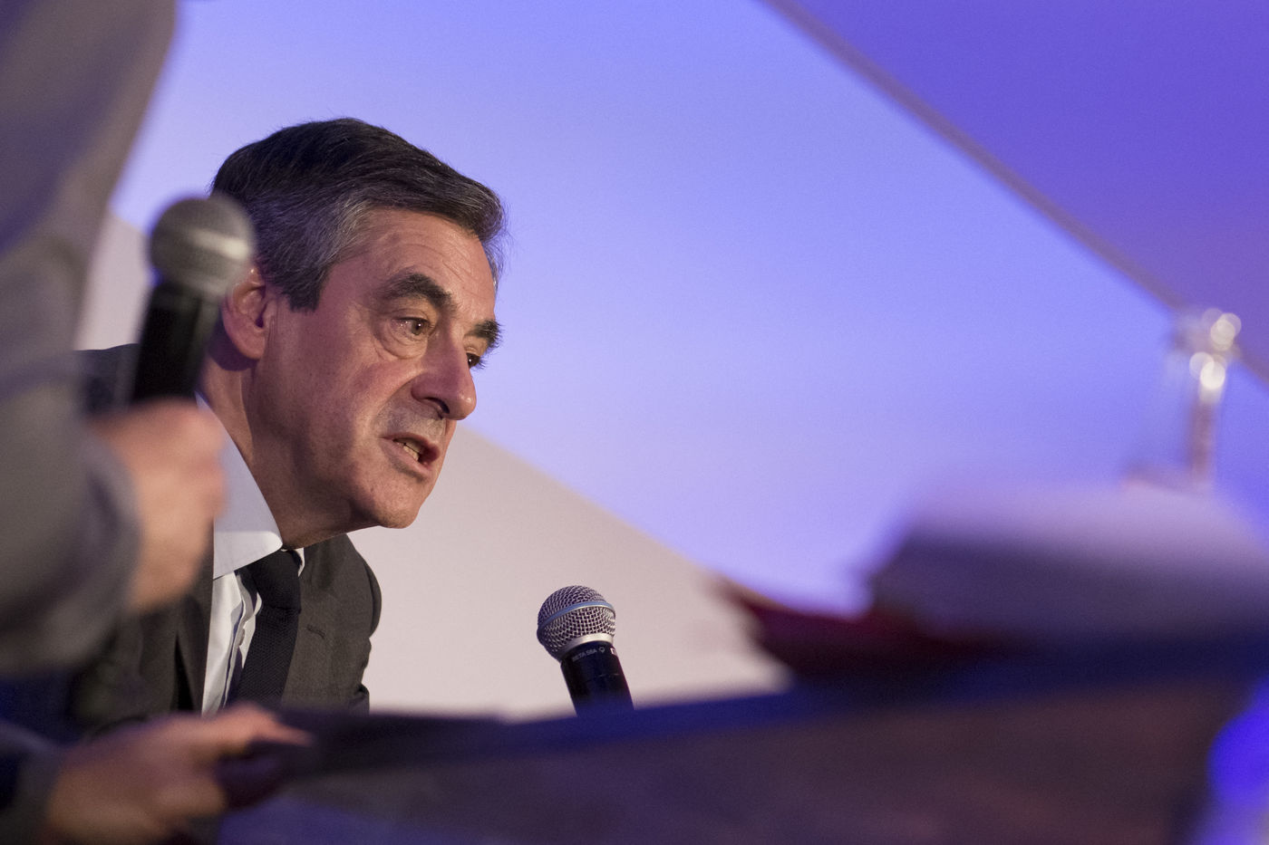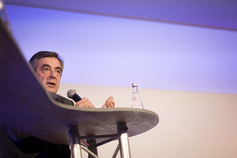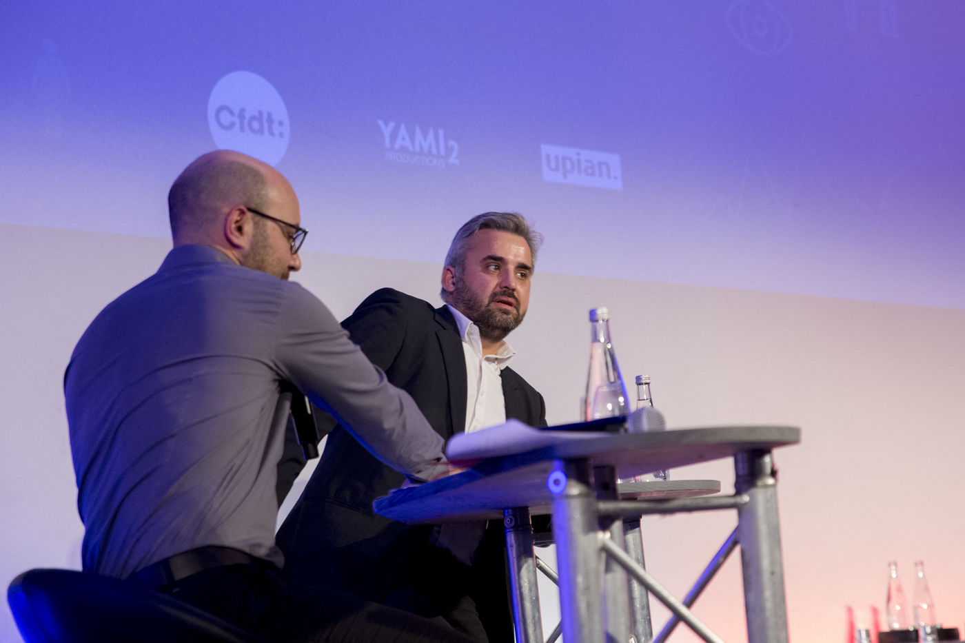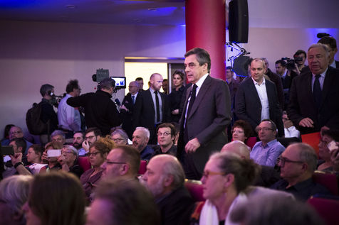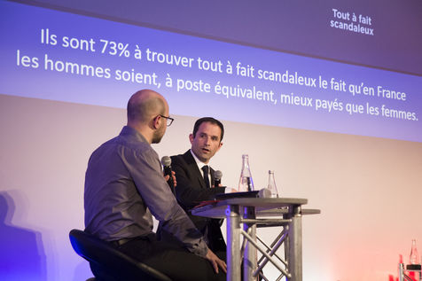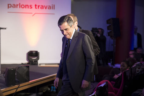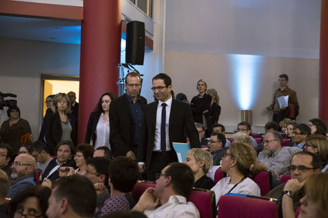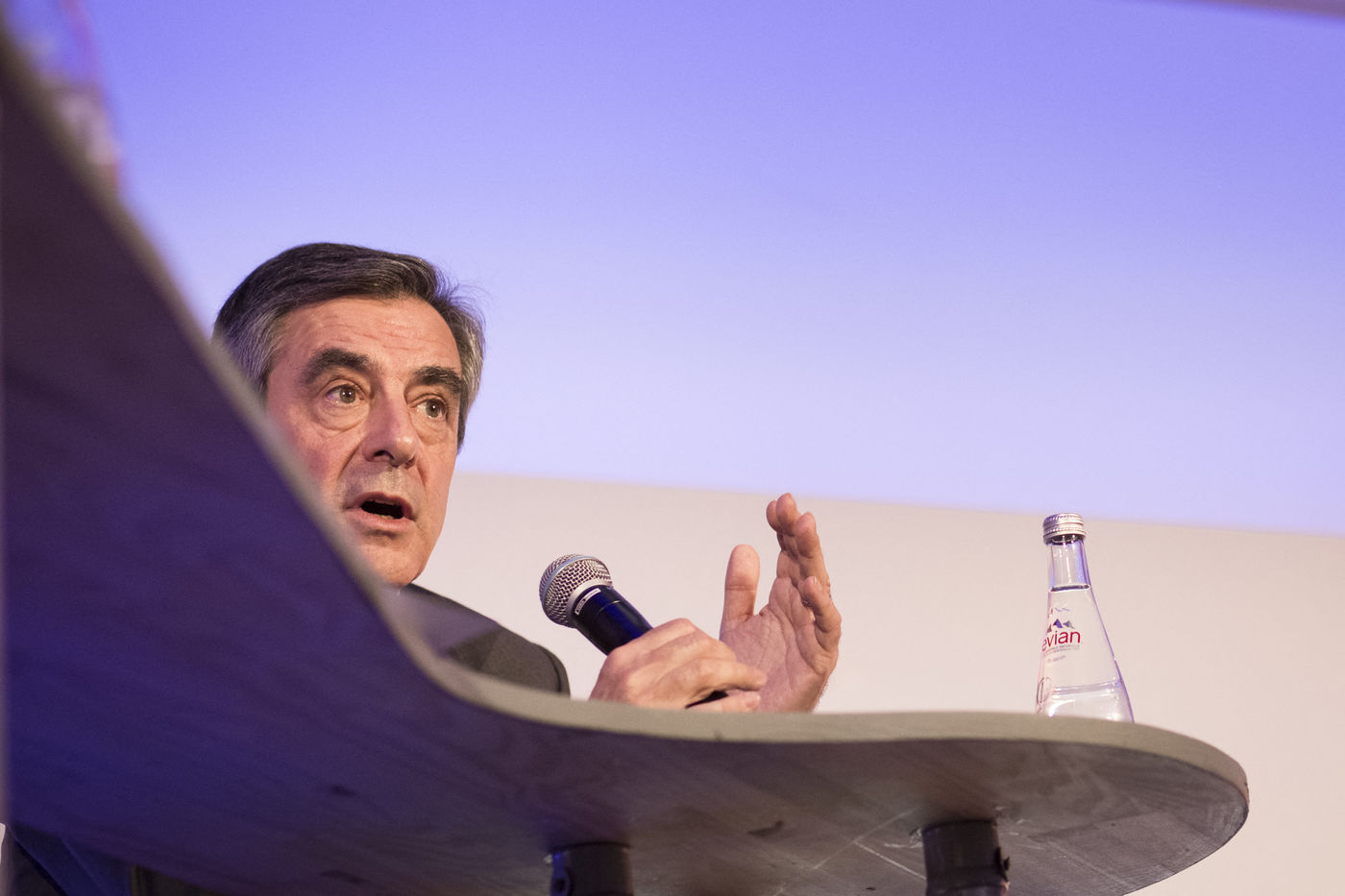 CFDT headquarters, Paris, France. On the occasion of the restitution of the results of its survey "Let's talk about work", the CFDT had invited 3 presidential candidates to come and debate on this theme. Benoit Hamon (PS), François Fillon (LR) and Alexis Corbière representing Jean-Luc Mélenchon for the occasion.