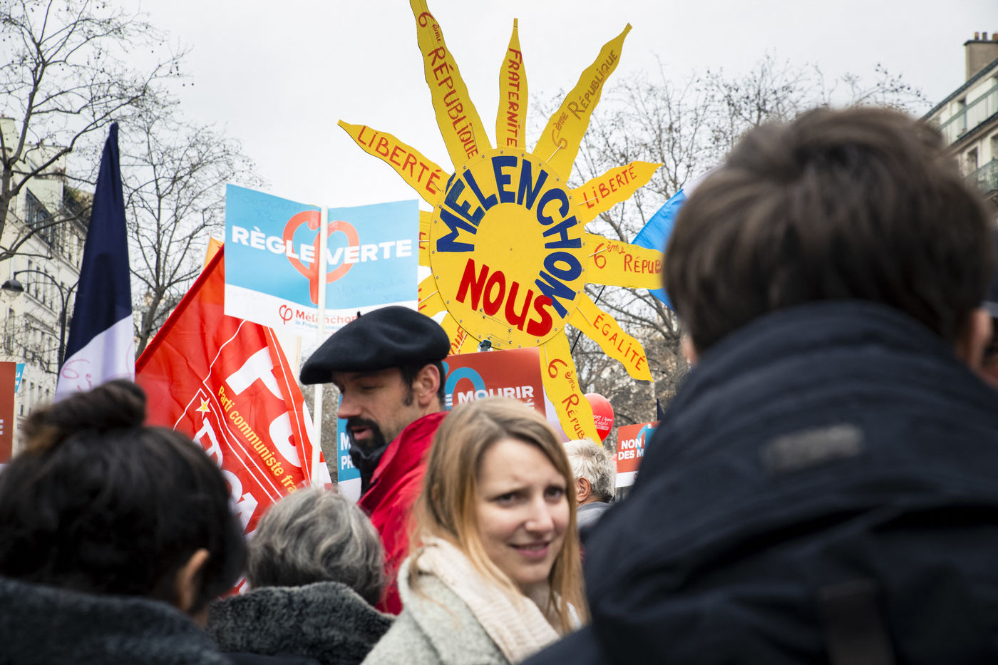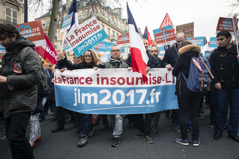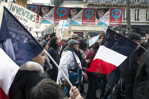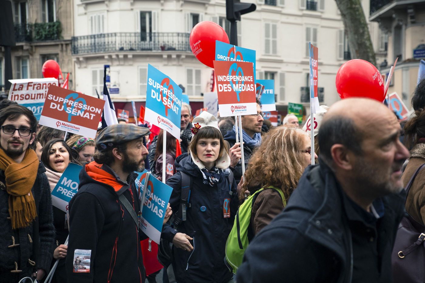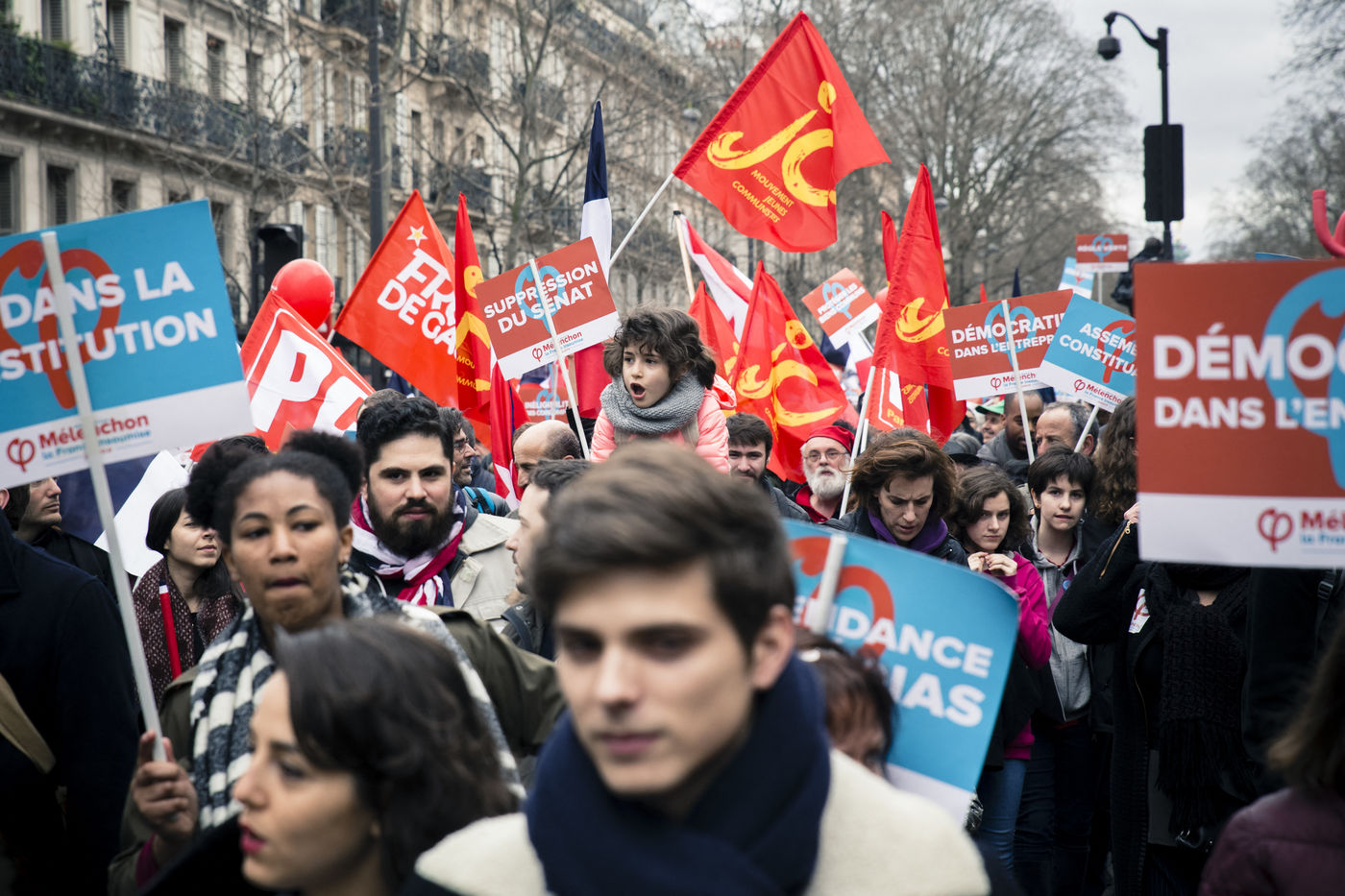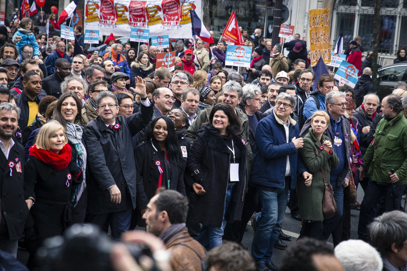 Saturday, March 18, 2017: March for the 6th Republic at the call of presidential candidate Jean Luc Melenchon. According to France Insoumise, nearly 130,000 people converged from the Bastille to the Republic Square, to listen to his speech.