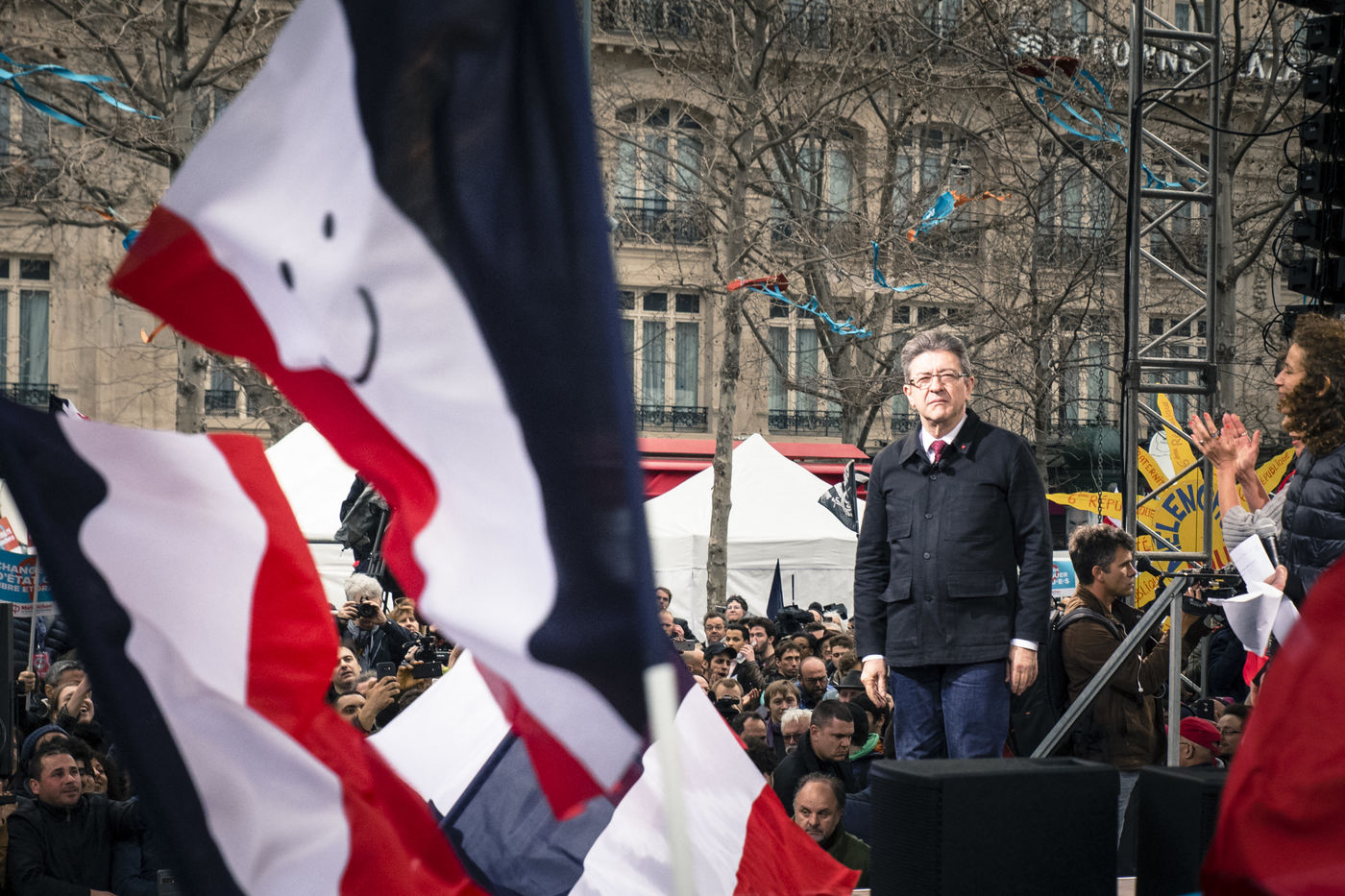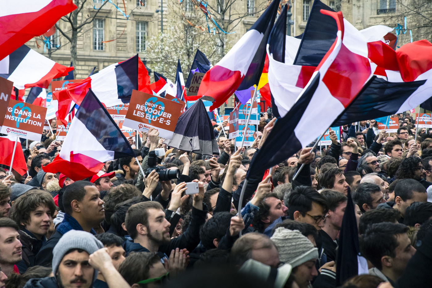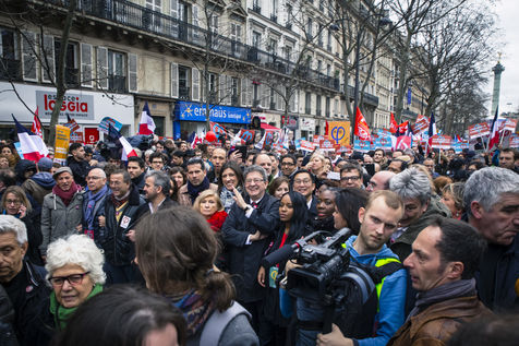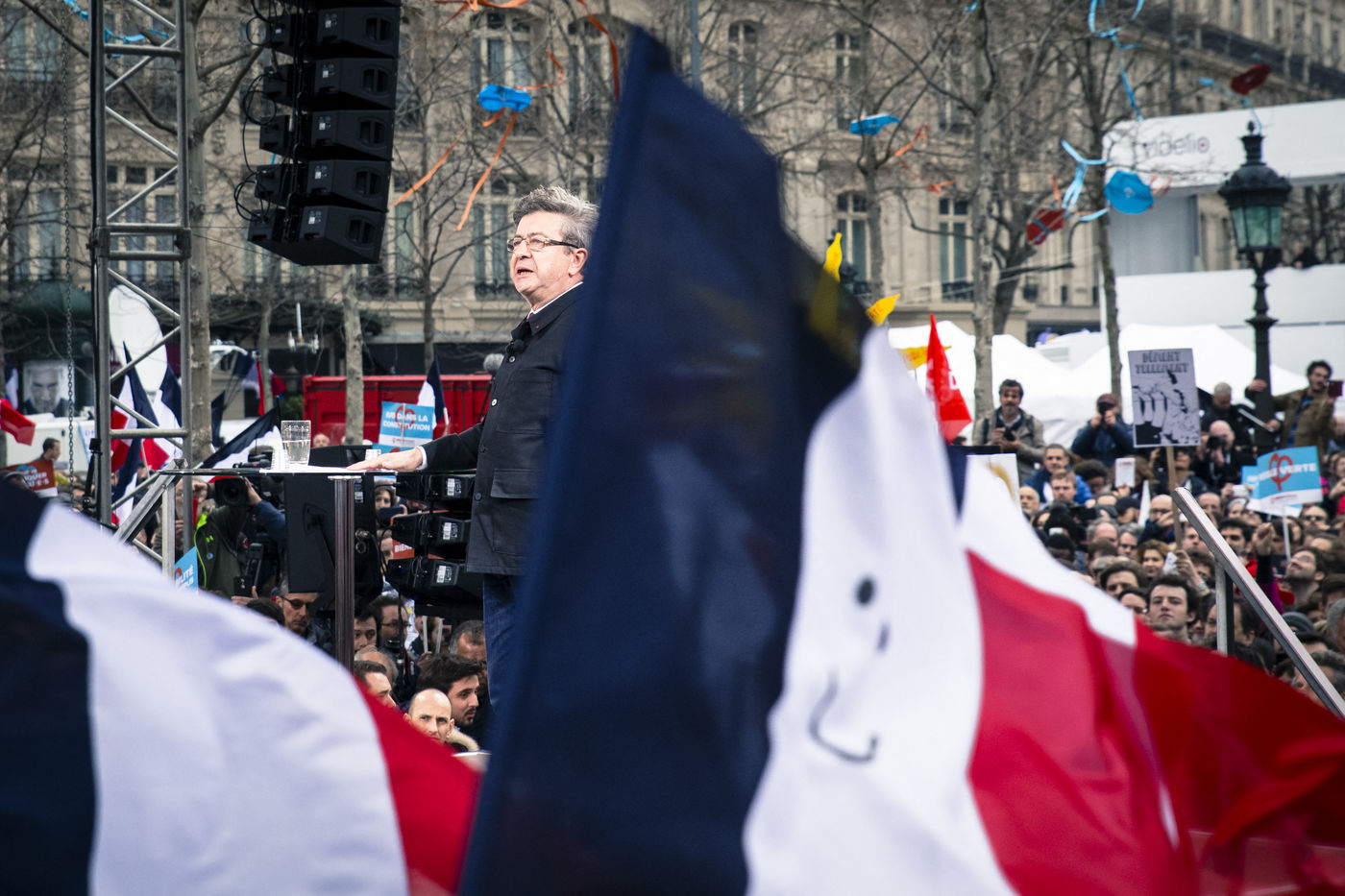 Saturday, March 18, 2017: March for the 6th Republic at the call of presidential candidate Jean Luc Melenchon. According to France Insoumise, nearly 130,000 people converged from the Bastille to the Republic Square, to listen to his speech.