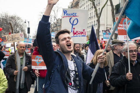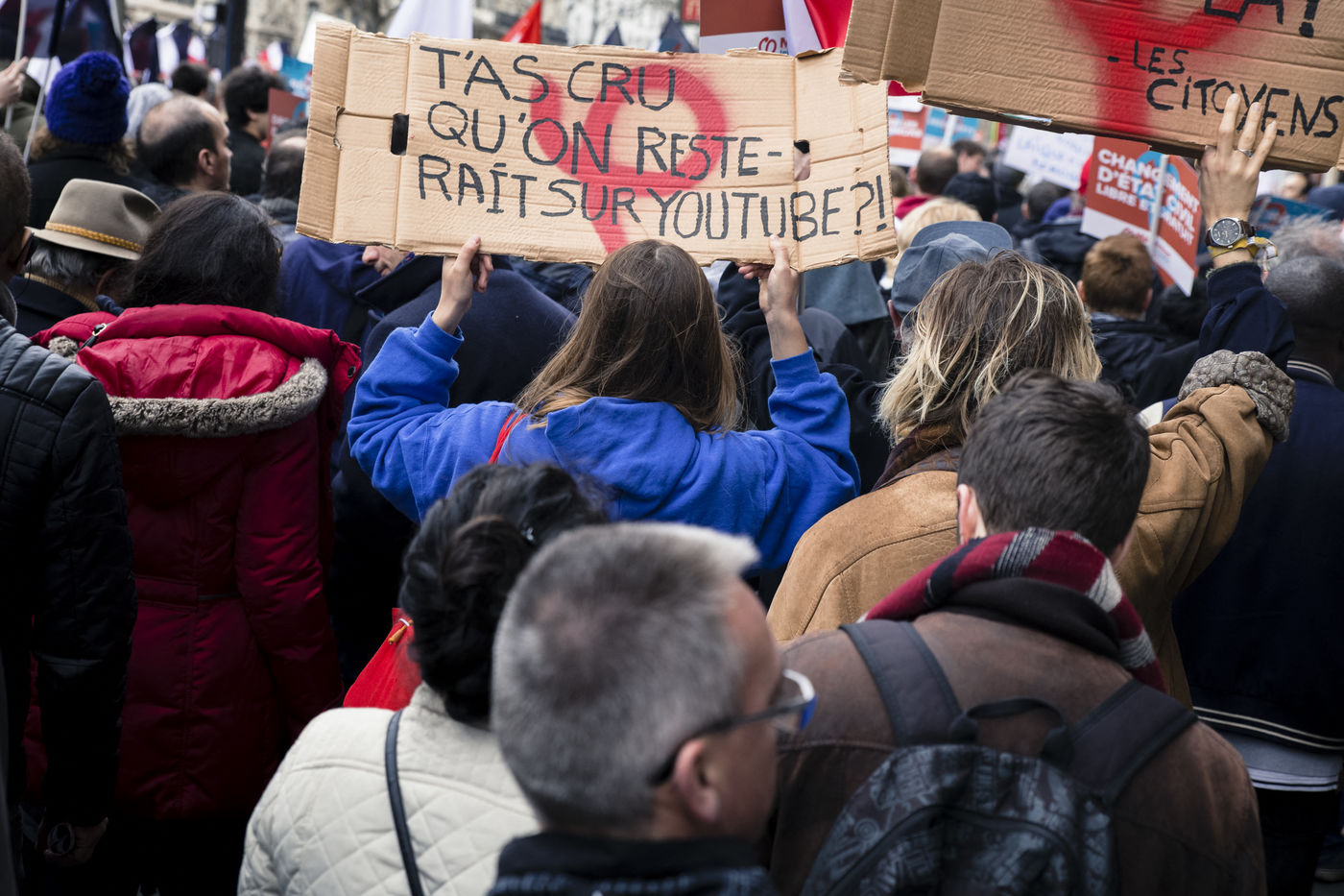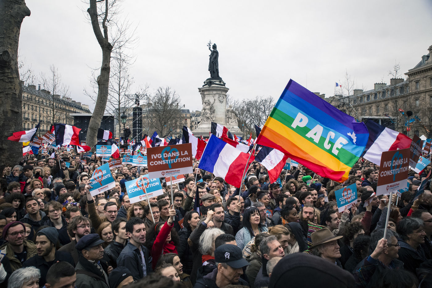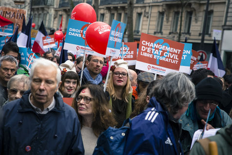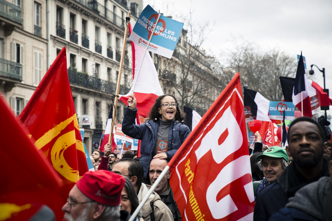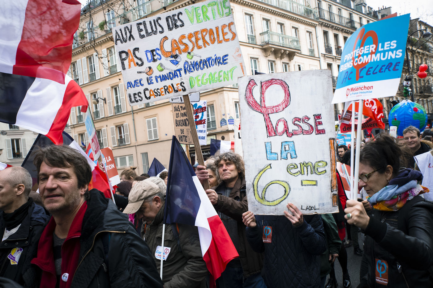 Saturday, March 18, 2017: March for the 6th Republic at the call of presidential candidate Jean Luc Melenchon. According to France Insoumise, nearly 130,000 people converged from the Bastille to the Republic Square, to listen to his speech.