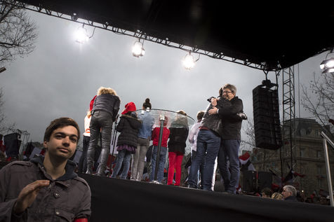 France, Paris, samedi 18 mars 2017: Marche pour la 6eme République a l'appel du candidat à la presidentielle Jean Luc Melenchon. Selon la France Insoumise, près 130 000 personnes ont convergé de Bastille à la place de la République, pour y écouter son discours.