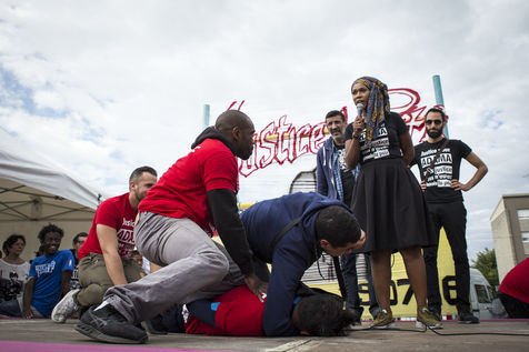 FRANCE, Beaumont-sur-Oise (95), Saturday, July 22, 2017. Commemorative march in homage to Adama Traore, died during his arrest by the gendarmes on July 19, 2016.