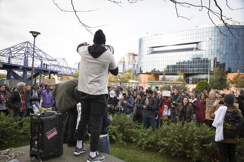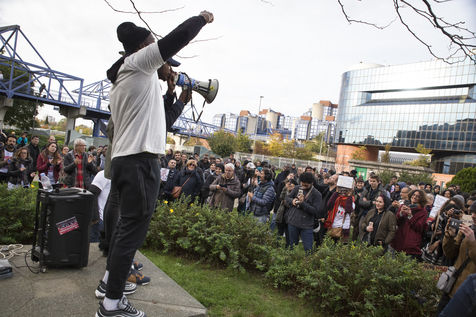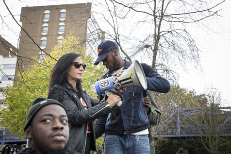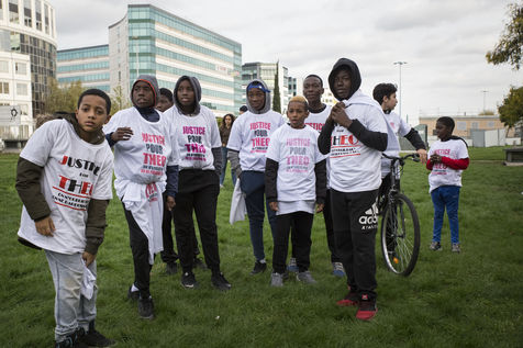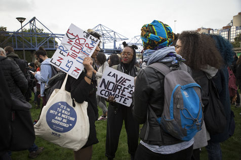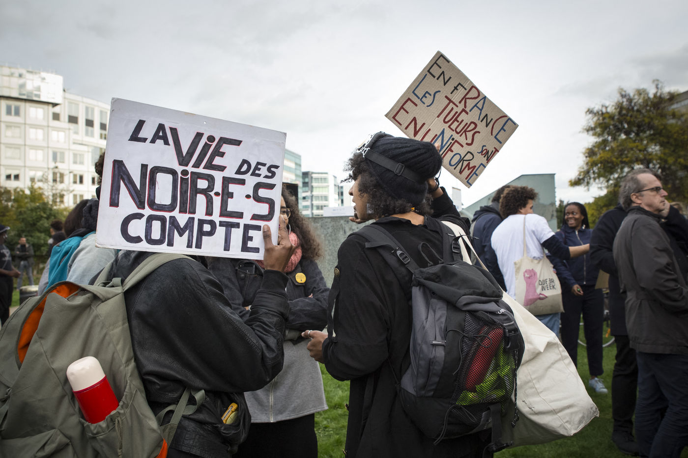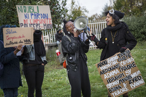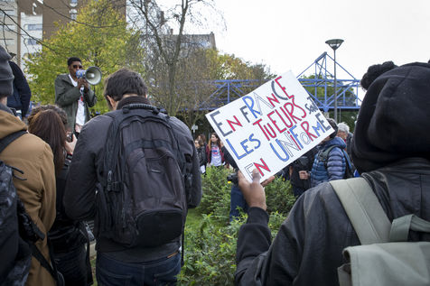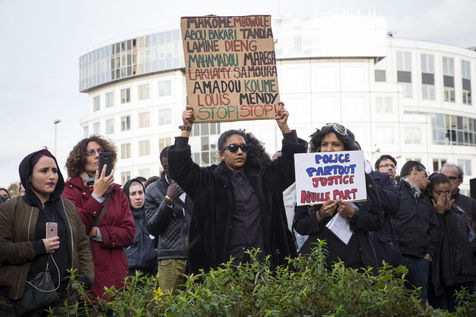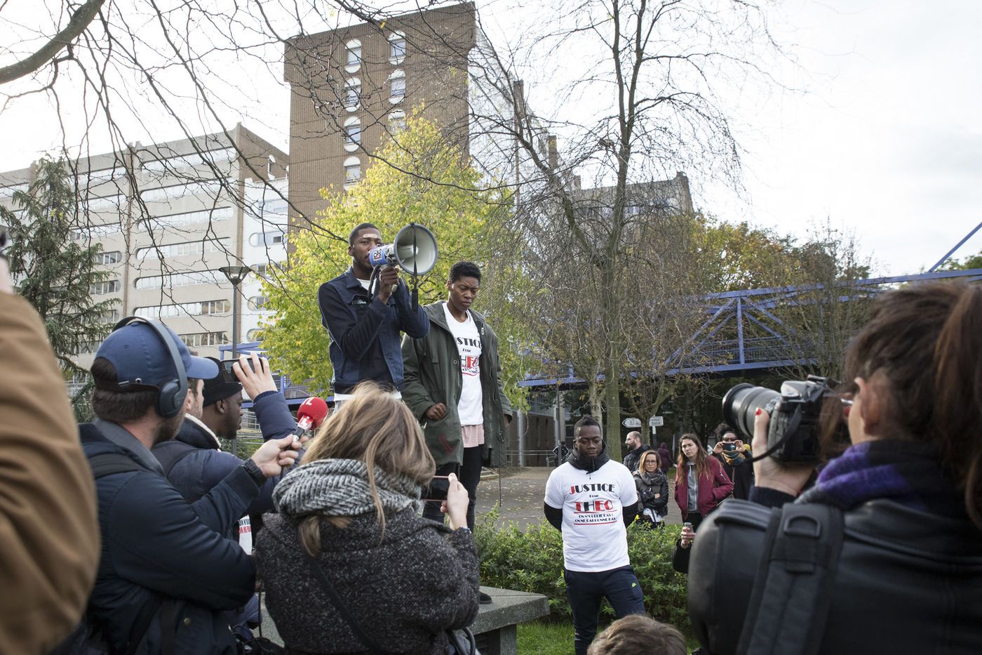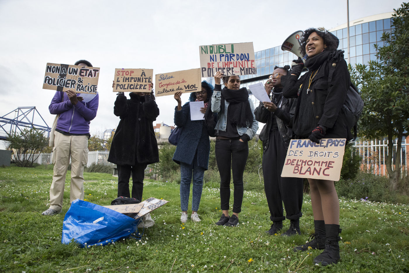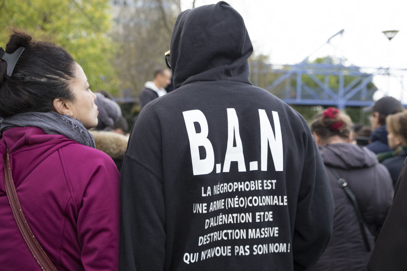 France, Bobigny (93), October 28, 2017. Gathering in front of the court of Justice in tribute and claiming Justice for Theo Luhaka, a young man seriously wounded and allegedly raped during a police control in Aulnay-sous-Bois.