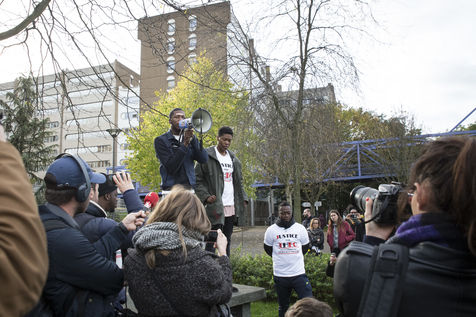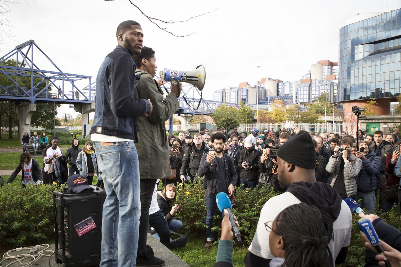 France, Bobigny (93) le 28 octobre 2017. Rassemblement devant le Tribunal de Bobigny réclamant Justice pour Theo Luhaka, un jeune homme d'Aulnay-sous-Bois gravement blessé et victime d'un viol présumé lors d'un control de police.