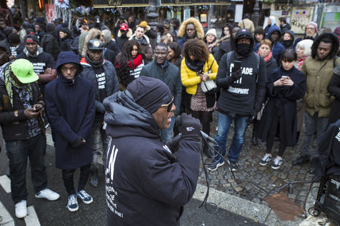 Gare du Nord, Paris, France. Dimanche 3 décembre 2017 : Rassemblement en hommage à Massar, jeune homme de 20 ans décédé suite à une interpellation policière.