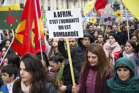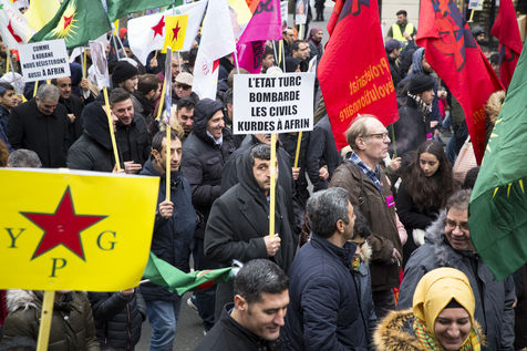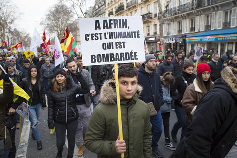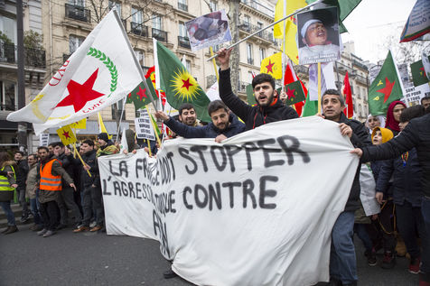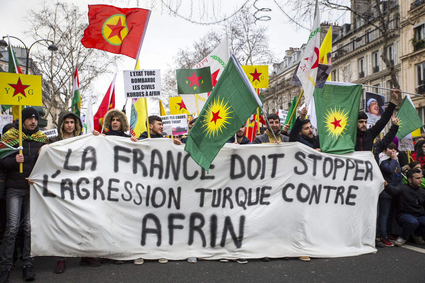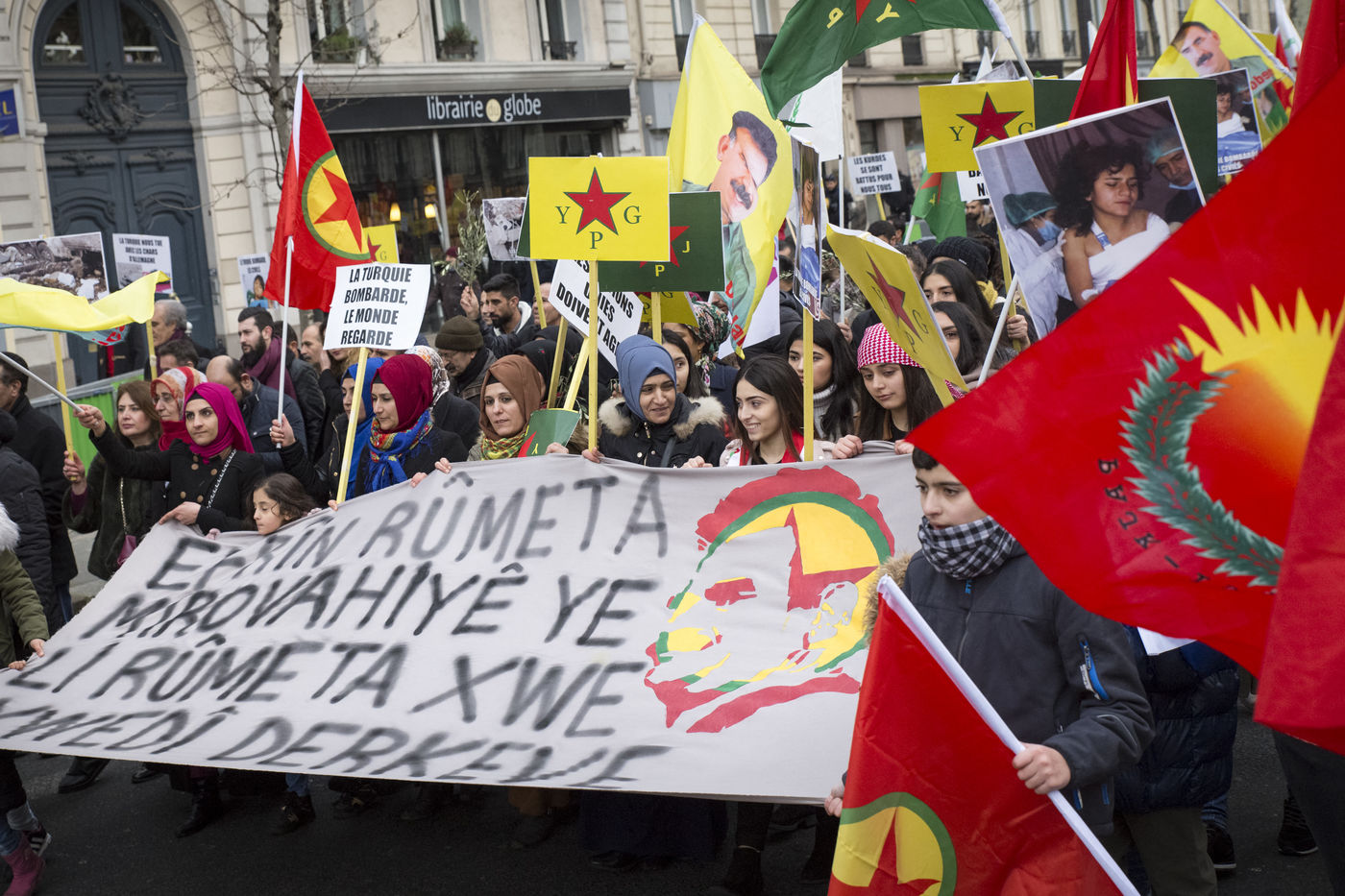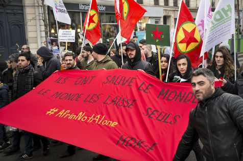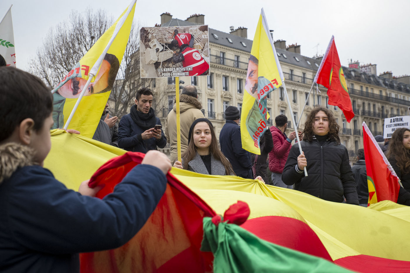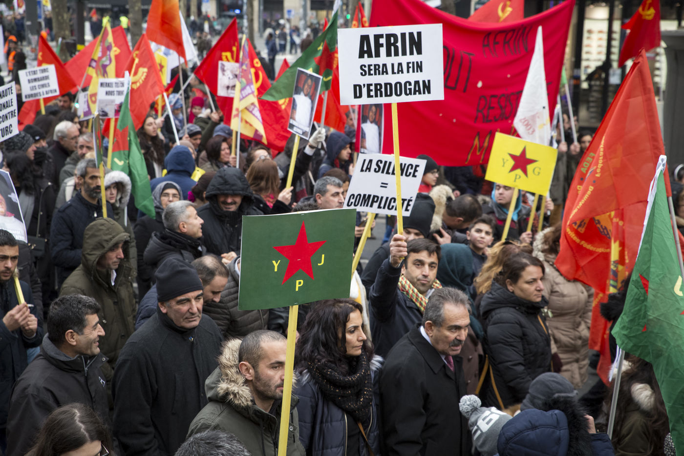 Paris, France, January 27, 2018. Demonstration of the Kurdish community to denounce the aggression of the Turkish army against the city of Afrin in northwestern Syria. On Saturday, January 20, Erdogan launched the military operation "Olive Branch" in this isolated canton in west of Rojava.