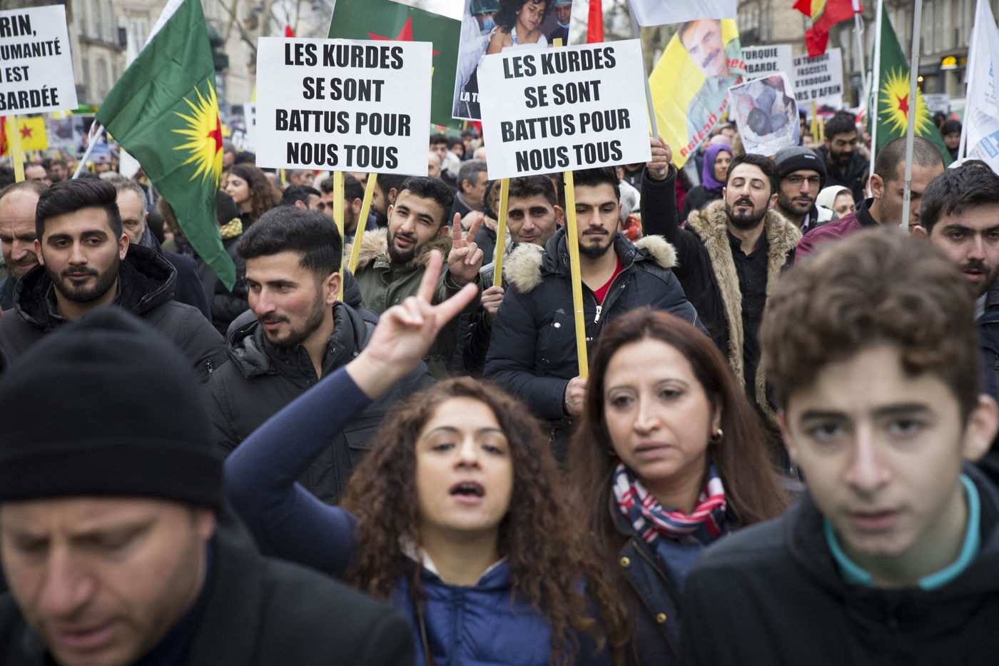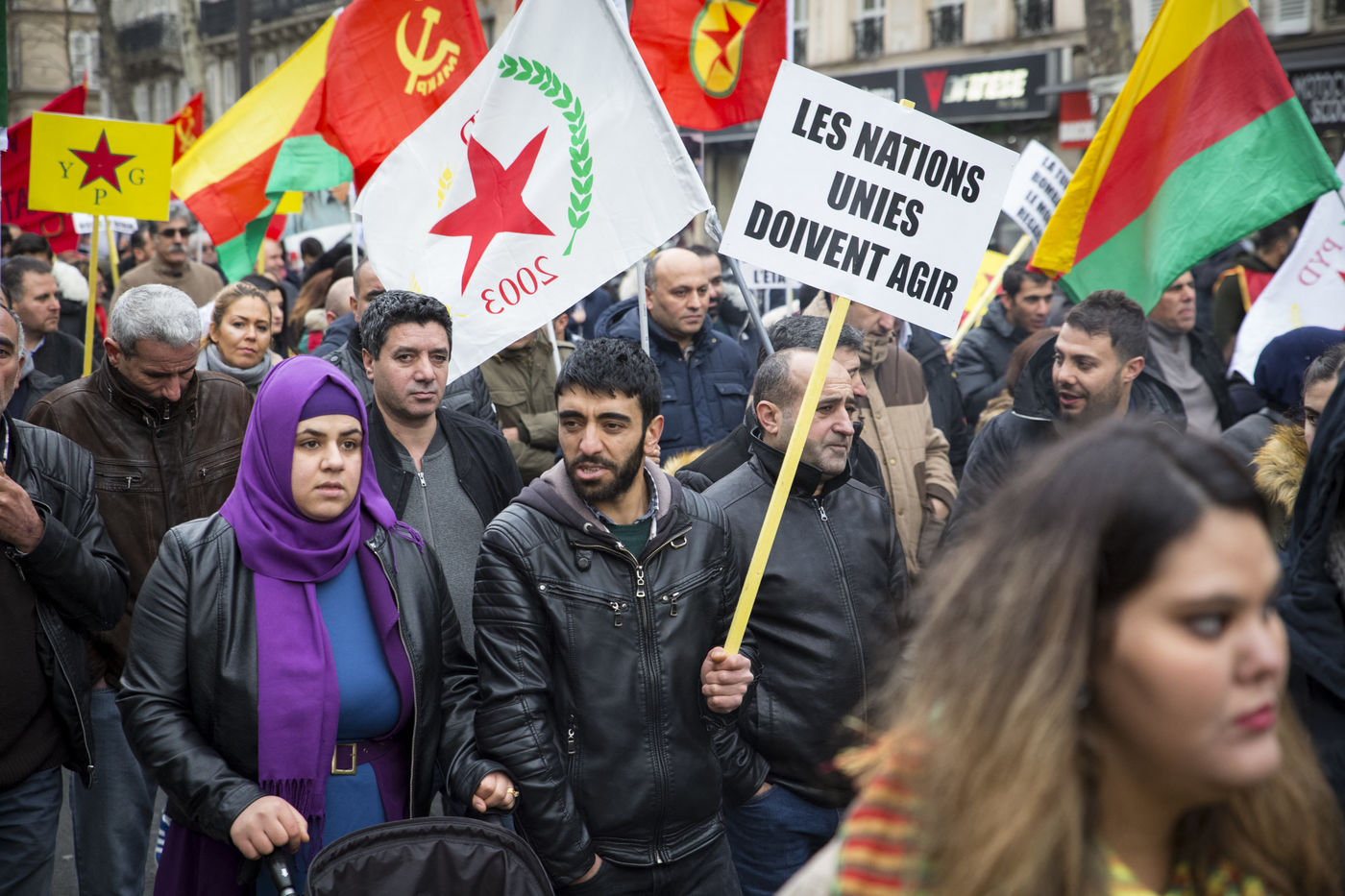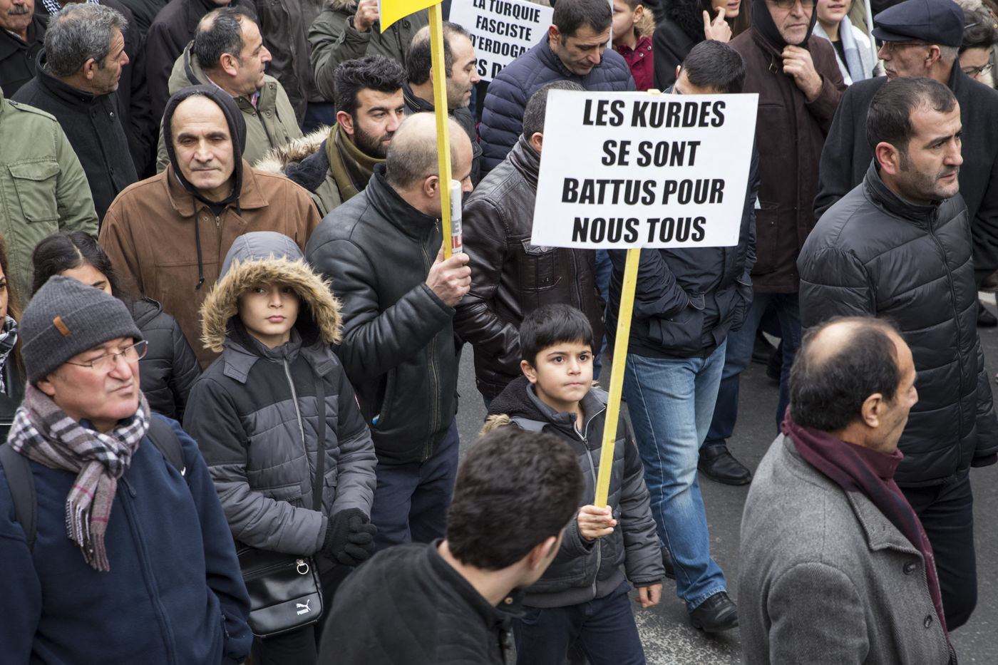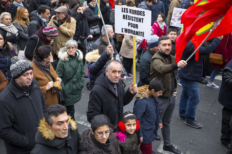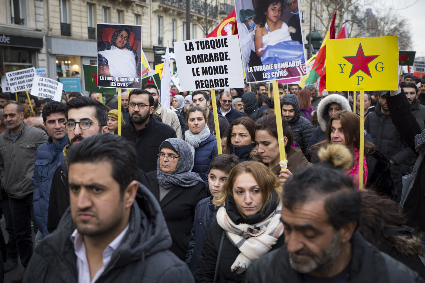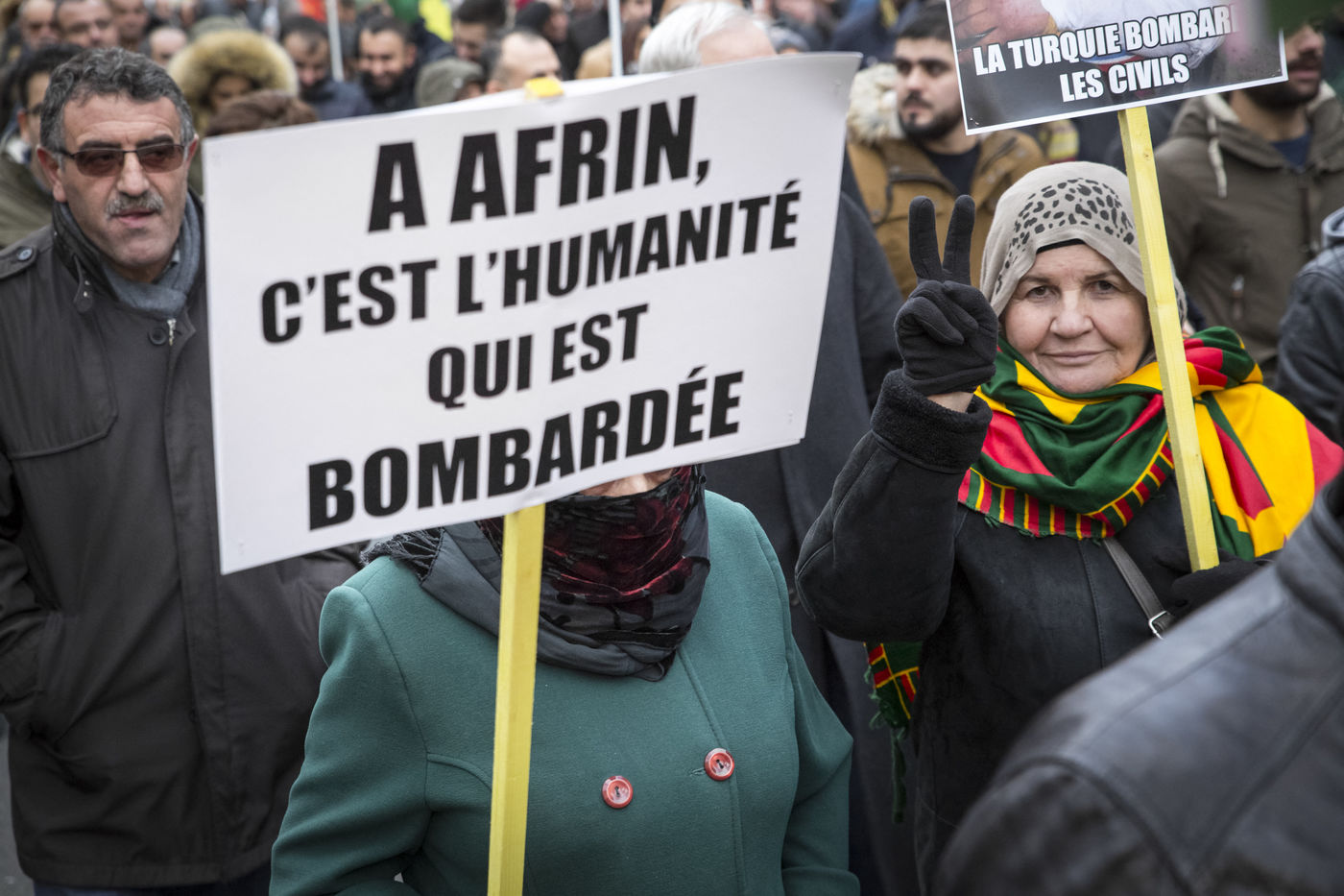Paris, France, January 27, 2018. Demonstration of the Kurdish community to denounce the aggression of the Turkish army against the city of Afrin in northwestern Syria. On Saturday, January 20, Erdogan launched the military operation "Olive Branch" in this isolated canton in west of Rojava.