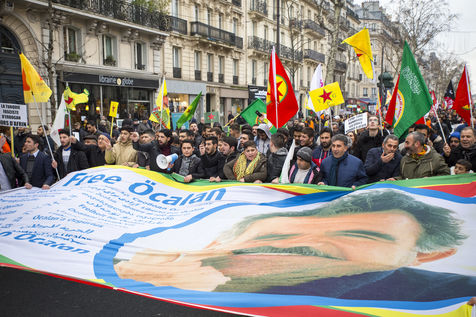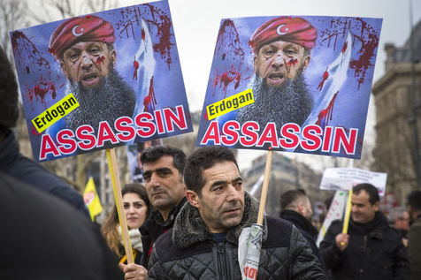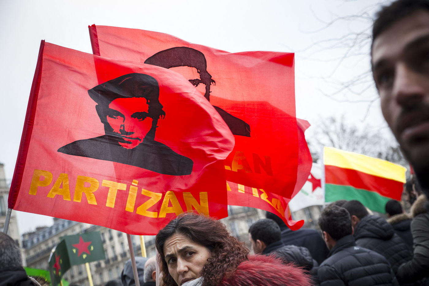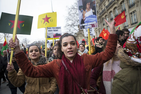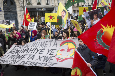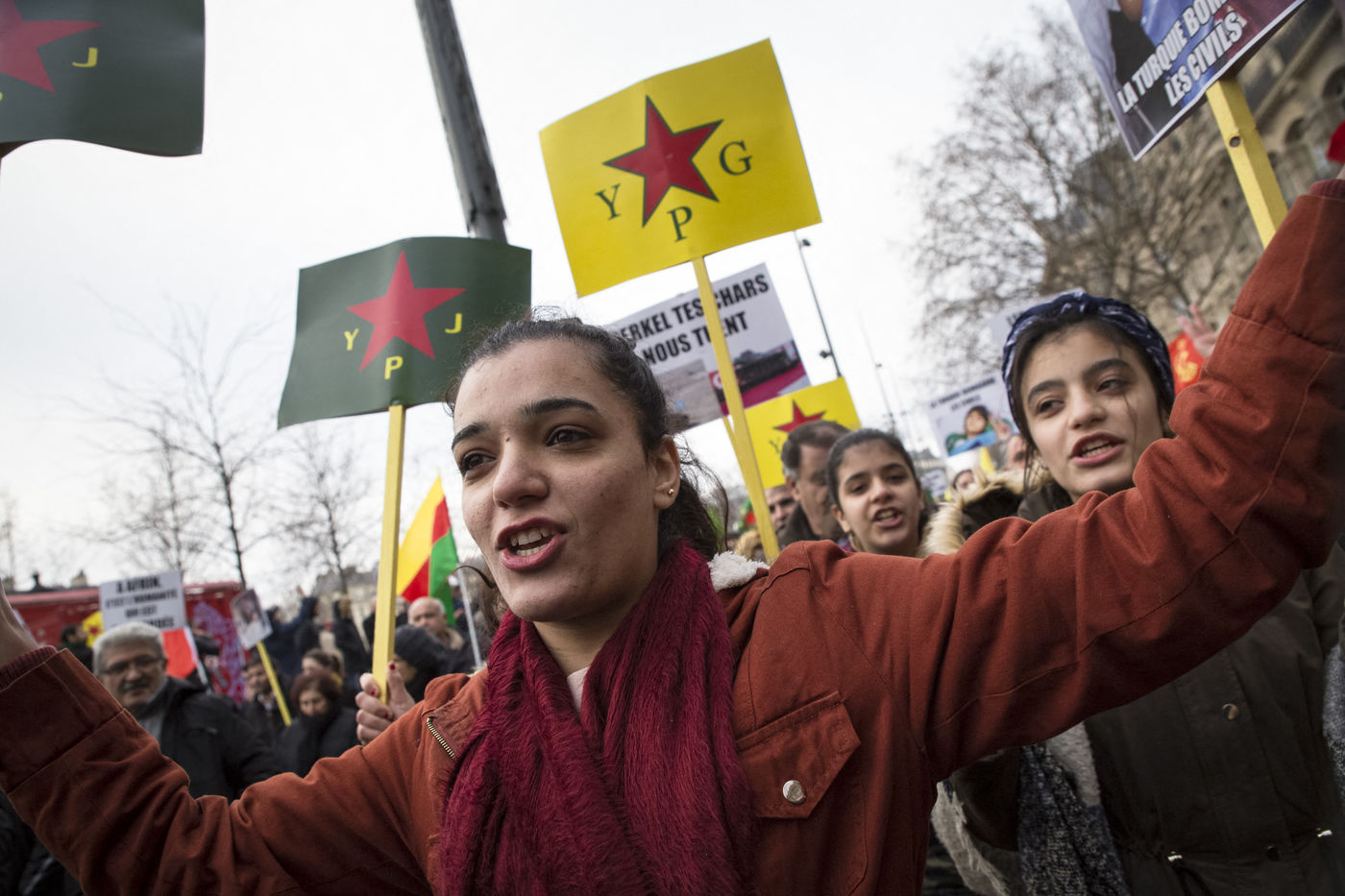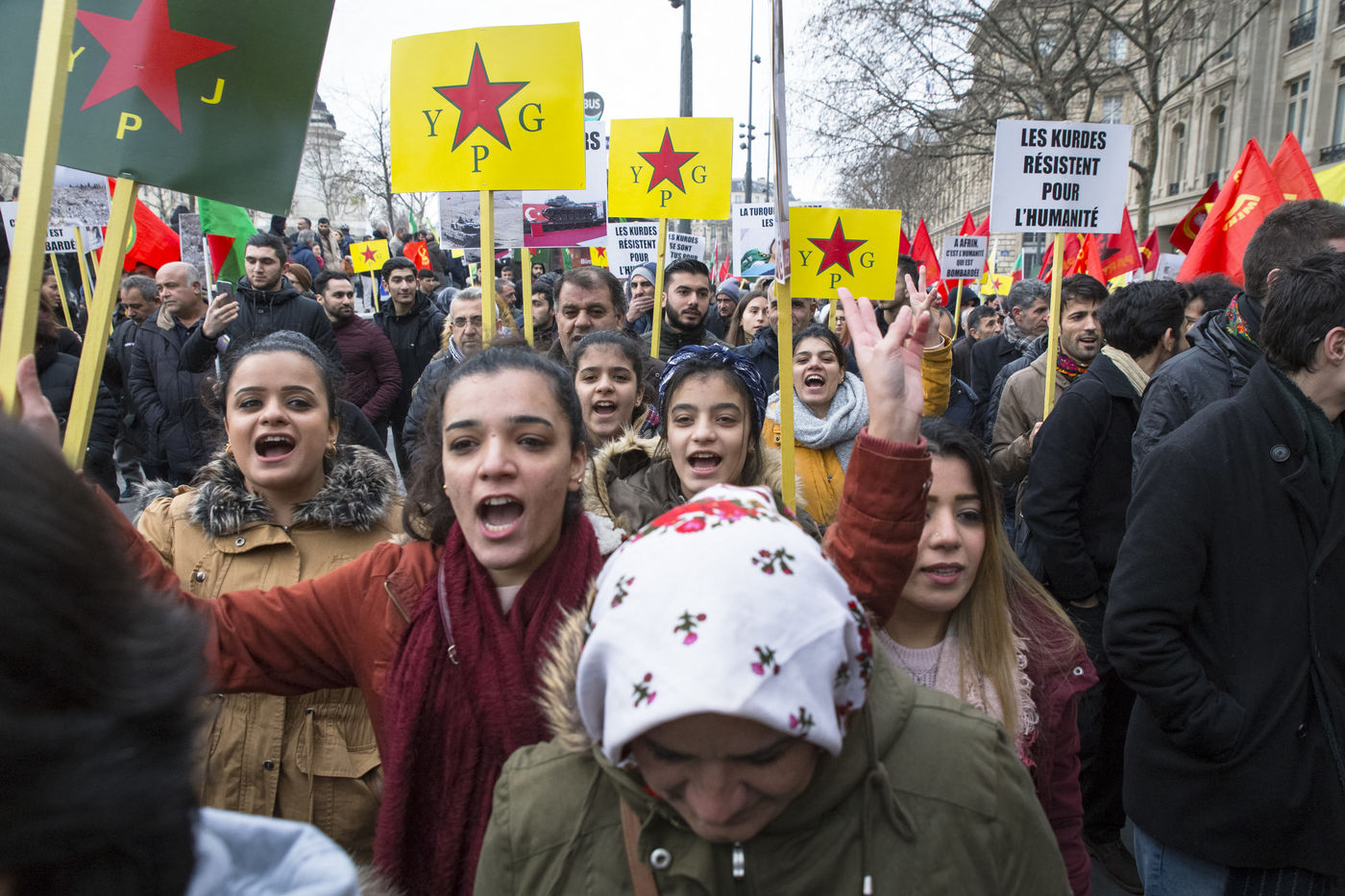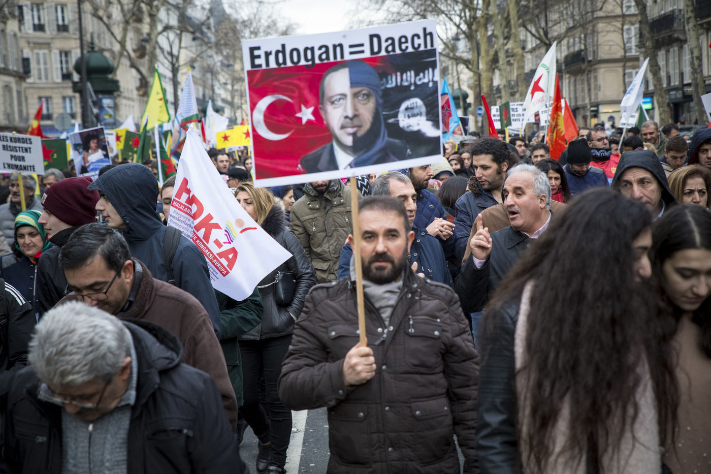 Paris, France, January 27, 2018. Demonstration of the Kurdish community to denounce the aggression of the Turkish army against the city of Afrin in northwestern Syria. On Saturday, January 20, Erdogan launched the military operation "Olive Branch" in this isolated canton in west of Rojava.