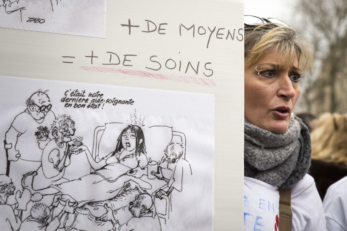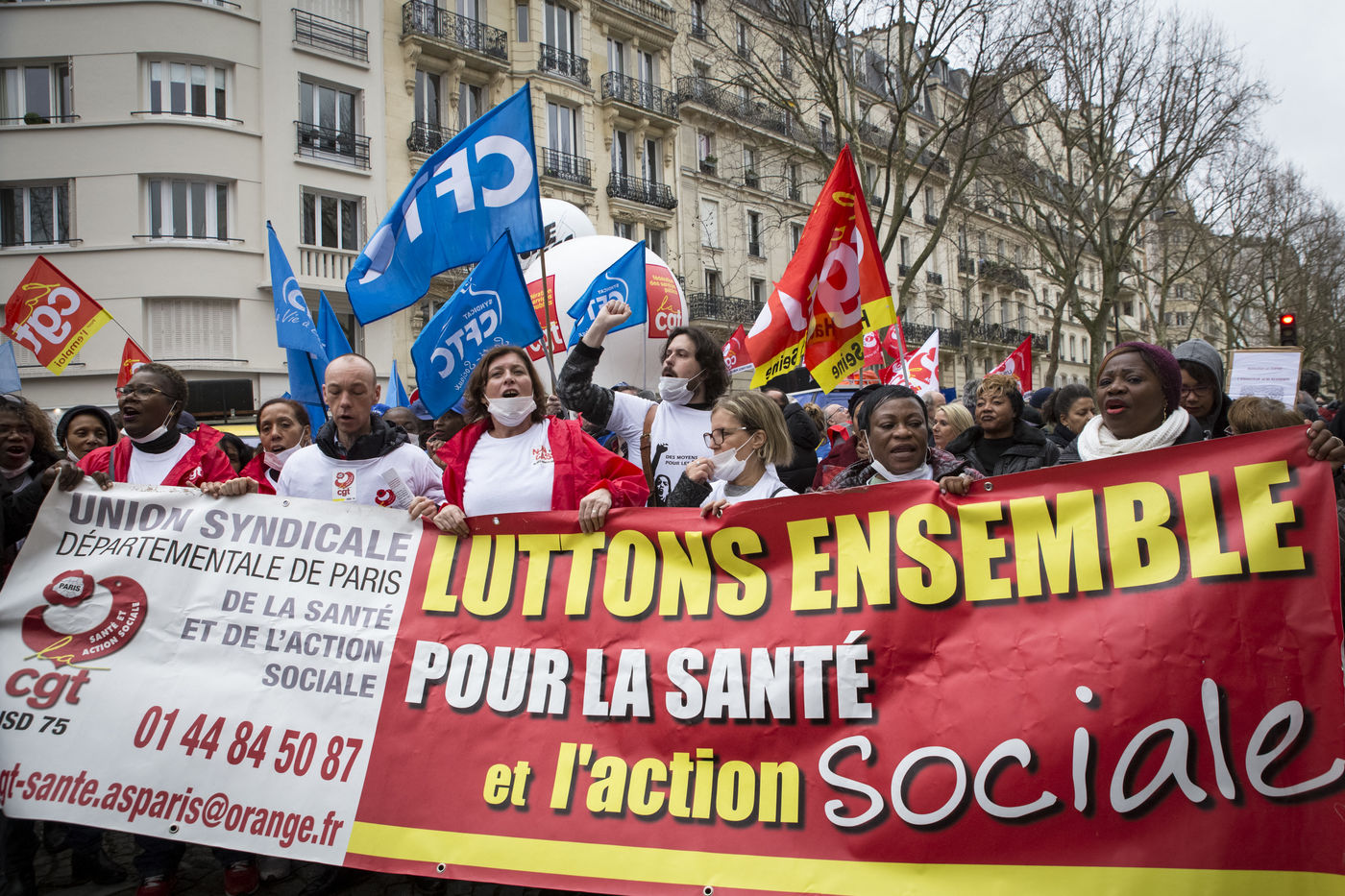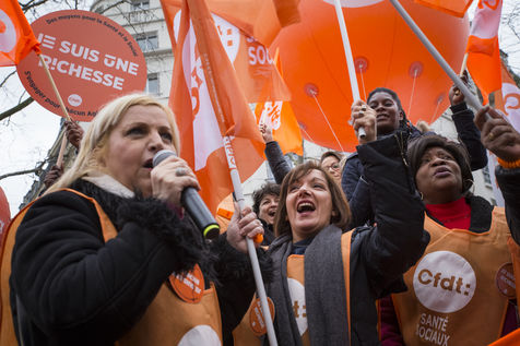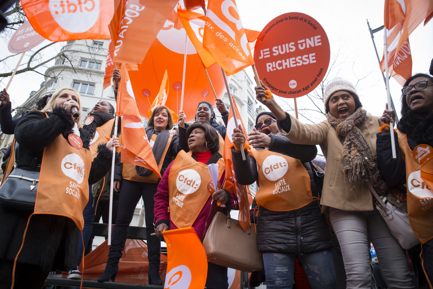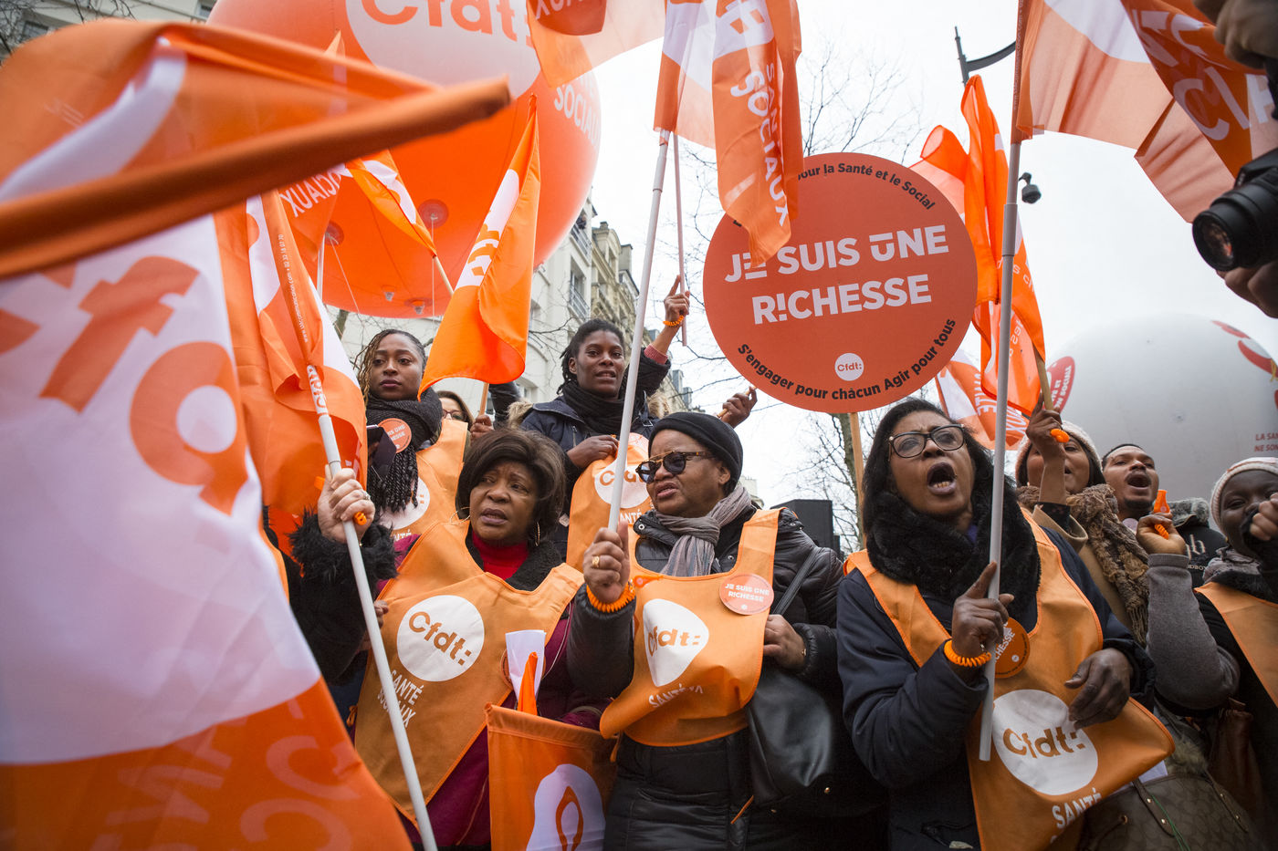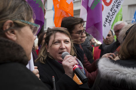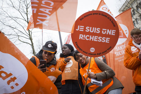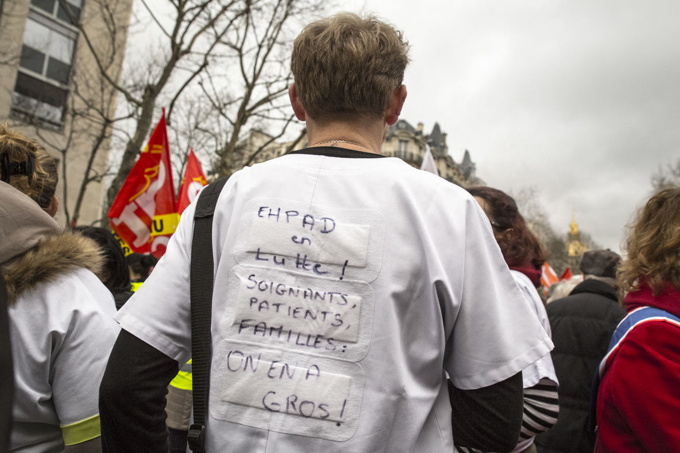 Tuesday, January 30, 2018. Paris, France. The staff of EHPAD demonstrated in front of the Ministry of Solidarity and Health. Mobilization at the call of a large inter-union (CGT, CFDT, FO, Unsa, CFTC, CFE-CGC and SUD), with the support of the Association of Directors Serving the Elderly (AD-PA), the French Hospital Federation and several associations of retirees.