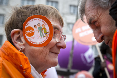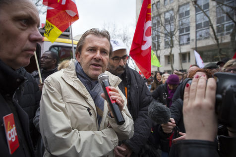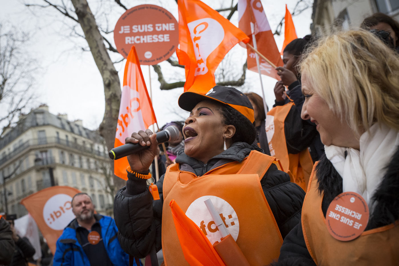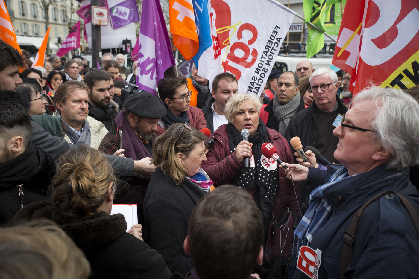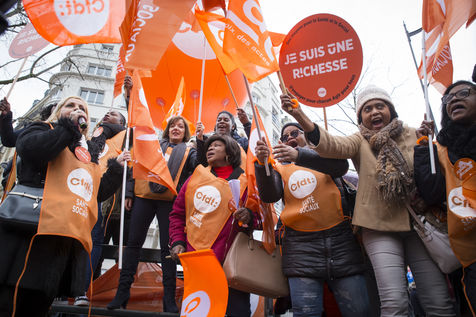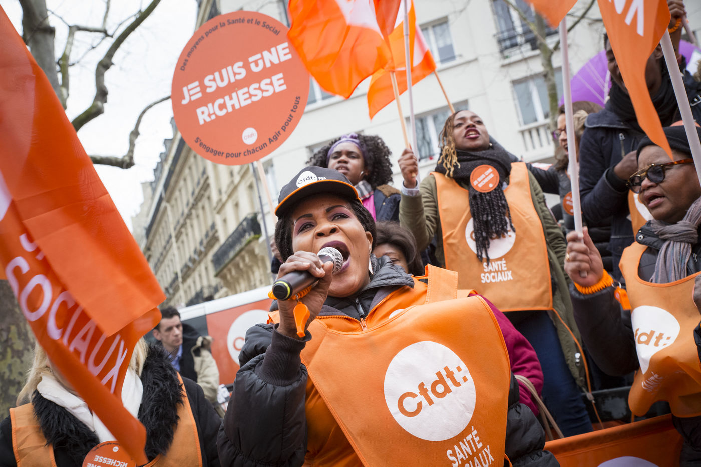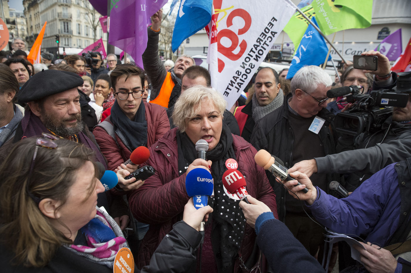 Tuesday, January 30, 2018. Paris, France. The staff of EHPAD demonstrated in front of the Ministry of Solidarity and Health. Mobilization at the call of a large inter-union (CGT, CFDT, FO, Unsa, CFTC, CFE-CGC and SUD), with the support of the Association of Directors Serving the Elderly (AD-PA), the French Hospital Federation and several associations of retirees.
