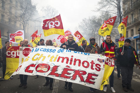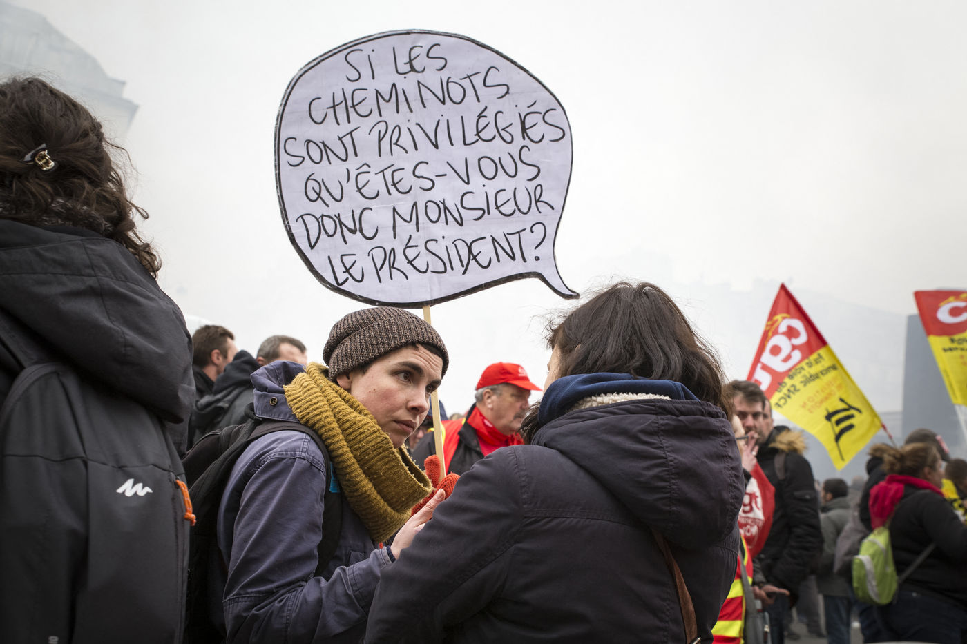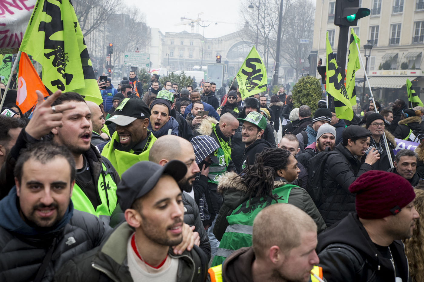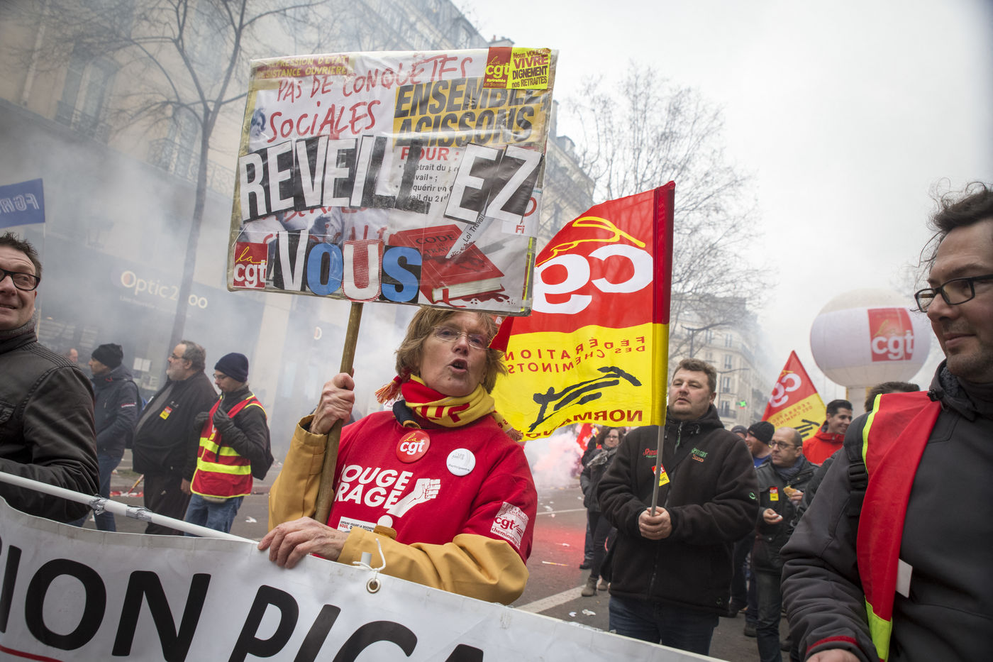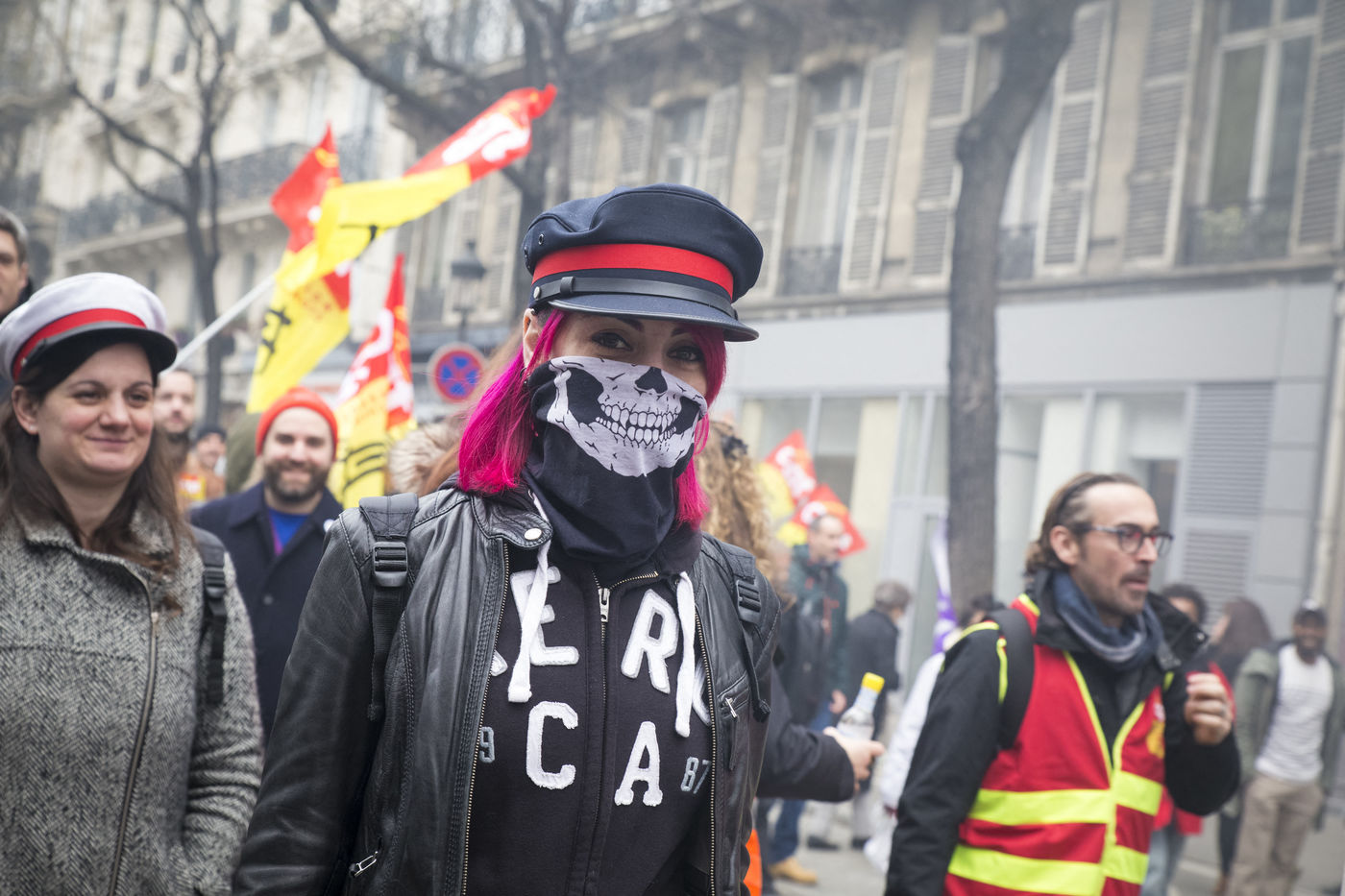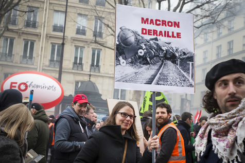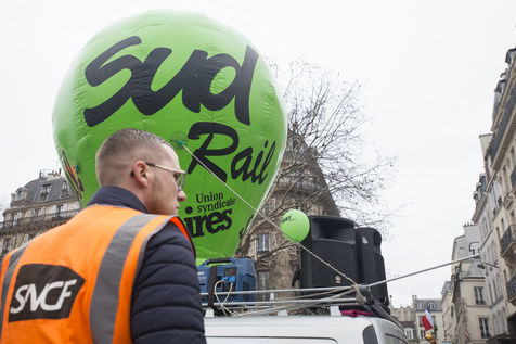 France, Paris March 22, 2018: National demonstration of railway workers to defend their status, and fight against the SNCF reform project.