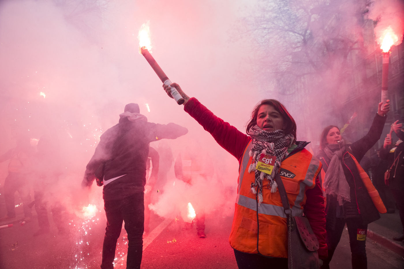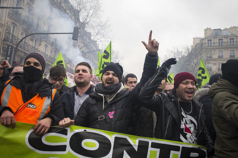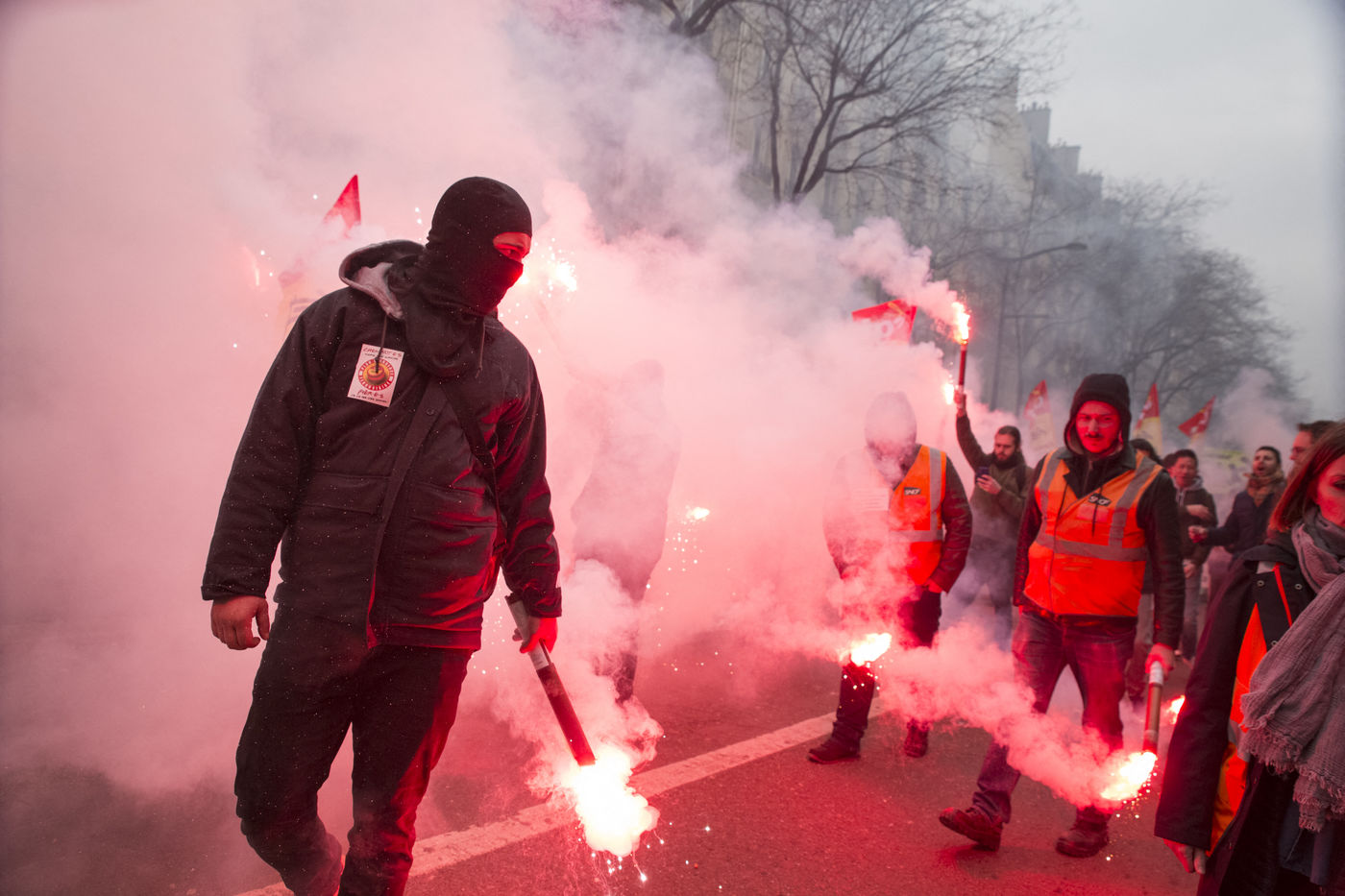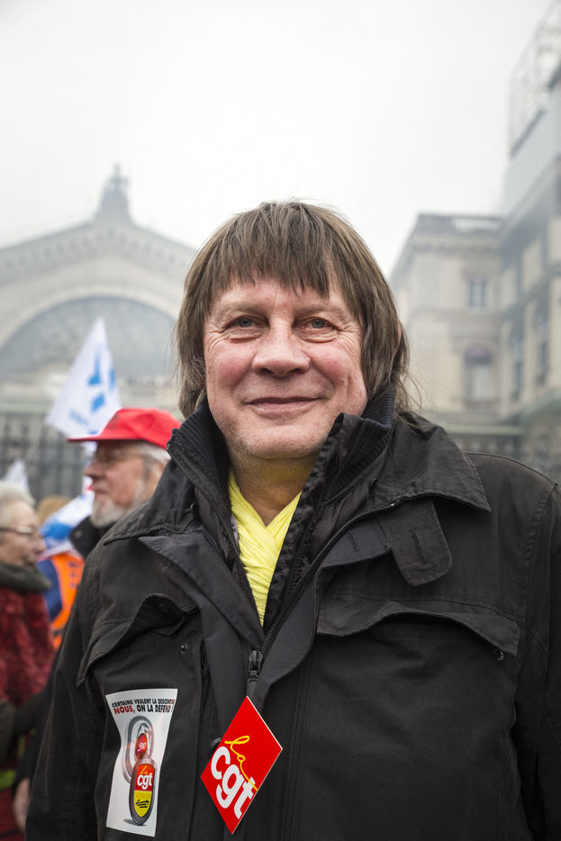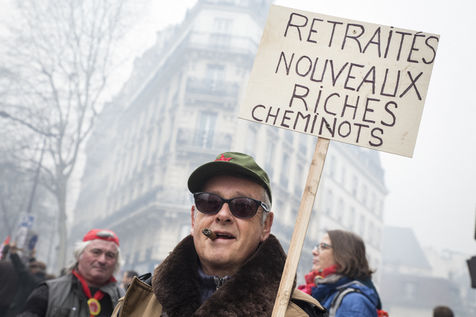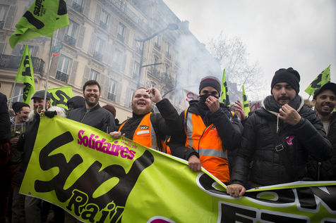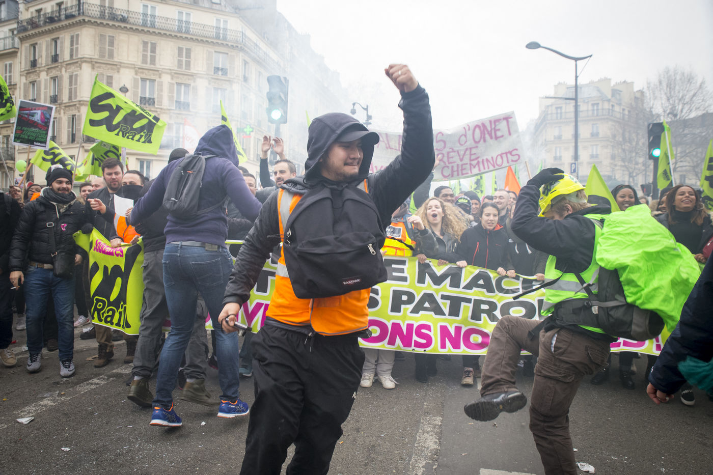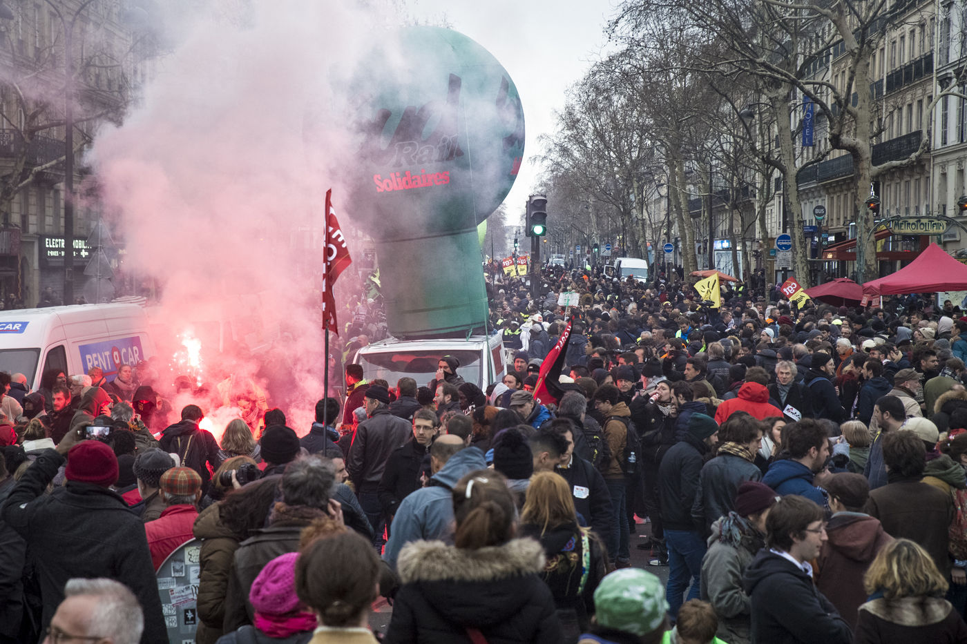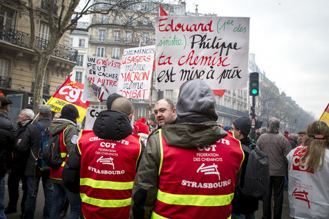 France, Paris March 22, 2018: National demonstration of railway workers to defend their status, and fight against the SNCF reform project.
