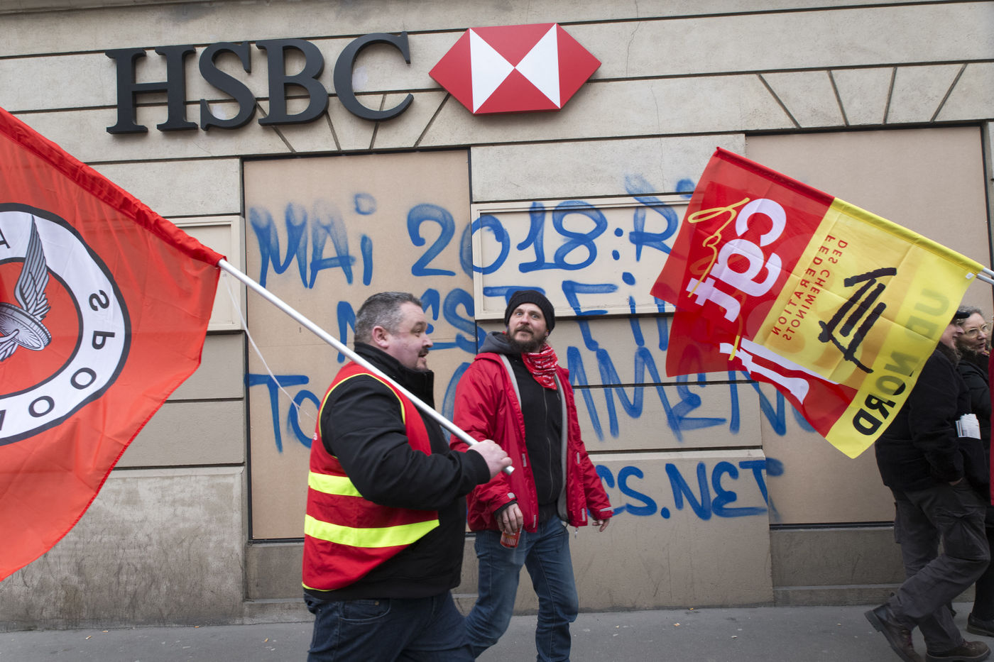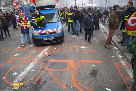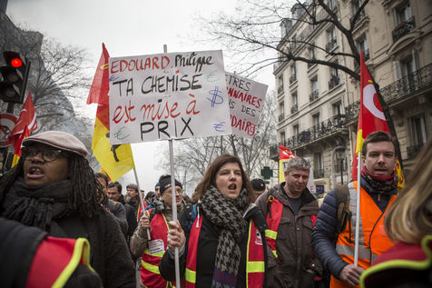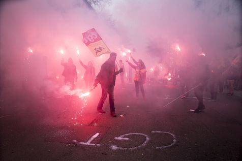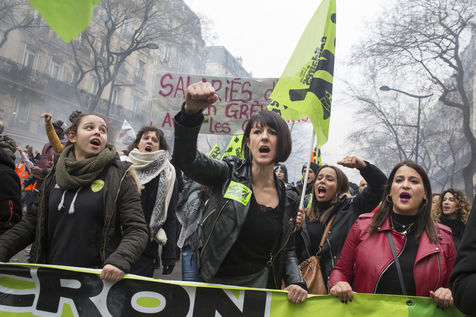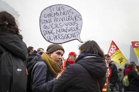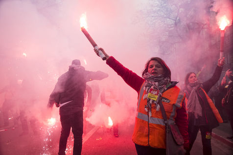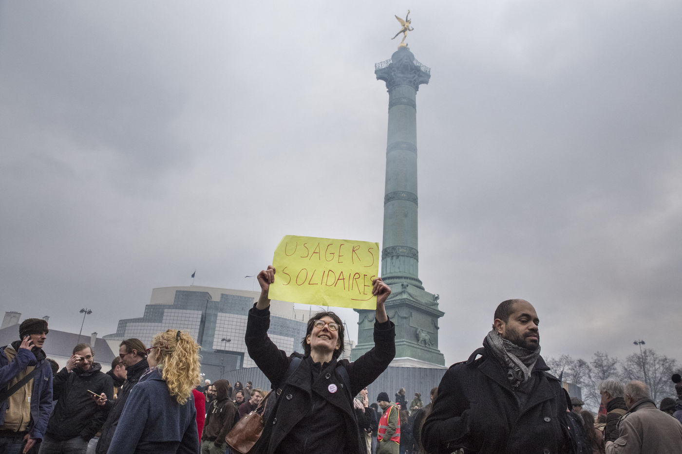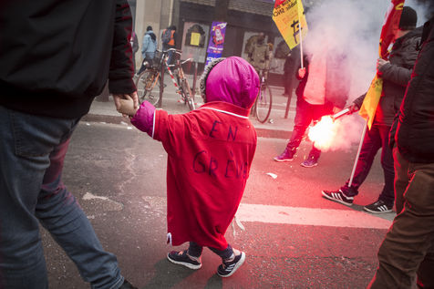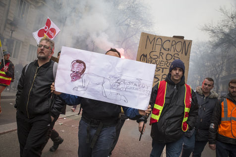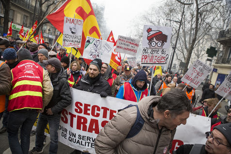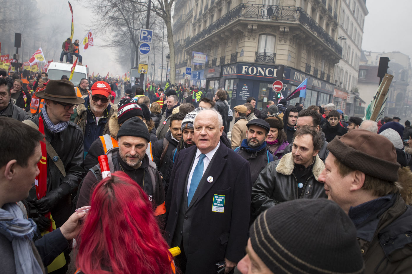 France, Paris March 22, 2018: National demonstration of railway workers to defend their status, and fight against the SNCF reform project.