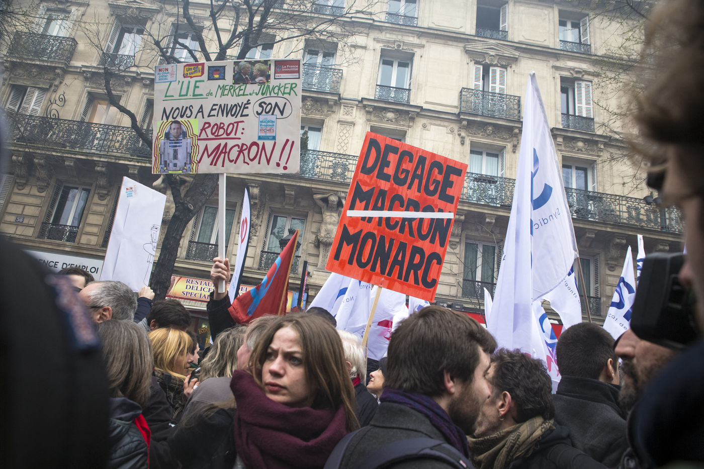 France, Paris le 22 mars 2018: Manifestation nationale des cheminots pour défendre leur statut, et lutter contre le projet de réforme de la SNCF.