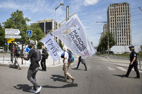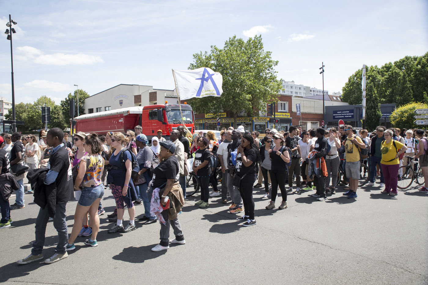 Le 21 juin 2018. Etape 45 de Paris à Sarcelles / Etapes parisiennes de la marche citoyenne solidaire pour les migrants.