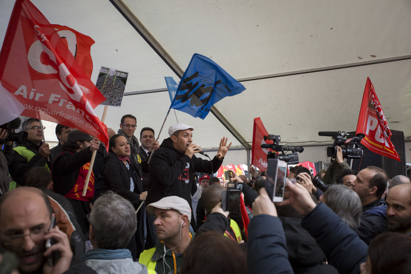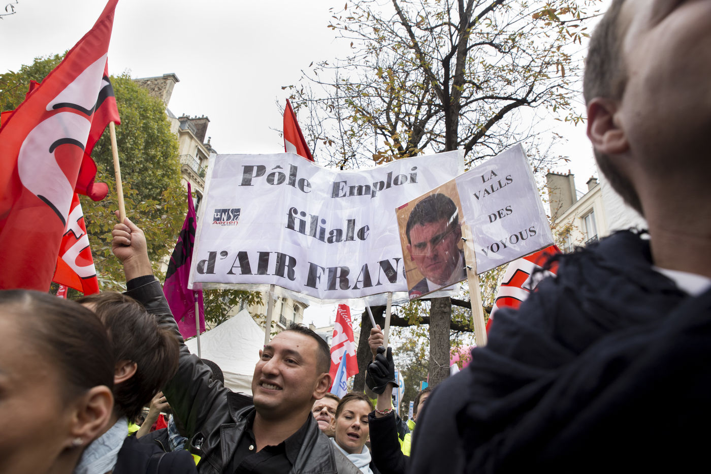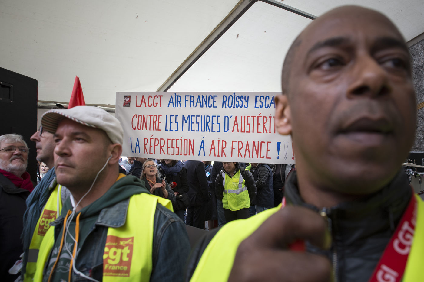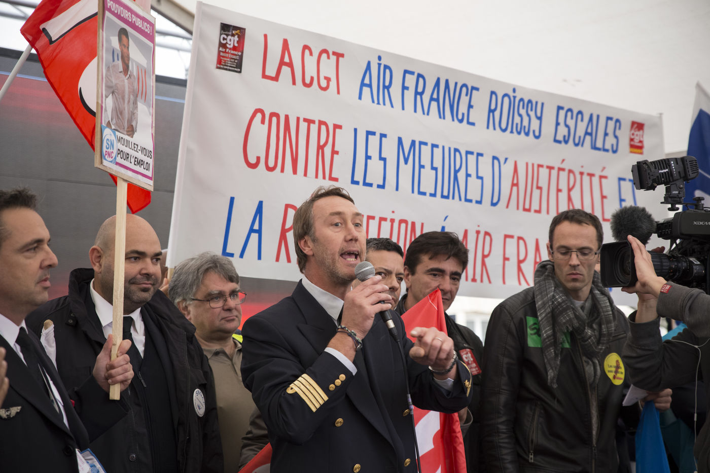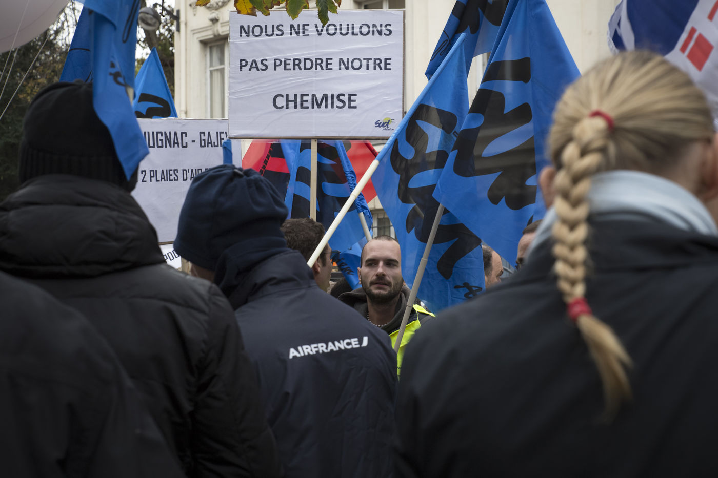 At the call of twelve unions (CGT, SNPAF, FO, CFTC, ALTER, SNPL, SNPNAC, SNPNC, SPAF, SUD-AERIEN, UNSA-PNC, UNAC), Air-France employees, both ground and aircrew, came to demonstrate their opposition to management's layoff plans and their support for their colleagues who were questioned following the events that took place during the CCE on October 5, 2015.