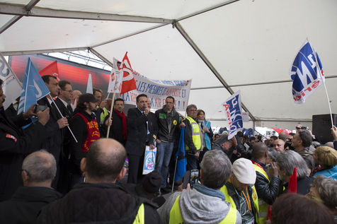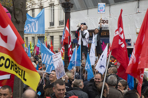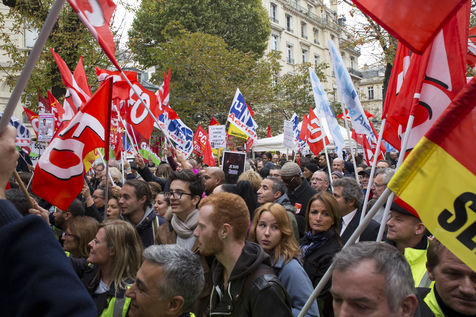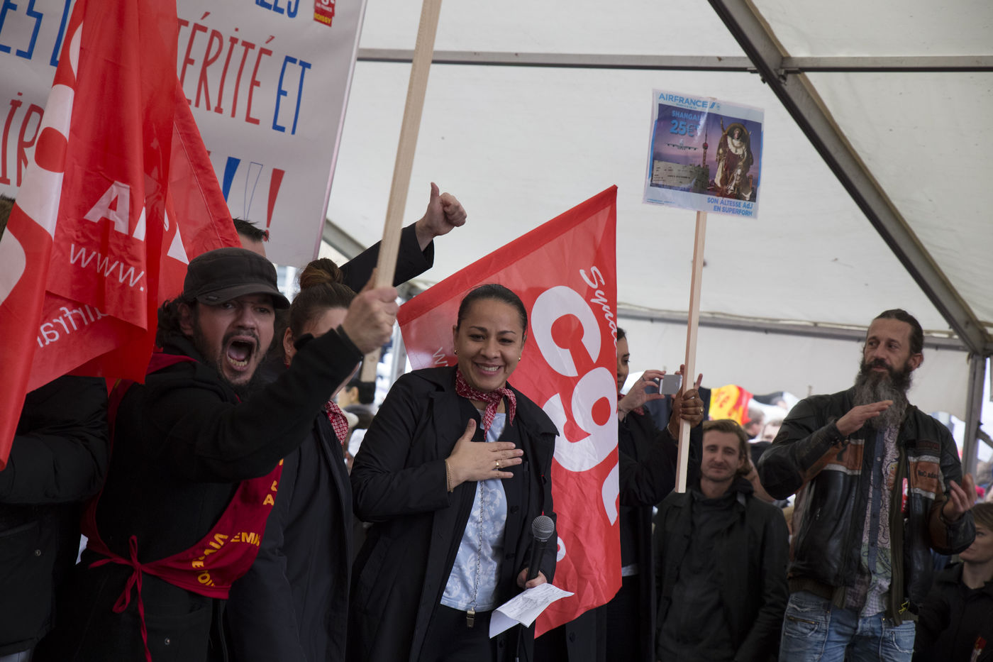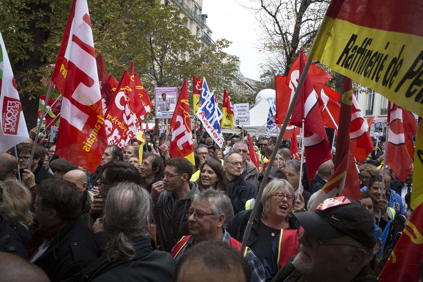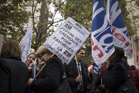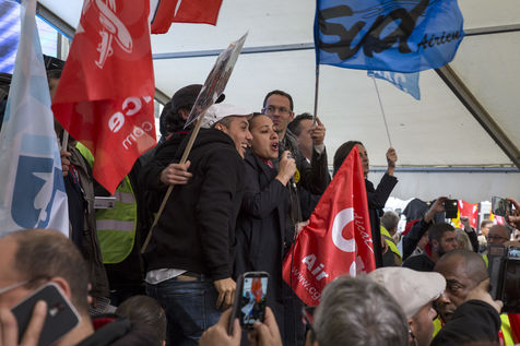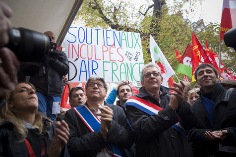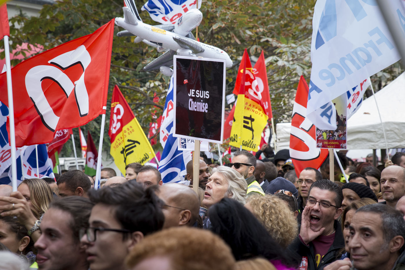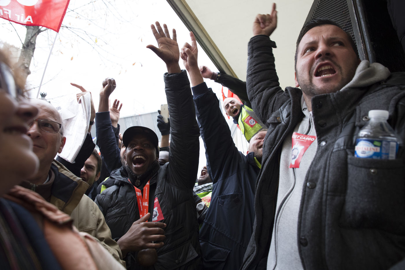 At the call of twelve unions (CGT, SNPAF, FO, CFTC, ALTER, SNPL, SNPNAC, SNPNC, SPAF, SUD-AERIEN, UNSA-PNC, UNAC), Air-France employees, both ground and aircrew, came to demonstrate their opposition to management's layoff plans and their support for their colleagues who were questioned following the events that took place during the CCE on October 5, 2015.