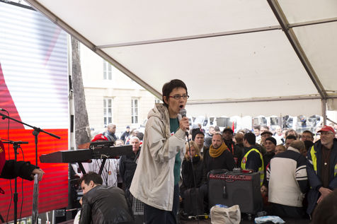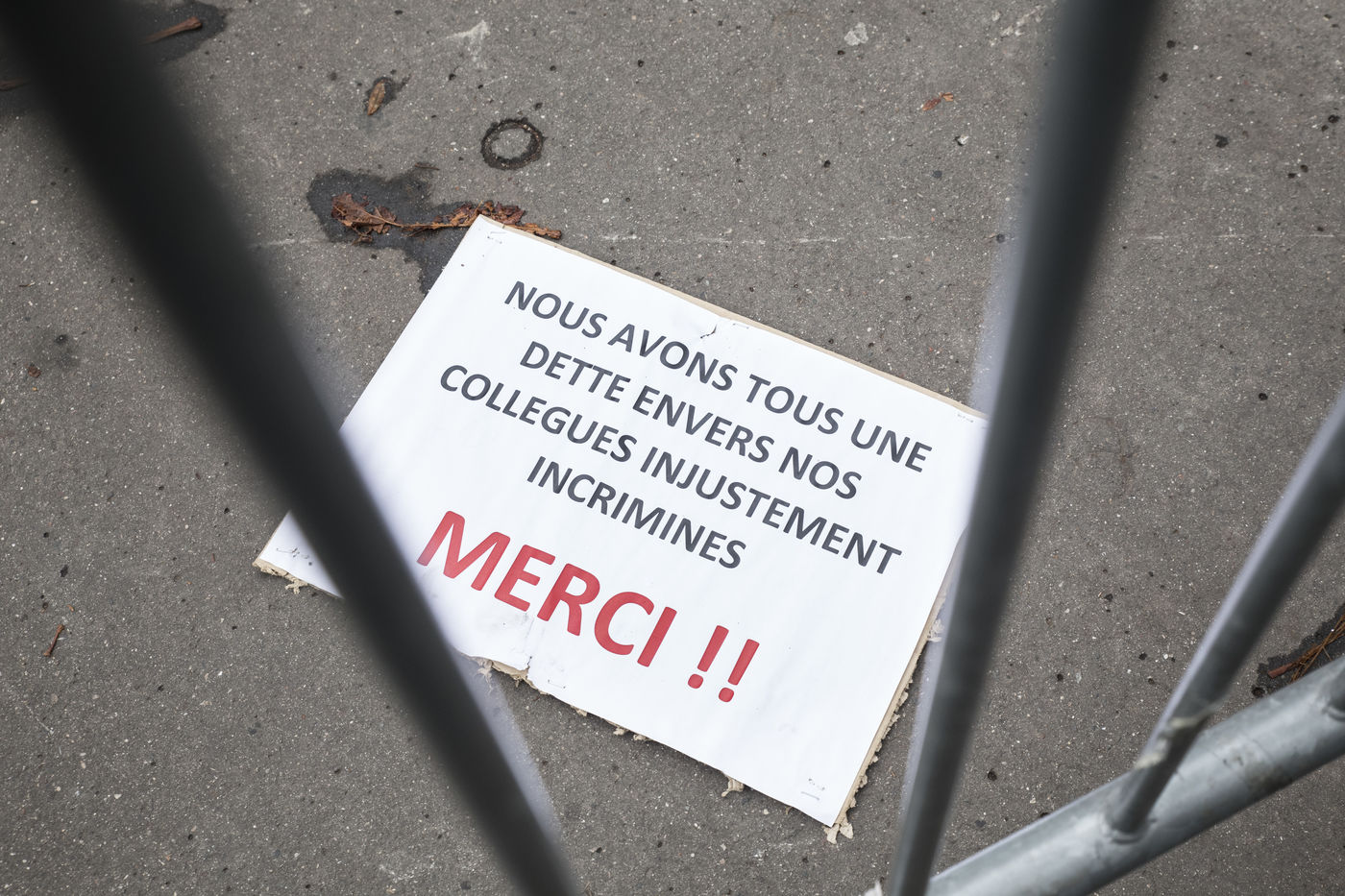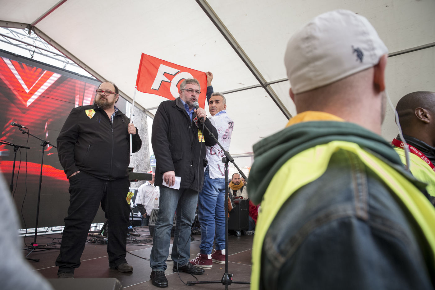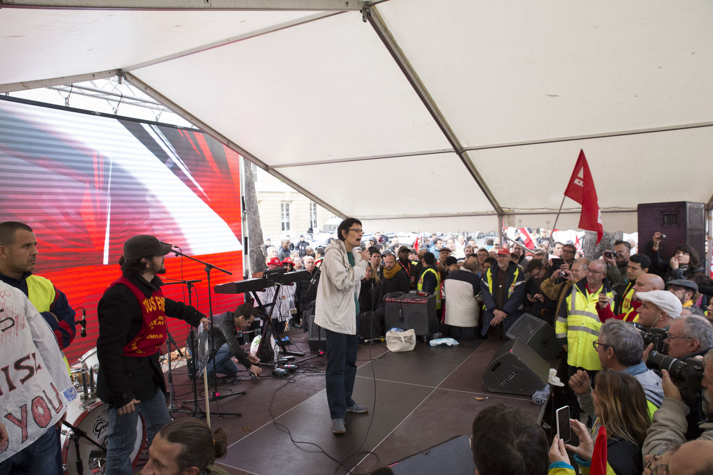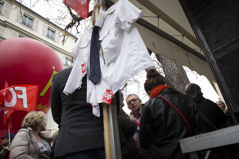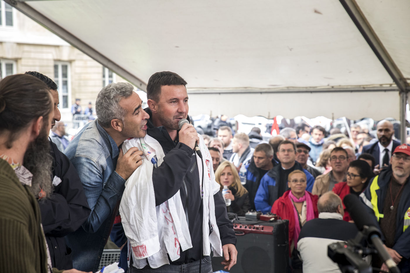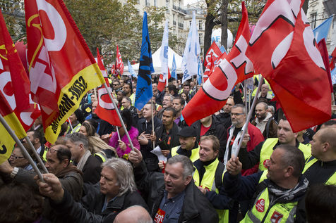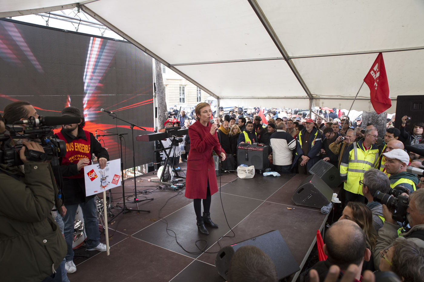 At the call of twelve unions (CGT, SNPAF, FO, CFTC, ALTER, SNPL, SNPNAC, SNPNC, SPAF, SUD-AERIEN, UNSA-PNC, UNAC), Air-France employees, both ground and aircrew, came to demonstrate their opposition to management's layoff plans and their support for their colleagues who were questioned following the events that took place during the CCE on October 5, 2015.