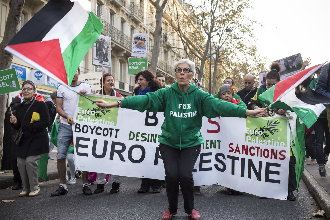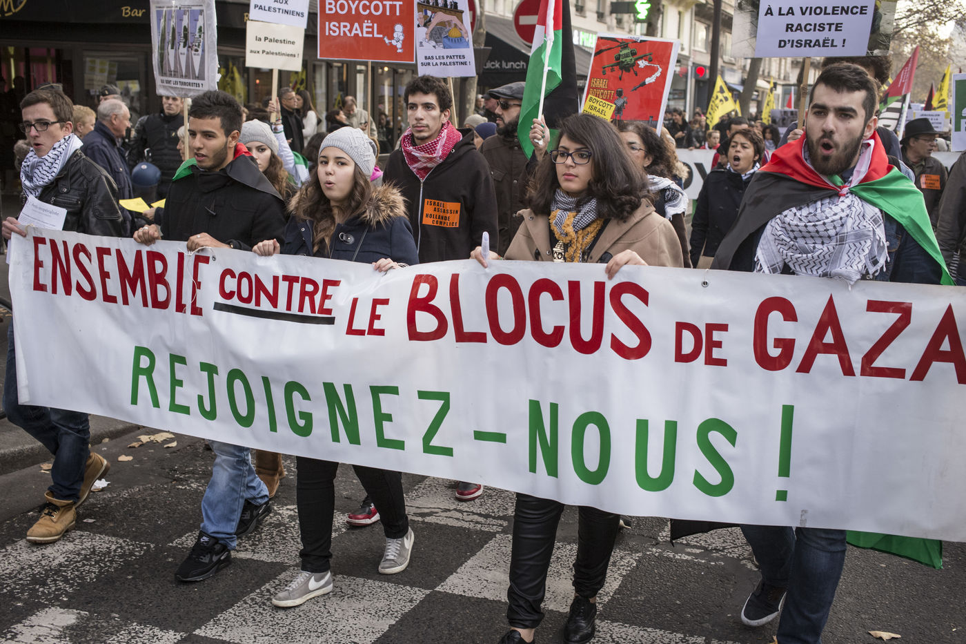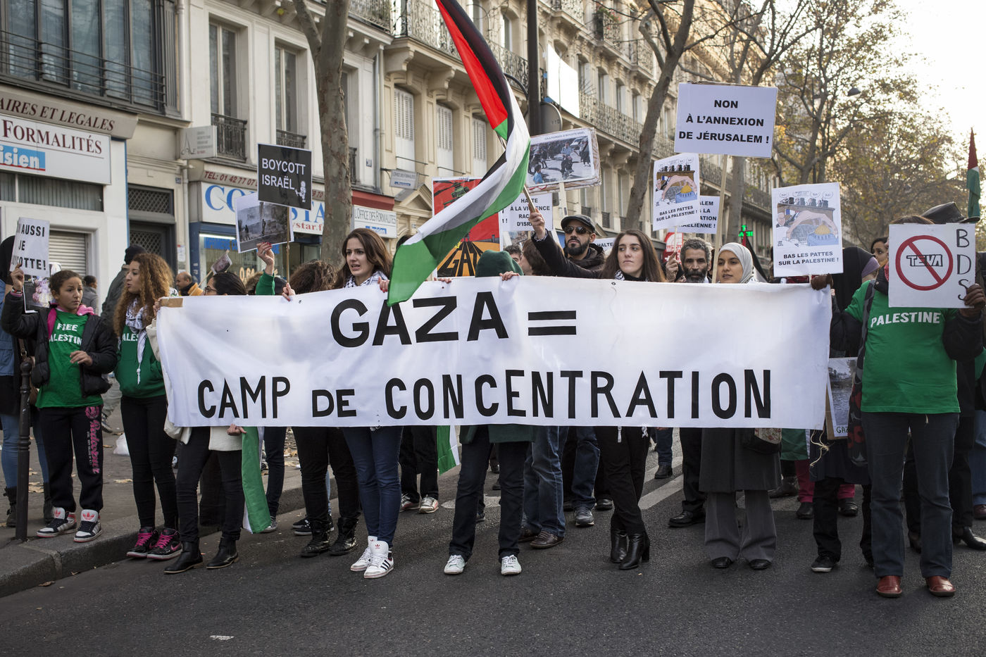 Demonstration on the occasion of the international day of solidarity with Palestine. The procession left the place du Chatelet and joined at the end of the demonstration the dozens of people gathered at the place de la Republique for this day.