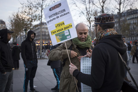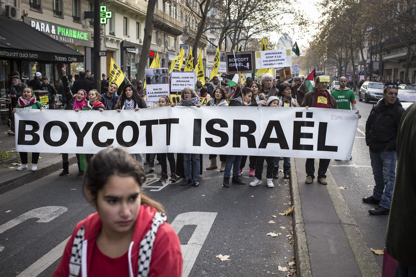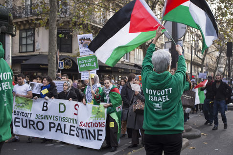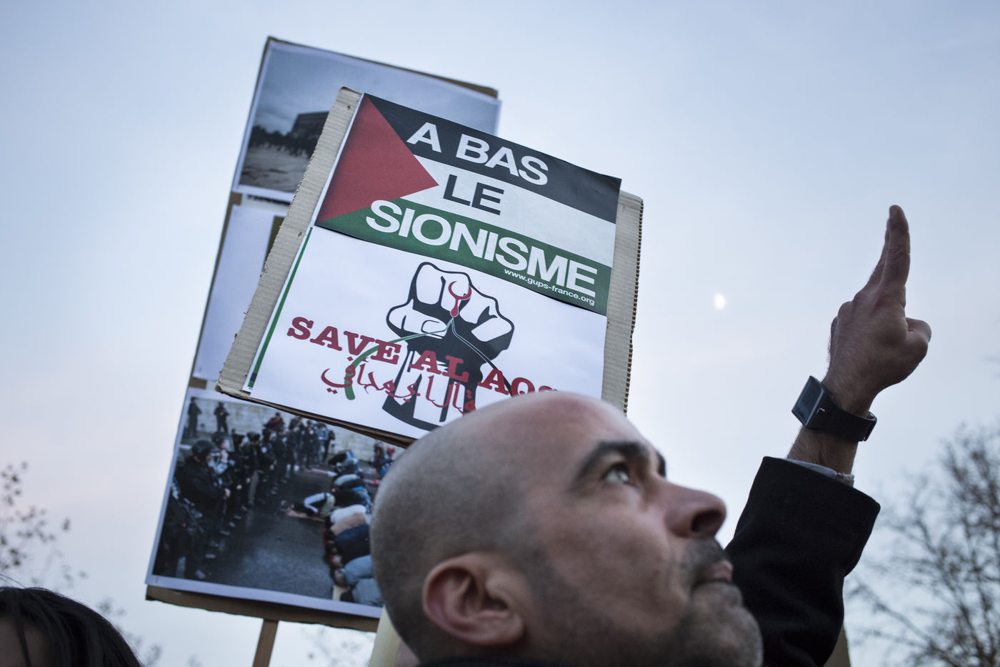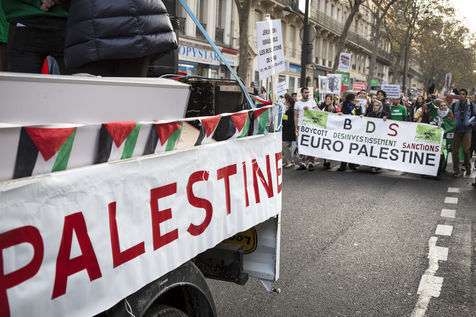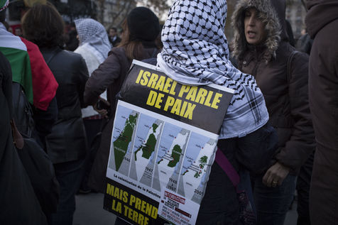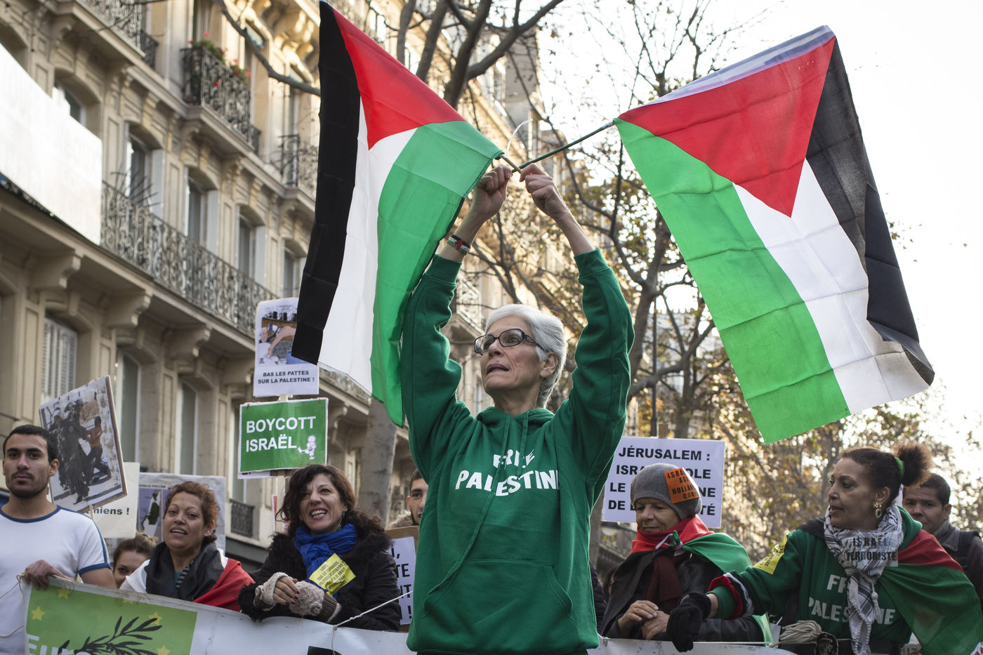 Demonstration on the occasion of the international day of solidarity with Palestine. The procession left the place du Chatelet and joined at the end of the demonstration the dozens of people gathered at the place de la Republique for this day.
