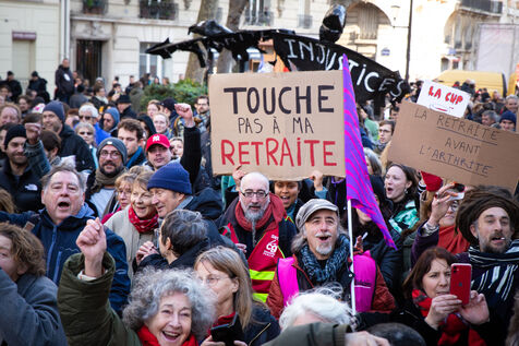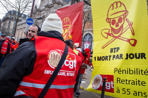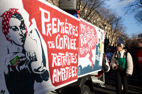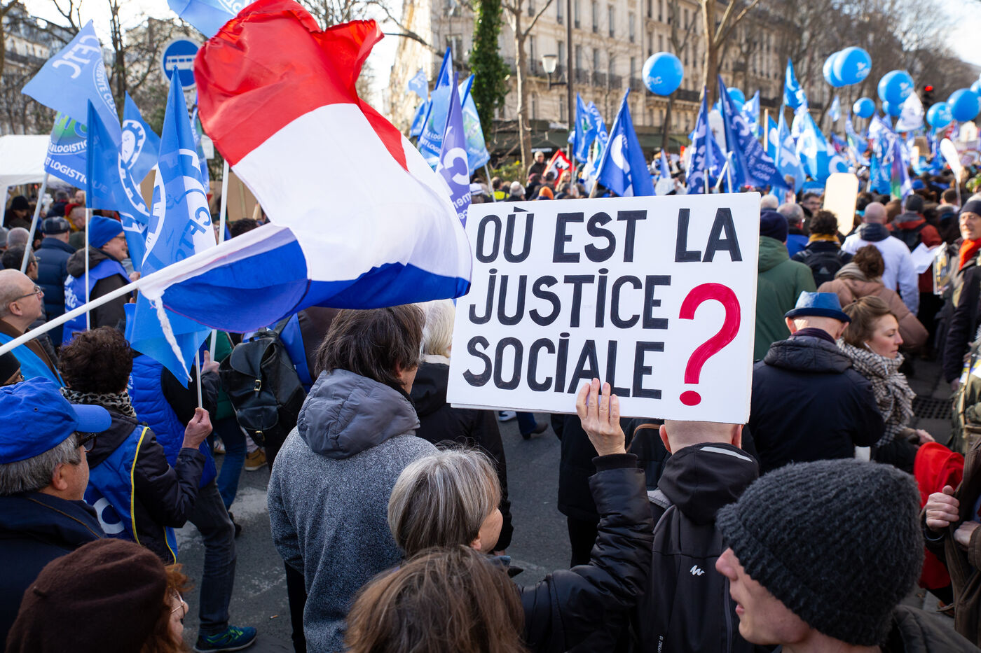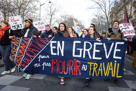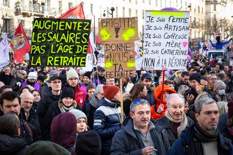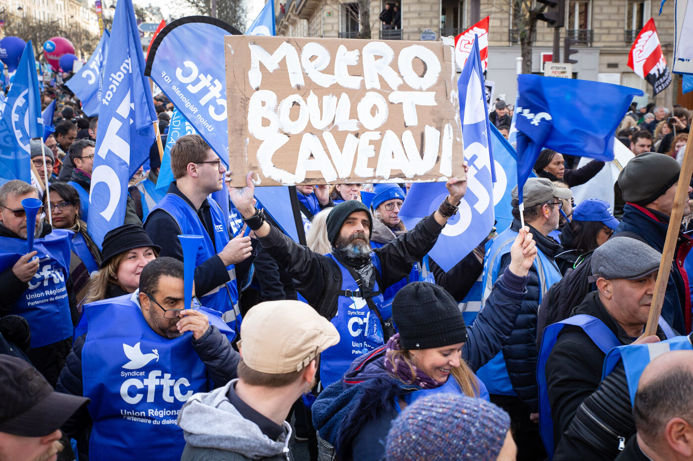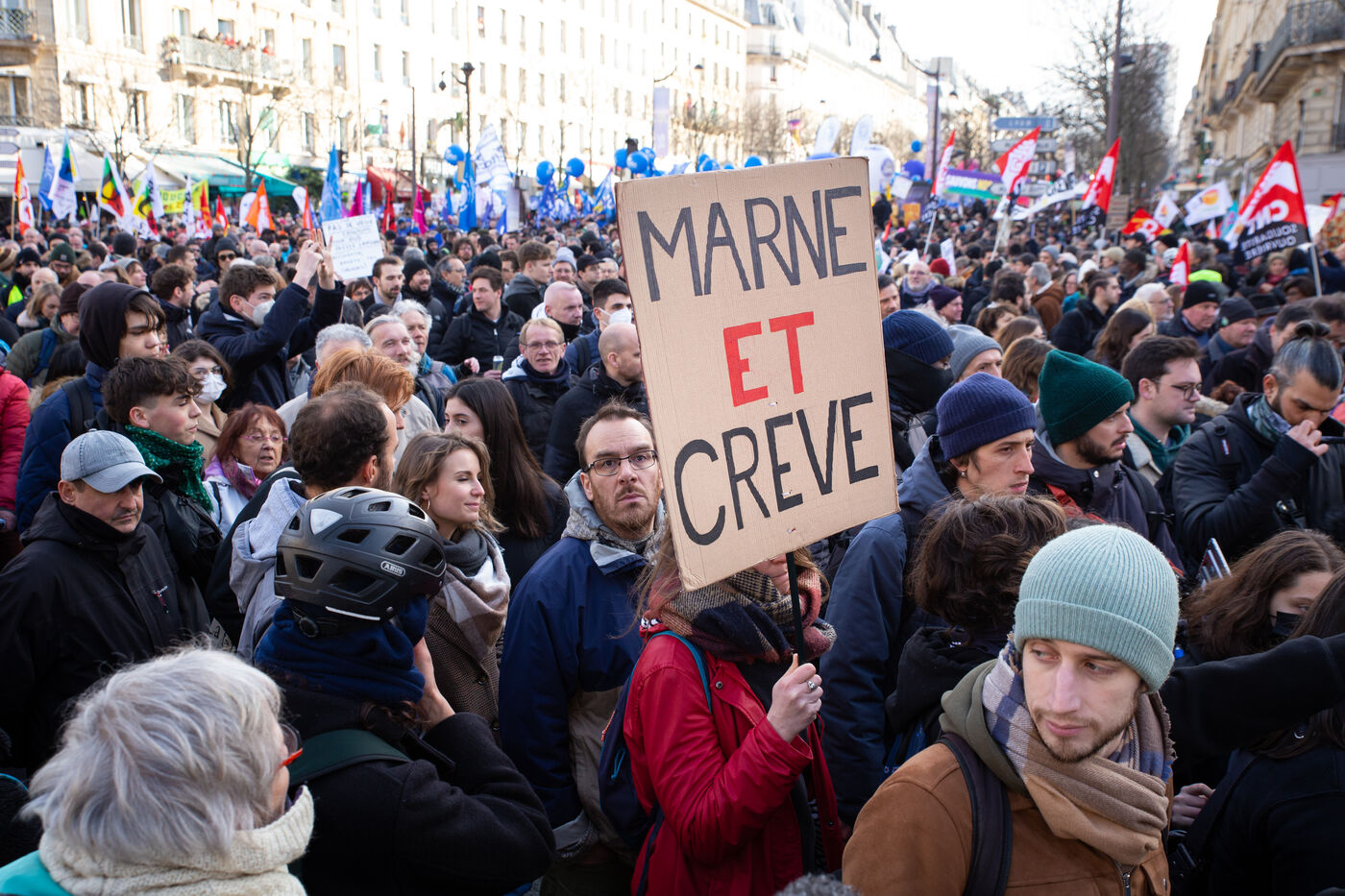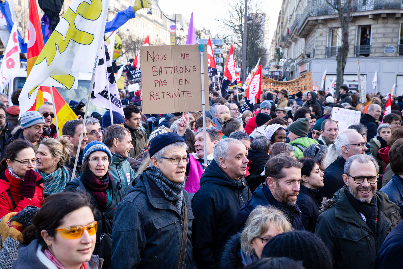 France, Paris, January 31, 2023. Parisian demonstration against the pension reform. Second day of inter-union mobilization against the reform carried by Elizabeth Borne and her government. The demonstrators protest against the postponement of the legal retirement age to 64 years and the acceleration of the increase in the contribution period.