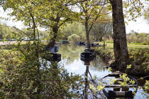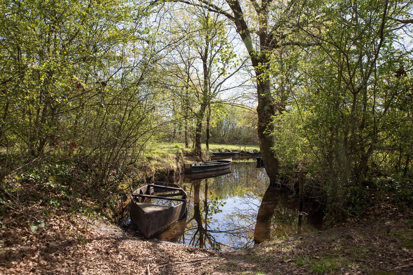 France, Loire-Atlantique, Port de Bréca in Saint-Lyphard, gateway to the Brière marshes. 18/04/2016. The Brière marshes regional nature reserve is a mosaic of canals (les curées), shallow lakes (les piardes and les copis), reedbeds, flood meadows and hillocks. The avifauna and flora are rich and varied, and most species of freshwater fish can be found here. It is the second largest marsh in France (70 km²) after the Camargue. Another special feature is the special legal status of the Grande Brière Mottière marsh. It is the undivided property of the inhabitants of the 21 riverside communes. This ownership was proclaimed in 1461 by Letters Patent from François II, Duke of Brittany, and even today, the Briérons continue to manage their marsh themselves.