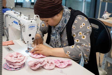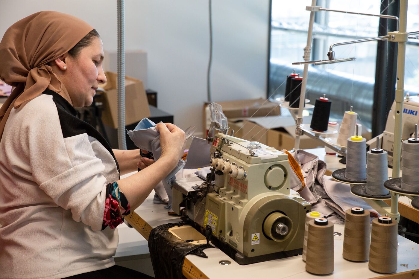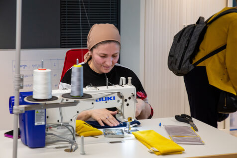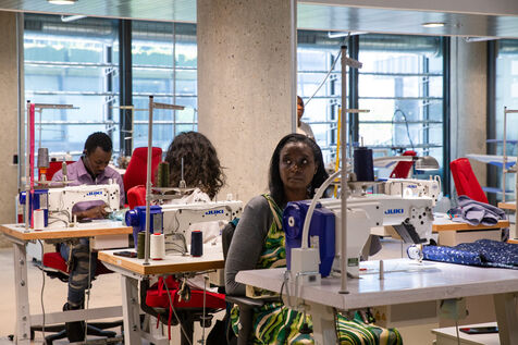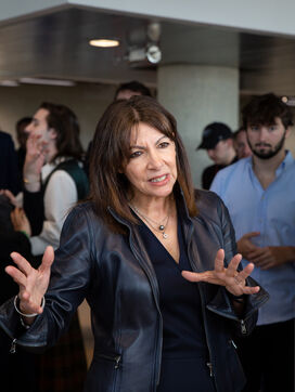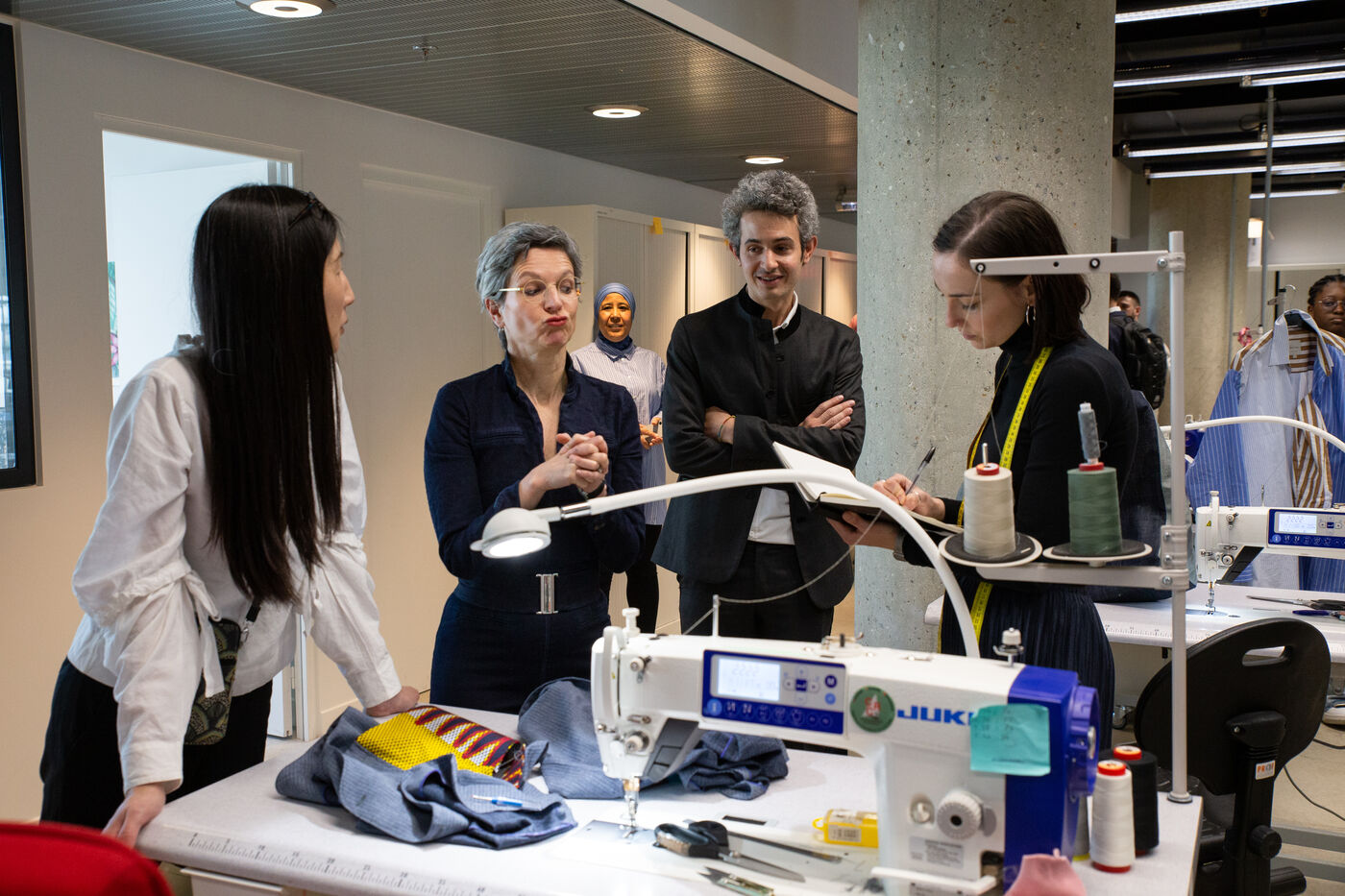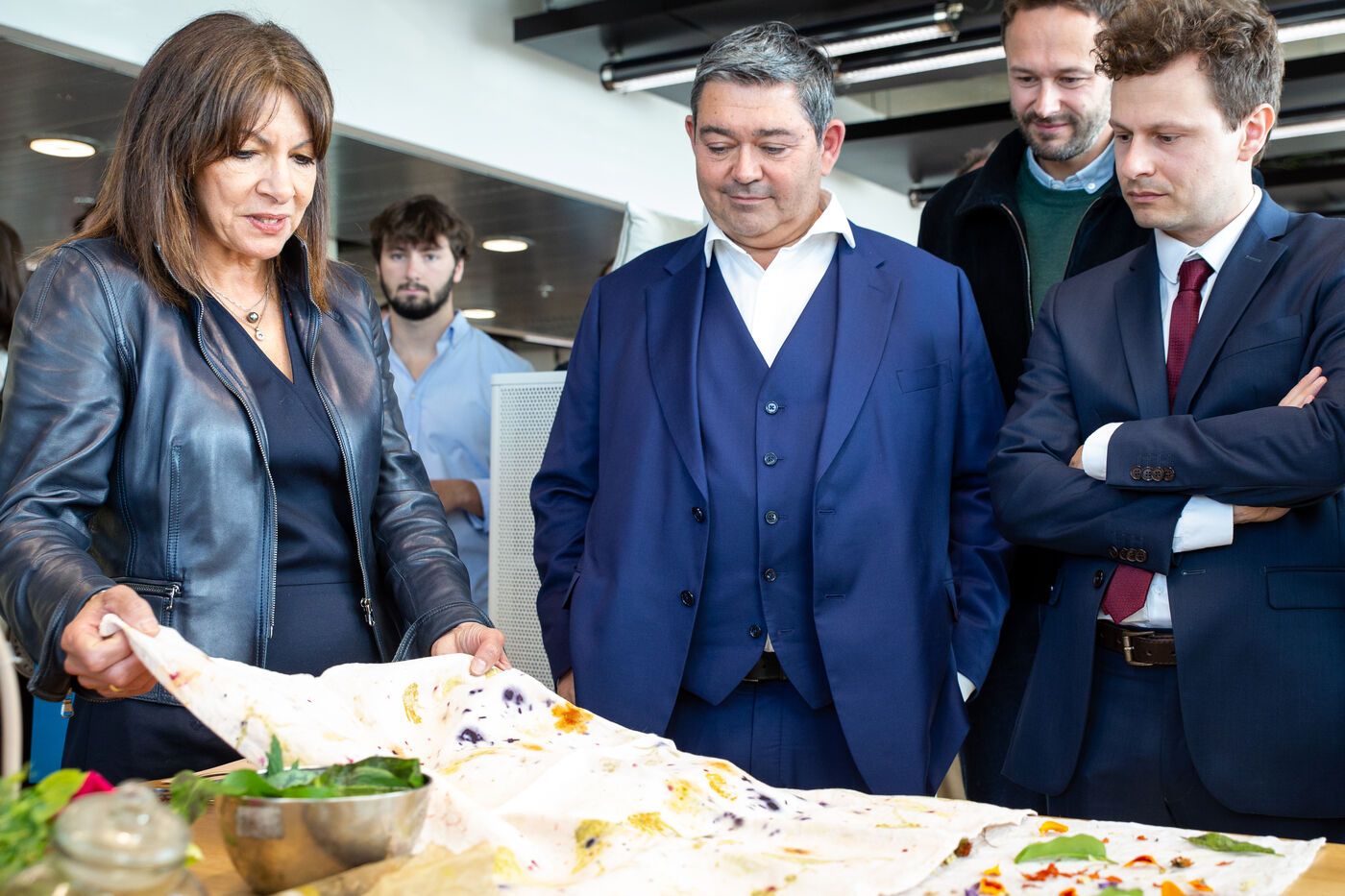 France, Paris, May 23, 2023 Inauguration of the Manufacture Berlier, in the 13th arrondissement of Paris. The RIVP's Berlier building houses a social, solidarity-based, circular textile factory. In the presence of the mayor of Paris, deputy mayors of the city of Paris, the mayor of the 13th arrondissement, and the president of the RIVP. Jerome COUMET (Mayor of 13?), David Belliard (deputy mayor), Anne Hidalgo (mayor of Paris) and Sandrine Rousseau (deputee ecologiste Nupes) visit the stands.