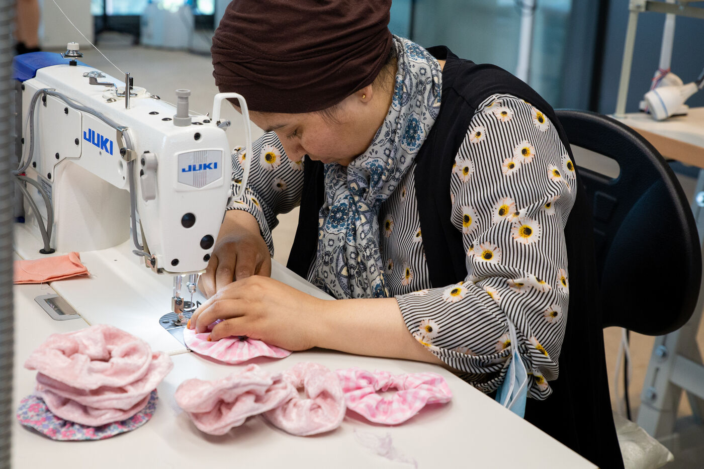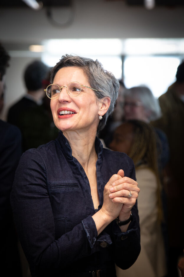 France, Paris, Le 23 mai 2023 Inauguration de la Manufacture Berlier, dans 13e arrt de Paris. L?immeuble Berlier de la RIVP héberge un manufacture textile sociale solidaire et circulaire. En presence de la maire de Paris, d'adjoints de la ville de Paris, du maire du 13e arrondissement, et du président de la RIVP (Régie immobiliere de la ville de Paris). Jerome COUMET (Maire du 13?), David Belliard (adjoint), Anne Hidalgo (maire de Paris) et Sandrine Rousseau (deputee ecologiste Nupes) visitent les stands.