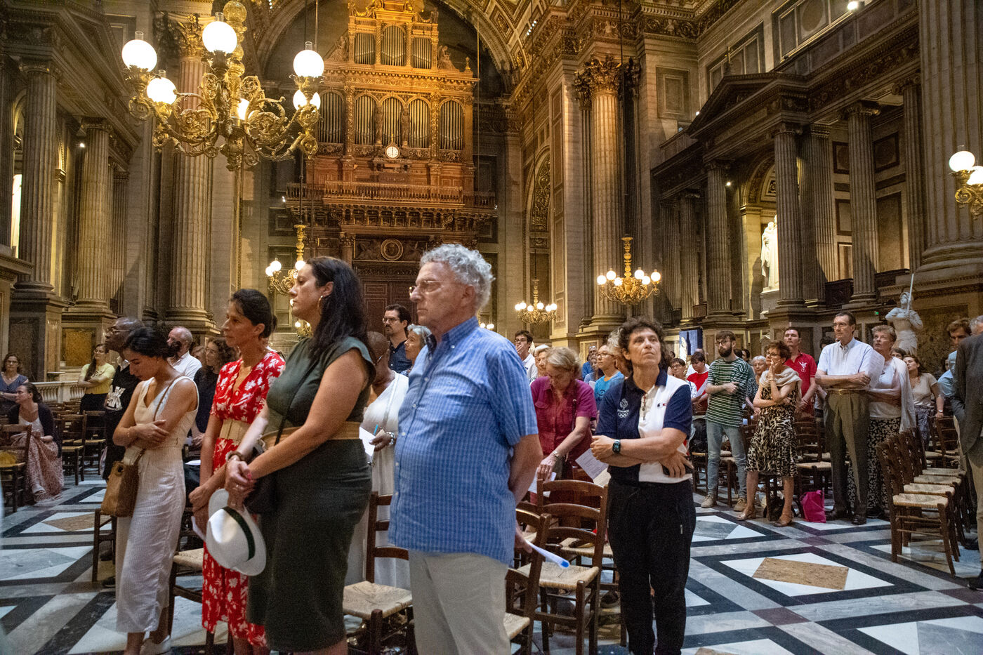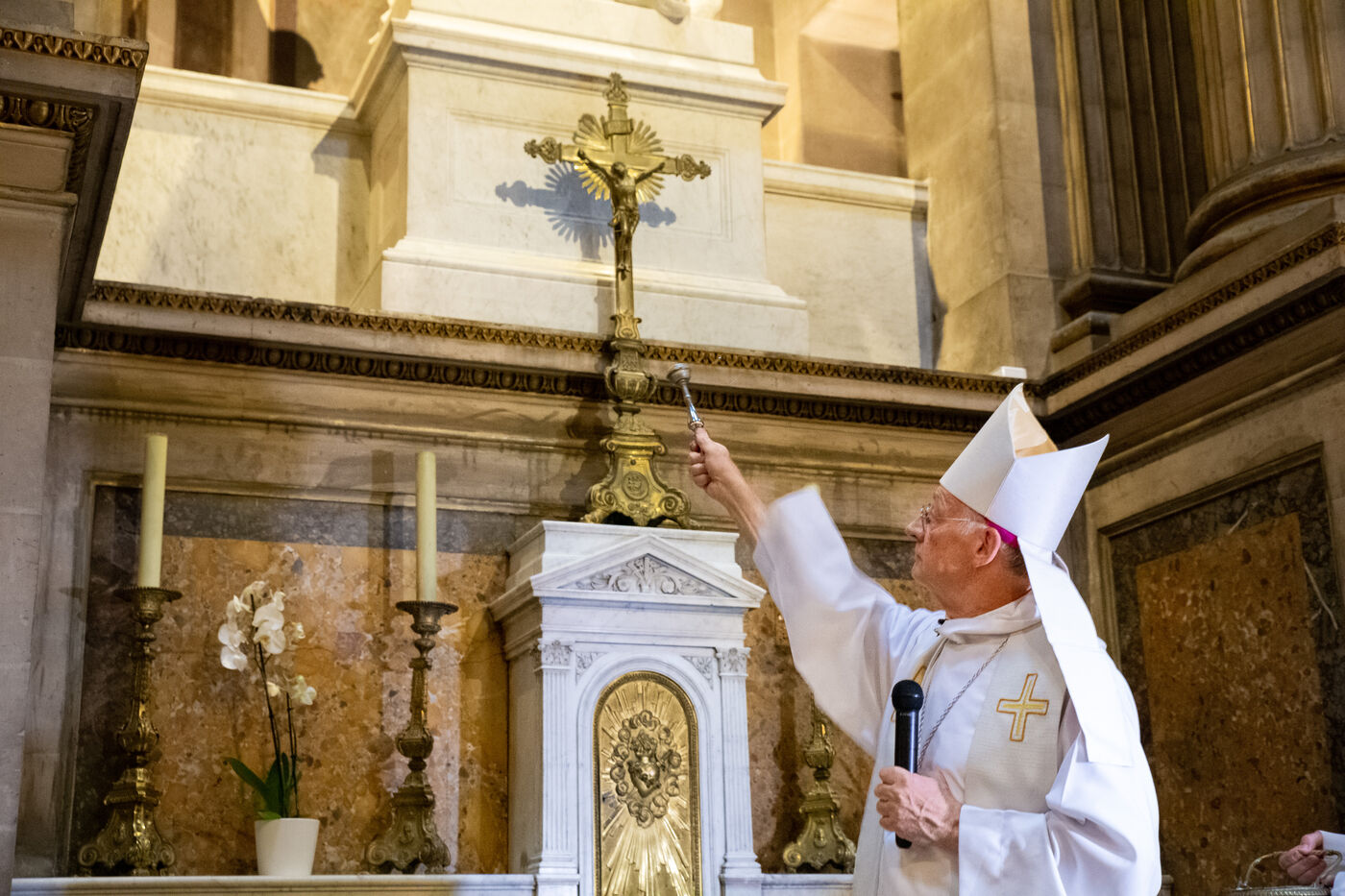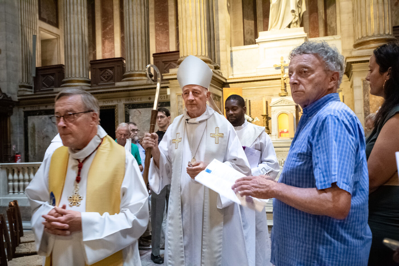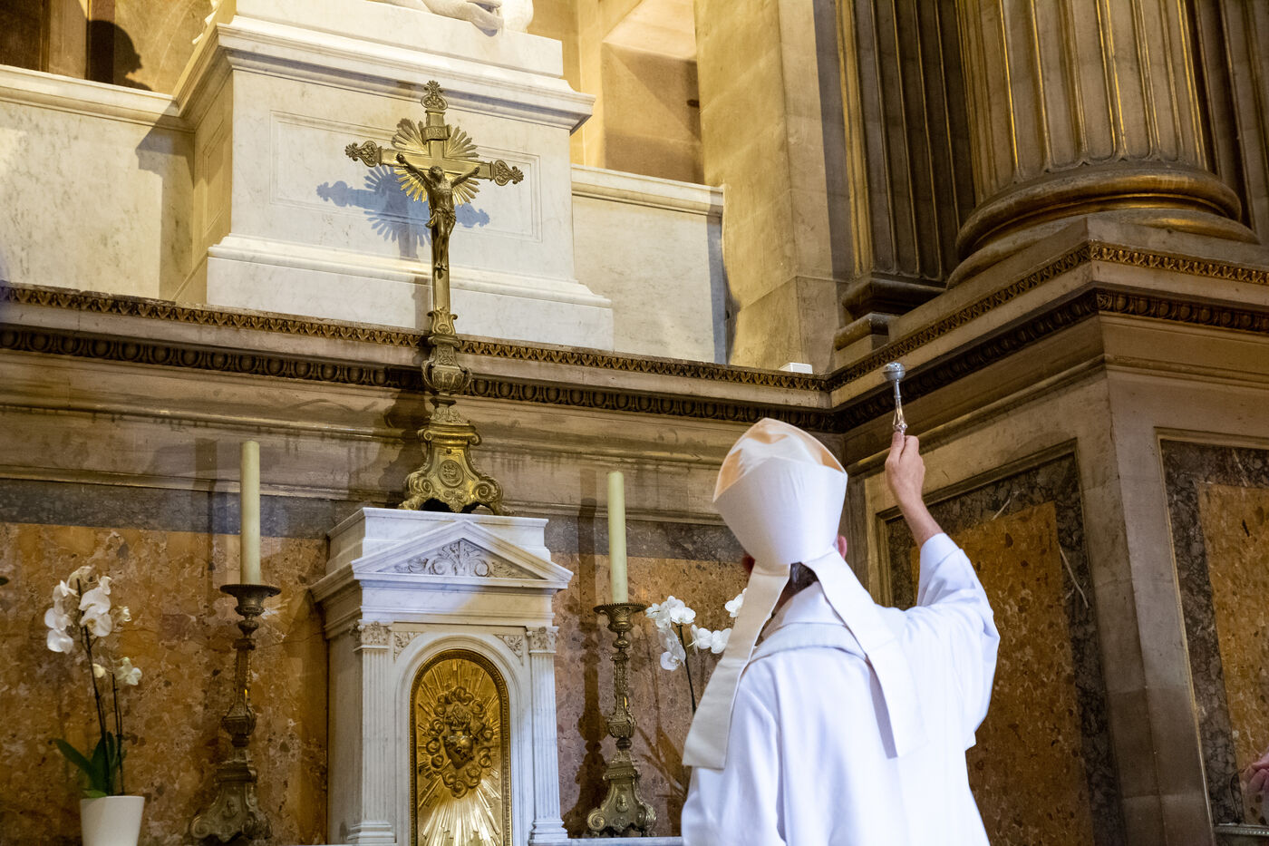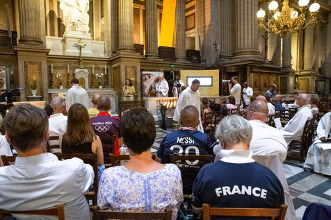 FRANCE, Paris, Eglise de la Madeleine (Paris 8e), Saturday, September 9, 2023. Benediction of the Notre-Dame des Sportifs chapel, a celebration presided over by Monsignor Philippe Marsset, auxiliary bishop of Paris. This chapel will be dedicated to athletes from the Rugby World Cup to the 2024 Olympic Games.