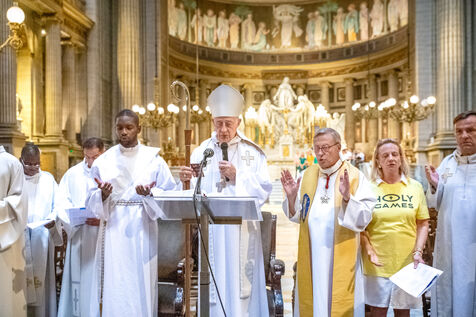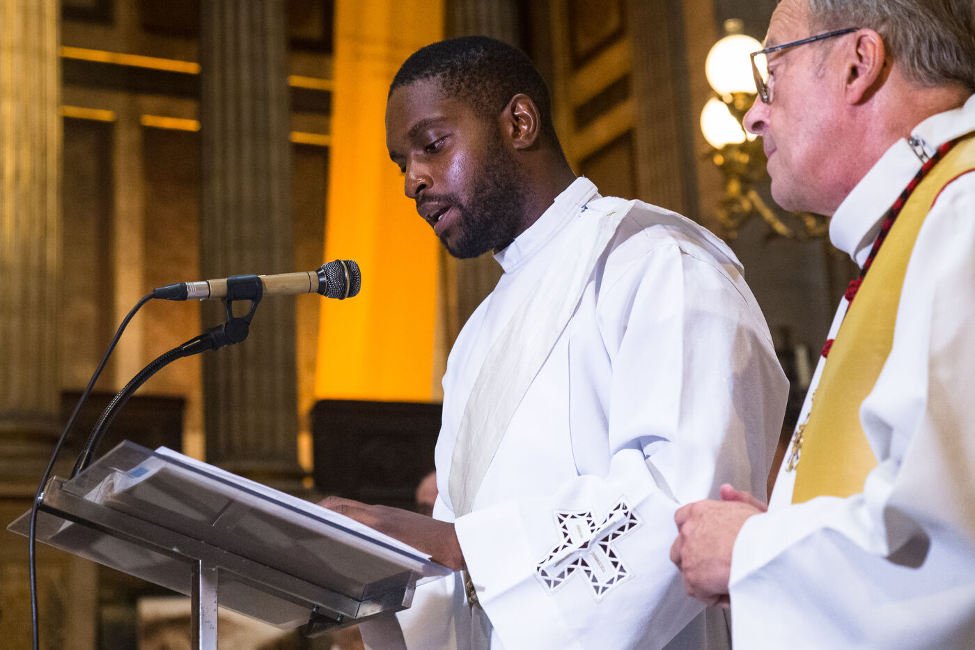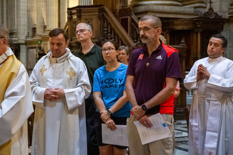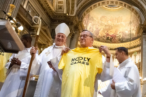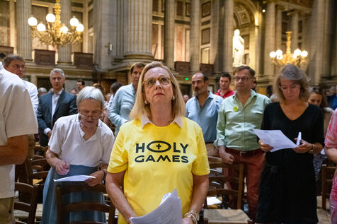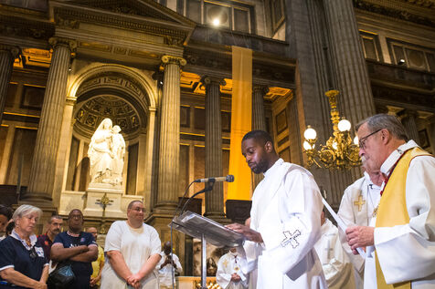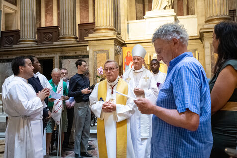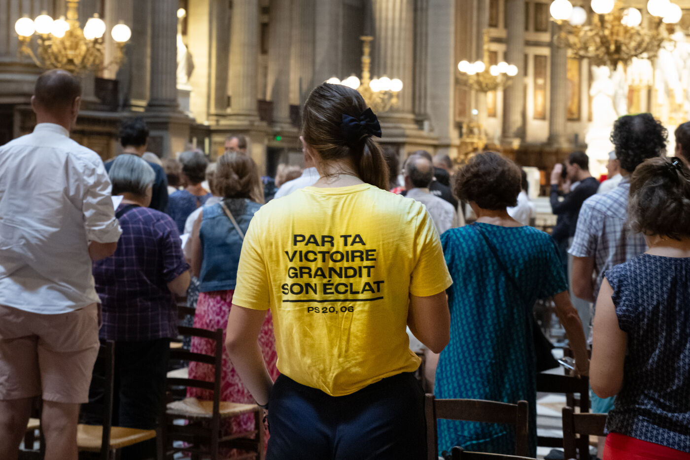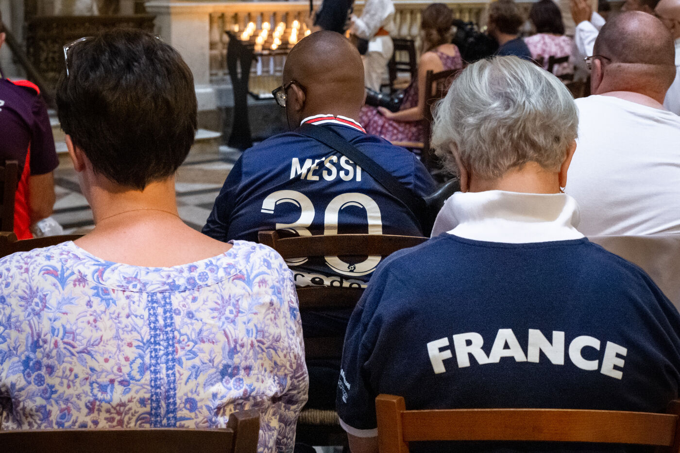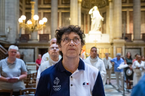 FRANCE, Paris, Eglise de la Madeleine (Paris 8e), Saturday, September 9, 2023. Benediction of the Notre-Dame des Sportifs chapel, a celebration presided over by Monsignor Philippe Marsset, auxiliary bishop of Paris. This chapel will be dedicated to athletes from the Rugby World Cup to the 2024 Olympic Games.