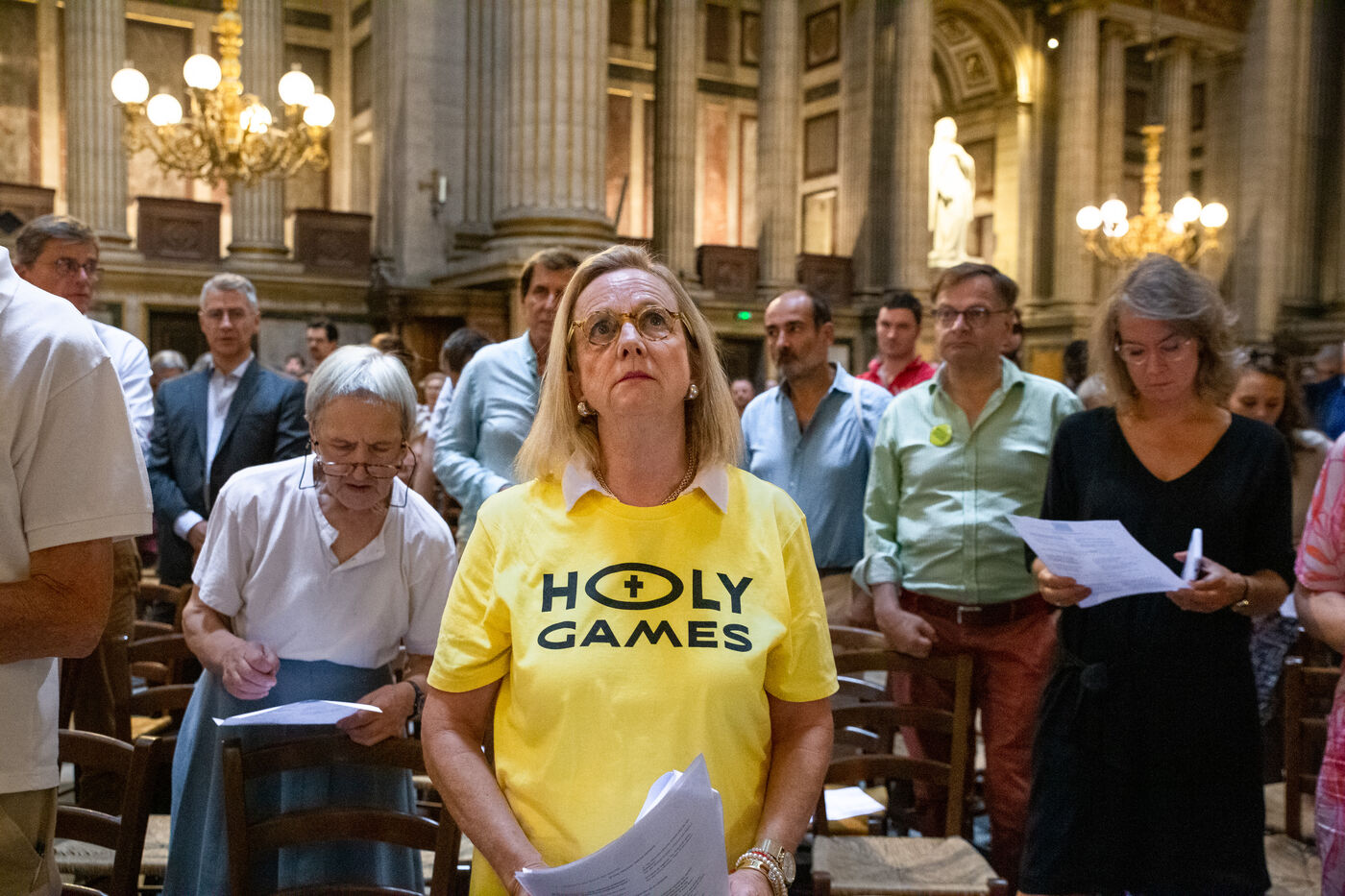 FRANCE, Paris, Eglise de la Madeleine (Paris 8e), le samedi 9 septembre 2023. Benediction de la chapelle Notre-Dame des sportifs, celebration sera presidee par Monseigneur Philippe Marsset, eveque auxiliaire de Paris. Cette chapelle sera le lieu dedie aux sportifs de la Coupe du Monde de Rugby jusqu aux Jeux Olympiques 2024.