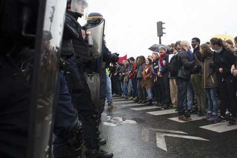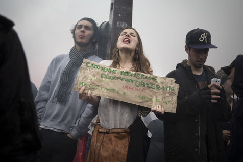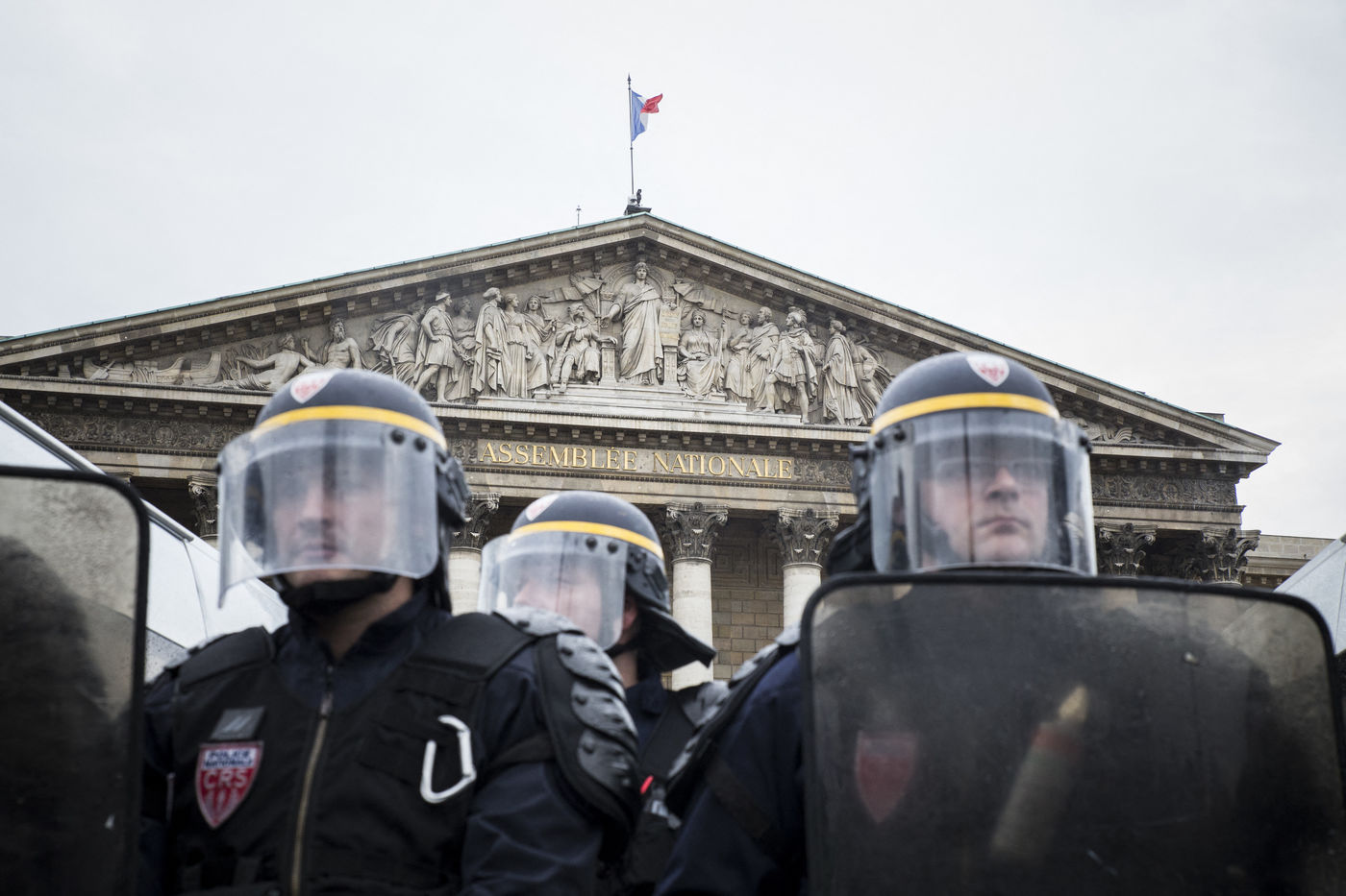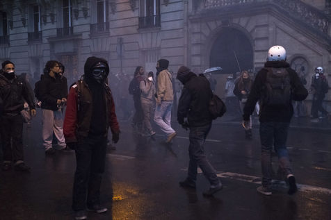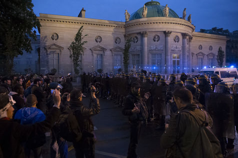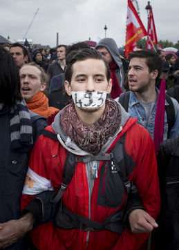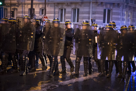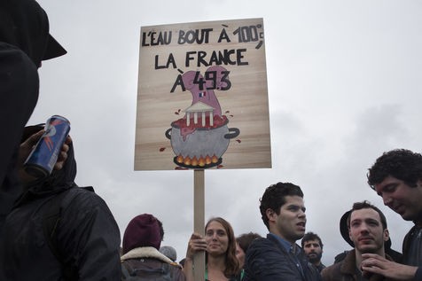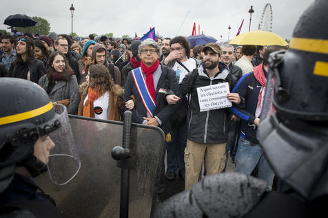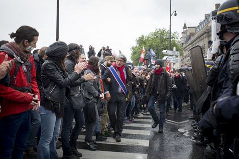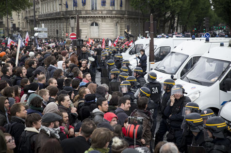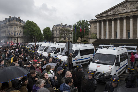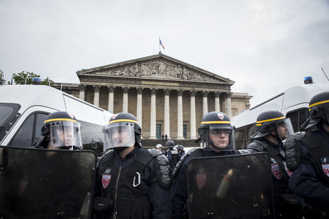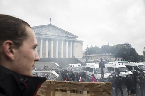 Paris, France, Tuesday, May 10, 2016. Hundreds of demonstrators came to protest in front of the National Assembly against the Prime Minister's use of 49.3 in order to pass the El Khomri labor law.
